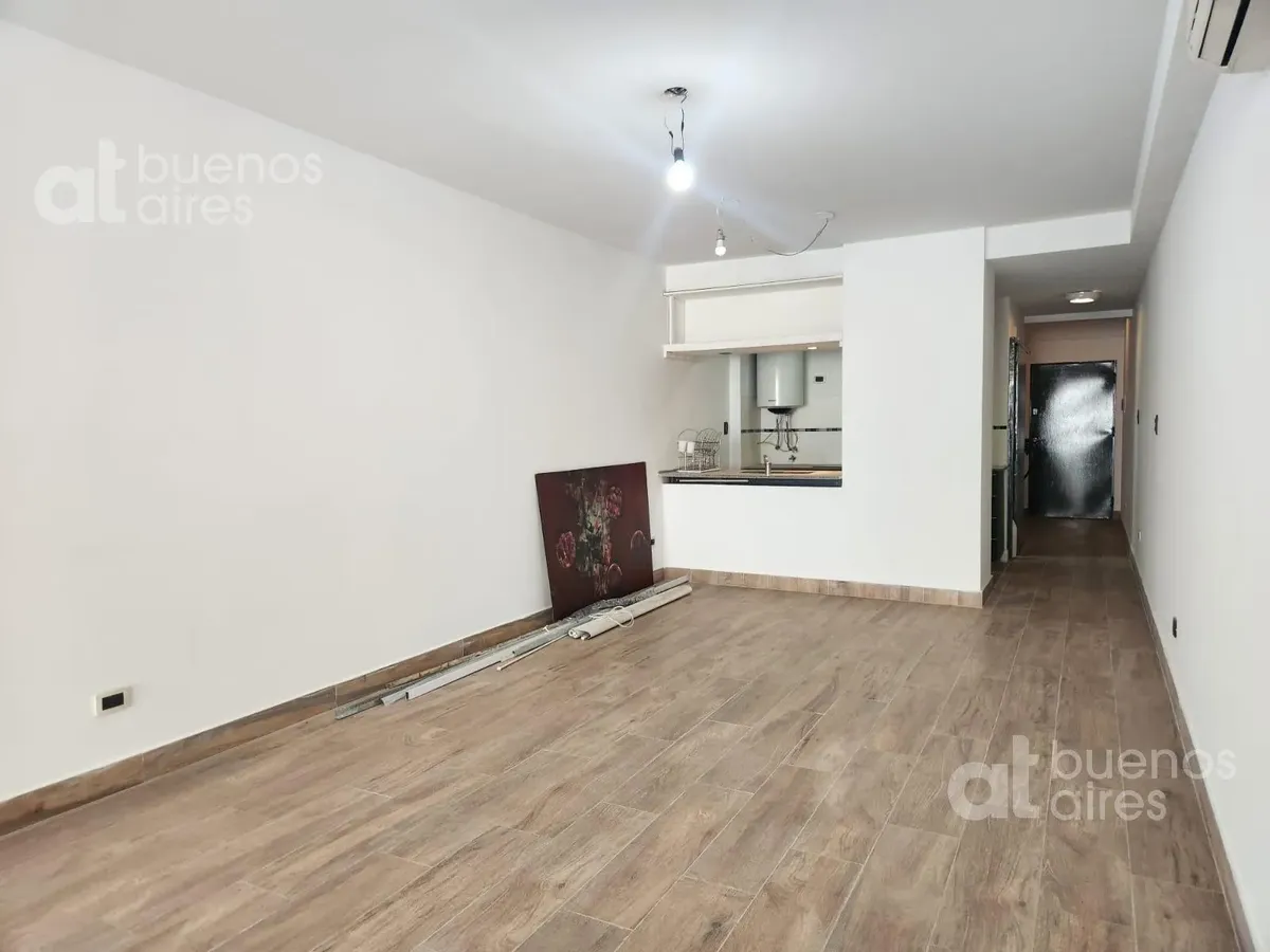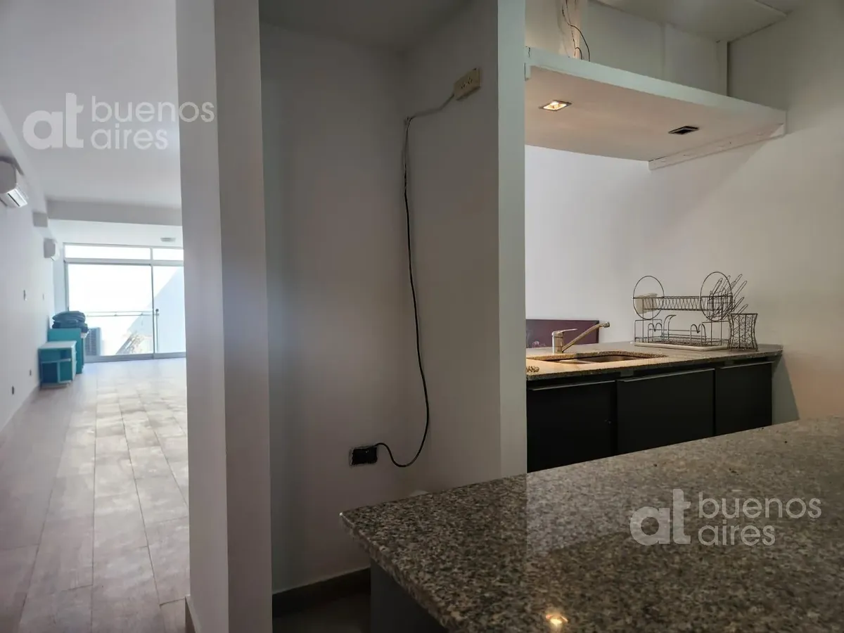Monoambiente con balcón al contrafrente, 2 aires acondicionados frío/calor y cocina integrada al ambiente mediante barra. Baño completo. El departamento queda disponible a partir del 16/4/2026.