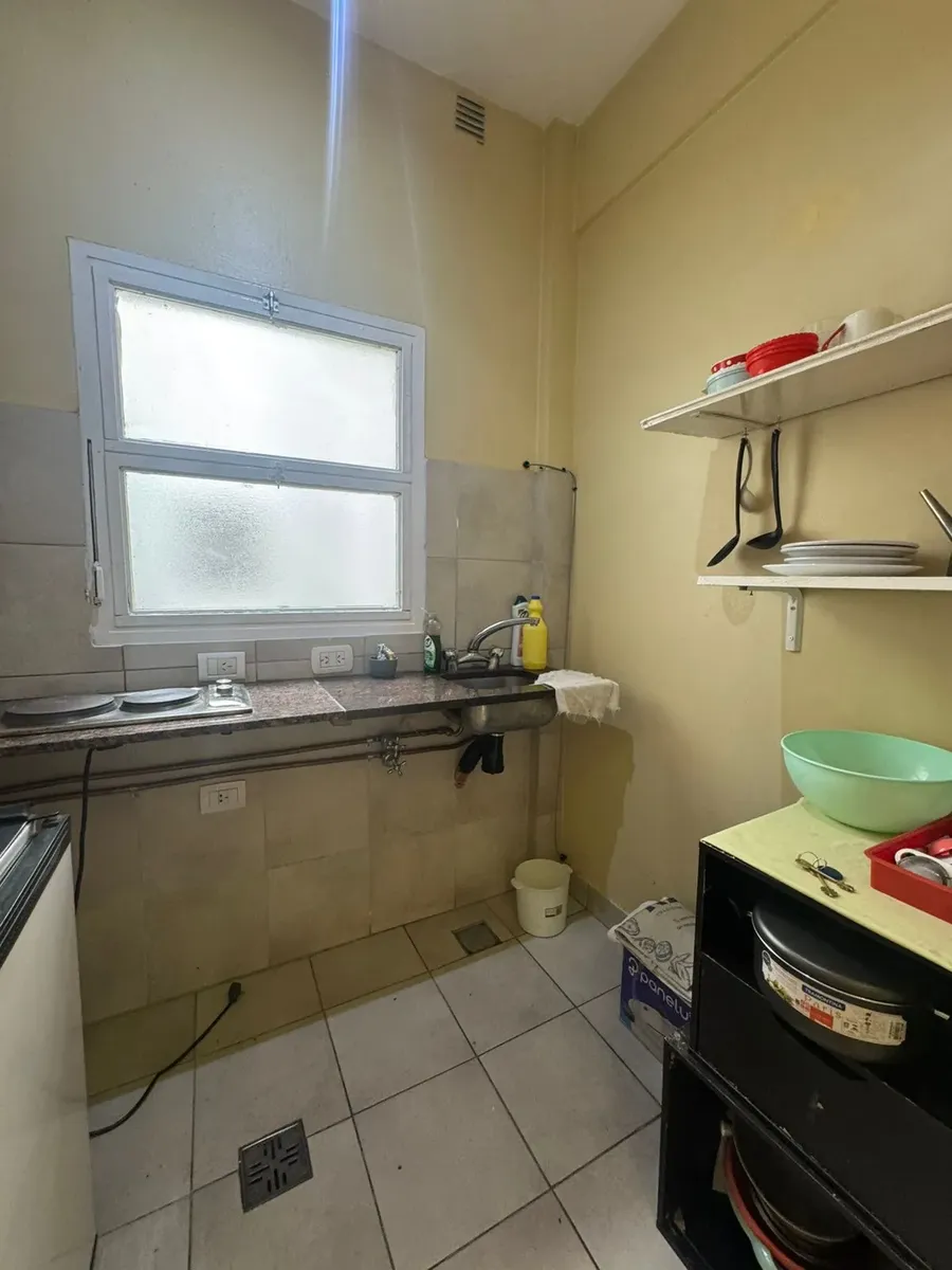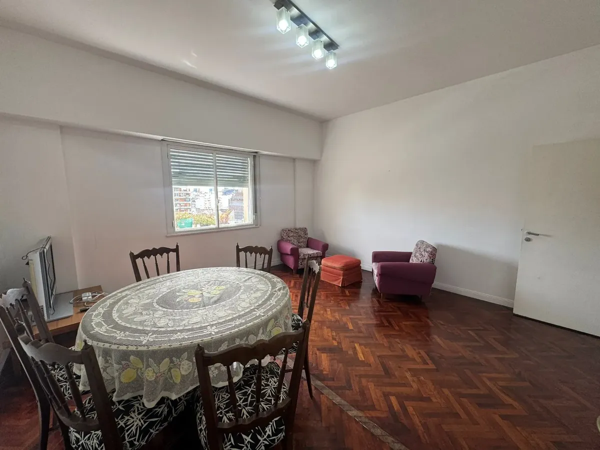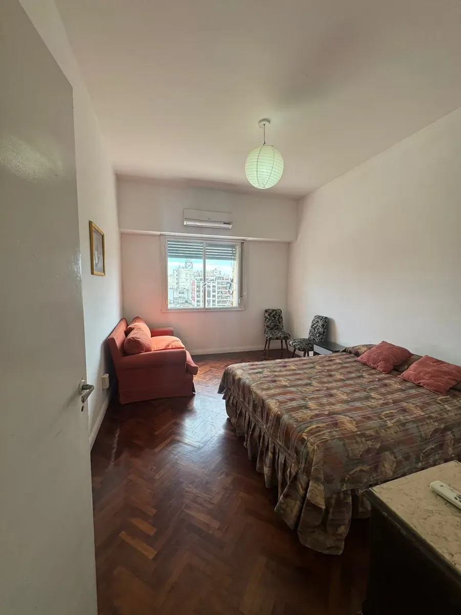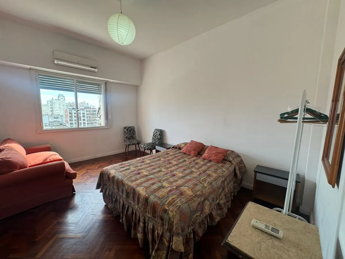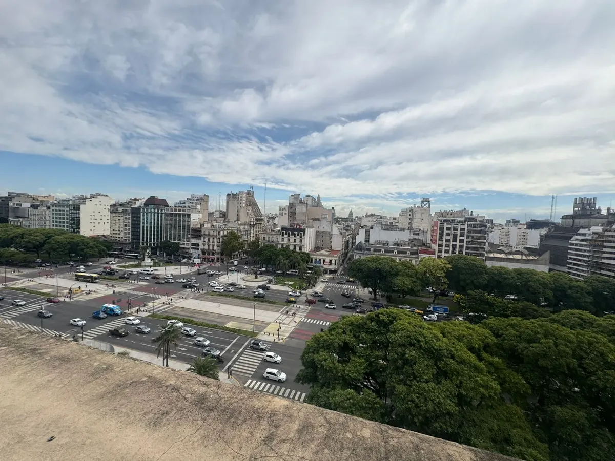 Departamento de 2 ambientes de 40 m² en Monserrat, en el 9° piso, con vista abierta a Av. 9 de Julio. Está amoblado y equipado, con aire acondicionado. Living comedor con mesa para 6 sillas, 2 sillones individuales y escritorio con TV led; habitación con cama matrimonial y sillón. Cocina con 2 hornallas, vajilla completa y heladera con congelador; baño completo. El edificio tiene entrada electrónica y seguridad 24 horas. El alquiler mensual es de U$ 700 con depósito en garantía de 1 mes y honora