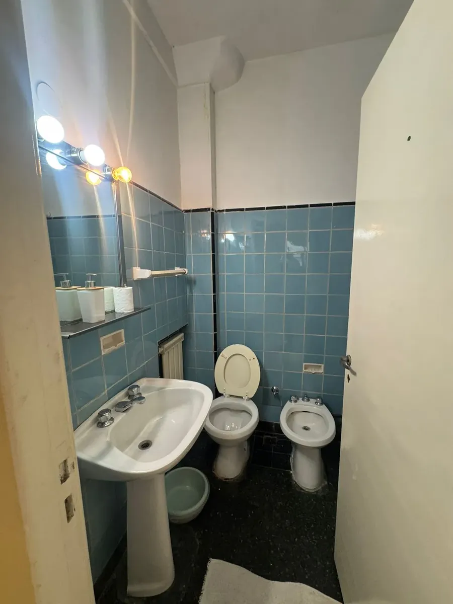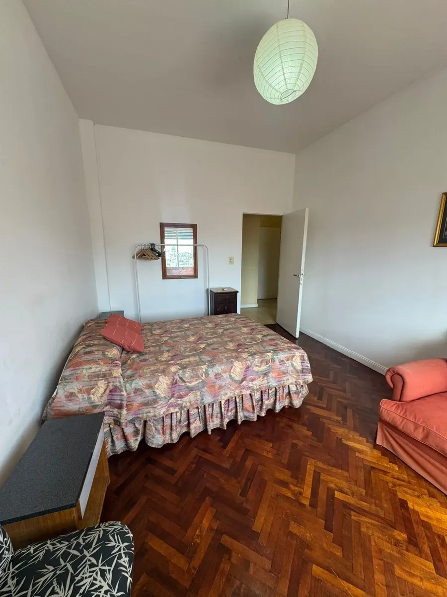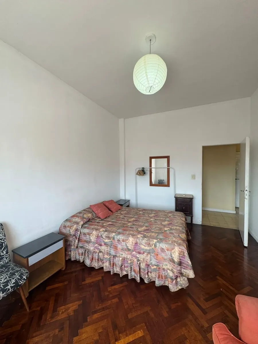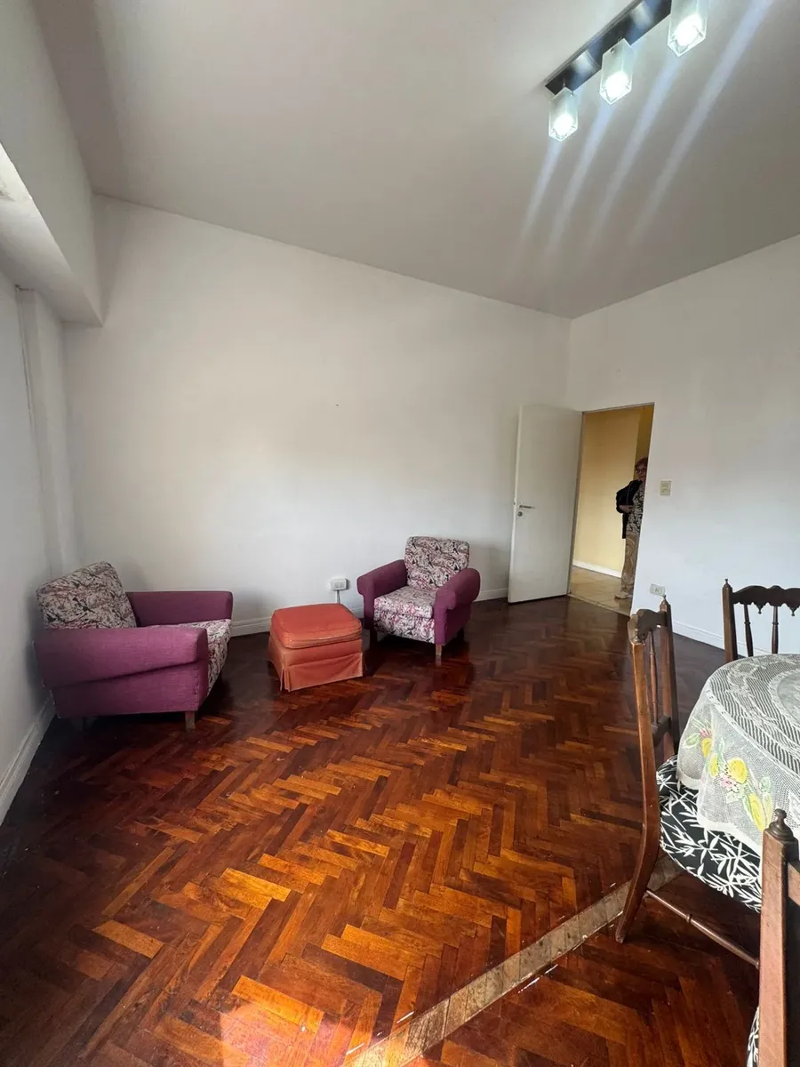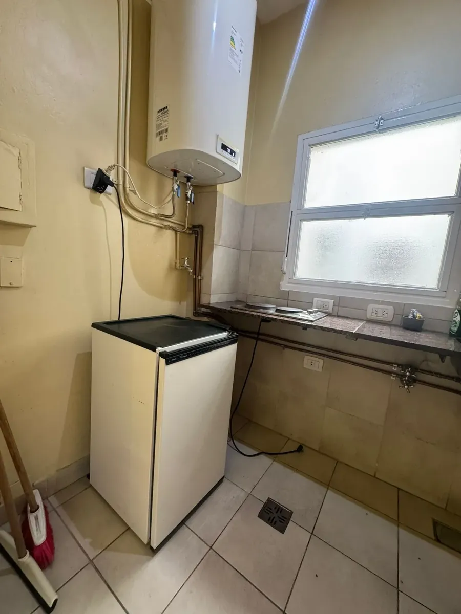 Departamento de 2 ambientes de 40 m² en Monserrat, en el 9° piso, con vista abierta a Av. 9 de Julio. Está amoblado y equipado, con aire acondicionado. Living comedor con mesa para 6 sillas, 2 sillones individuales y escritorio con TV led; habitación con cama matrimonial y sillón. Cocina con 2 hornallas, vajilla completa y heladera con congelador; baño completo. El edificio tiene entrada electrónica y seguridad 24 horas. El alquiler mensual es de U$ 700 con depósito en garantía de 1 mes y honora