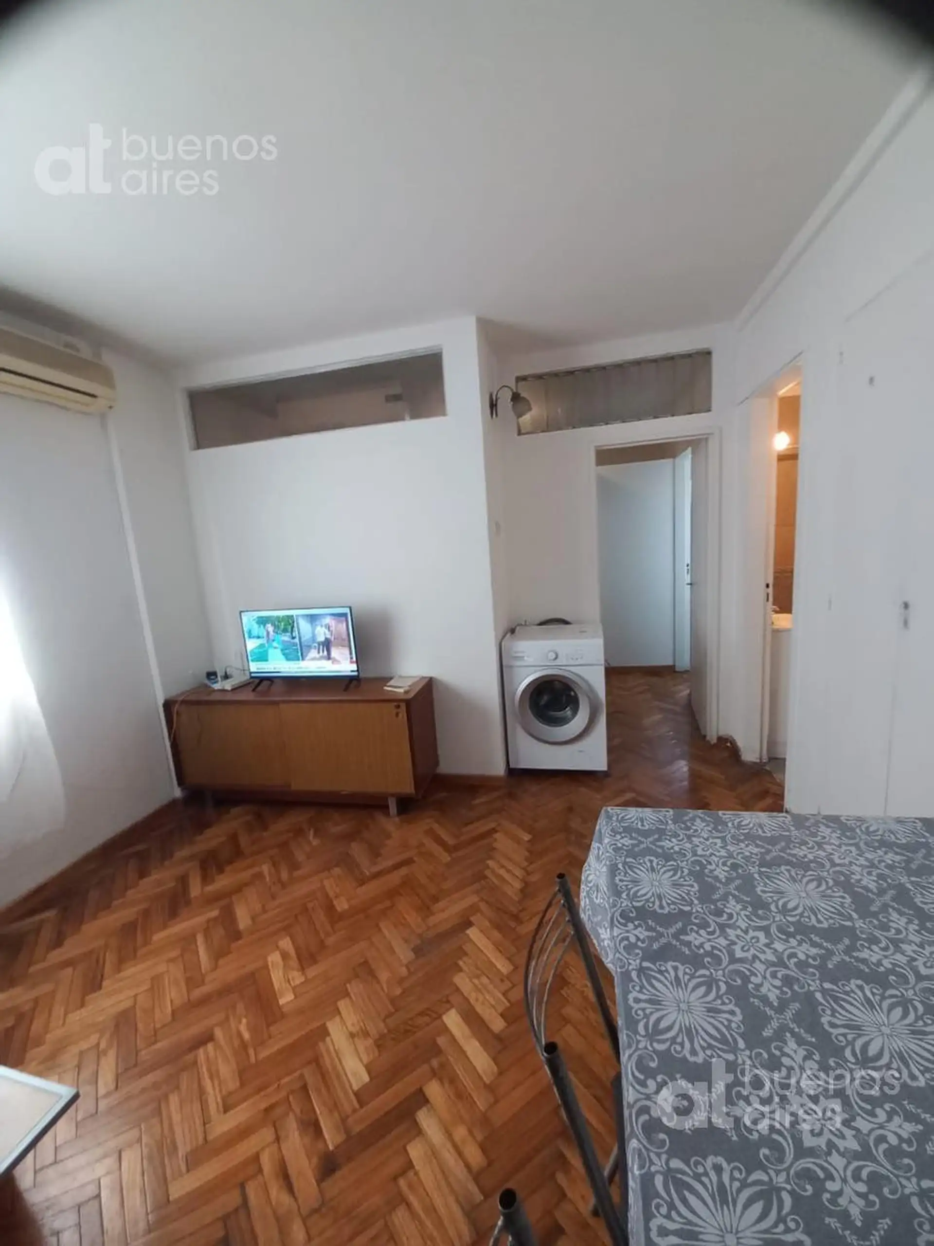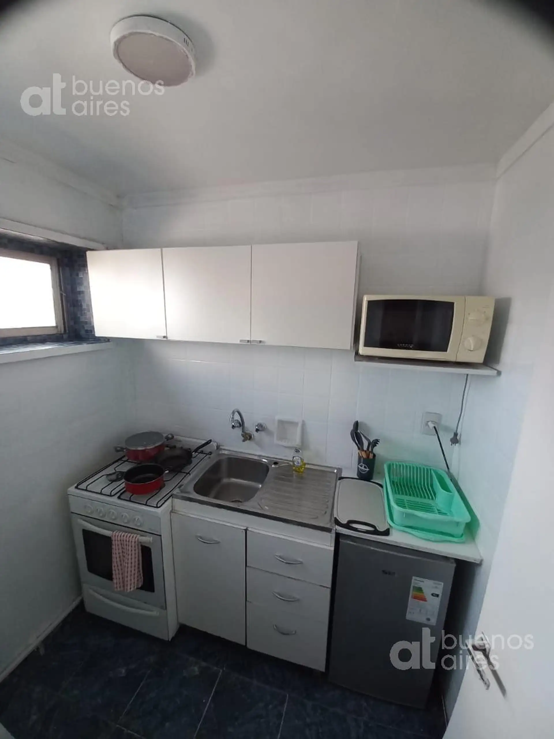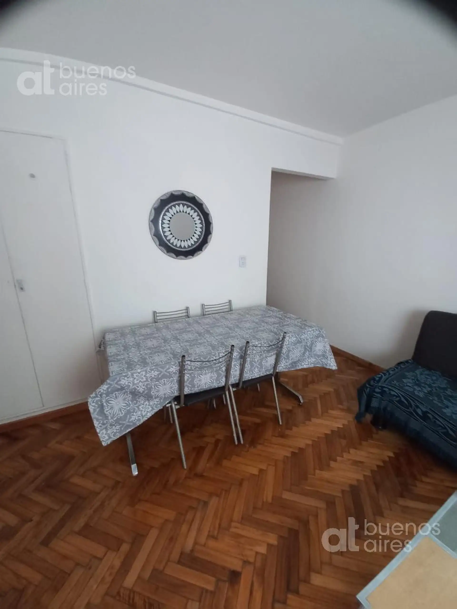 Departamento de 2 ambientes amoblado y equipado. Disponible a partir del 24 de marzo de 2026. 1 dormitorio con cama doble y placard, living con sillón cama, y baño completo reciclado. Cuenta con aire acondicionado y 2 ventanales, uno al frente a Hipólito Yrigoyen y una ventana en el living hacia un lateral. Cocina independiente con heladera bajo mesada y mesa rebatible. El valor publicado corresponde a alquiler más servicios y expensas.