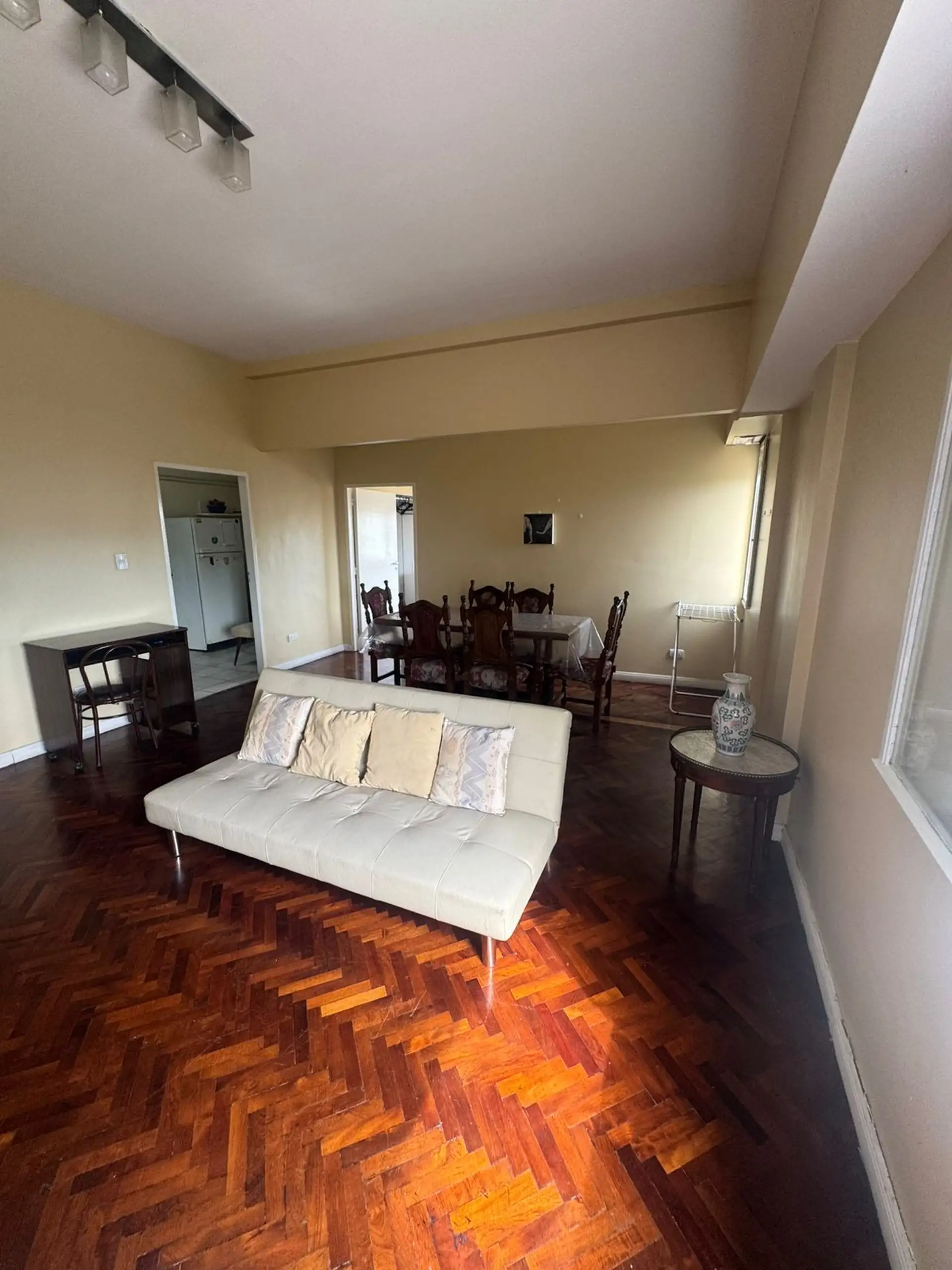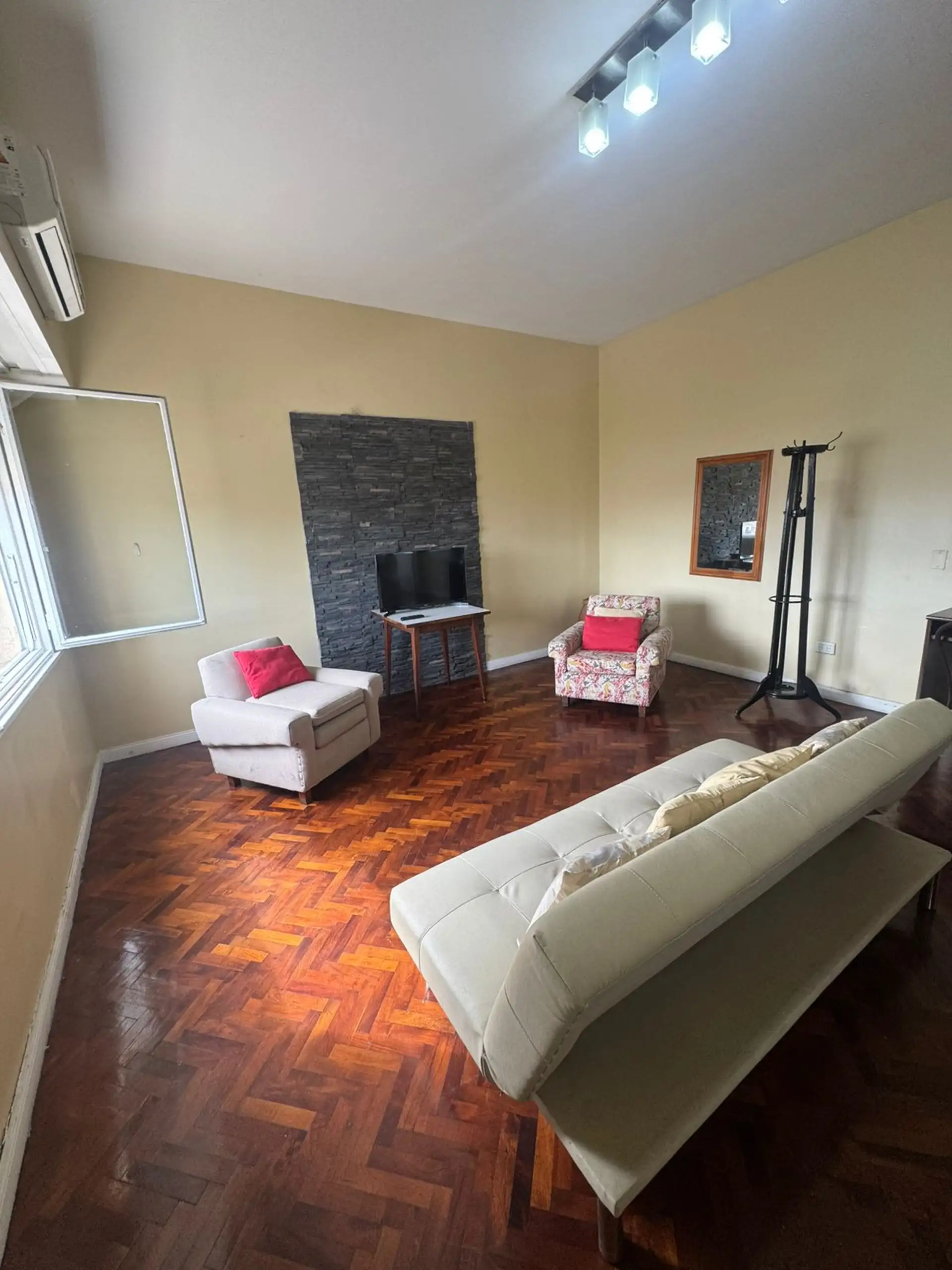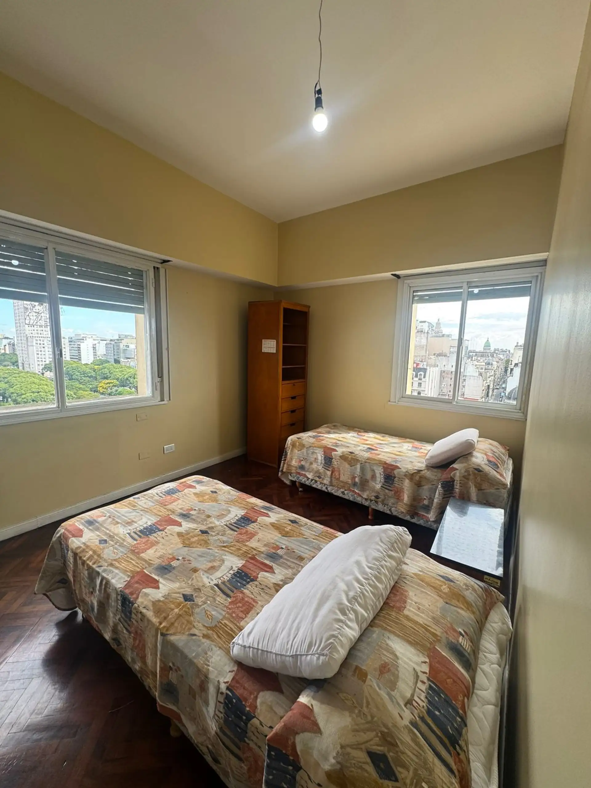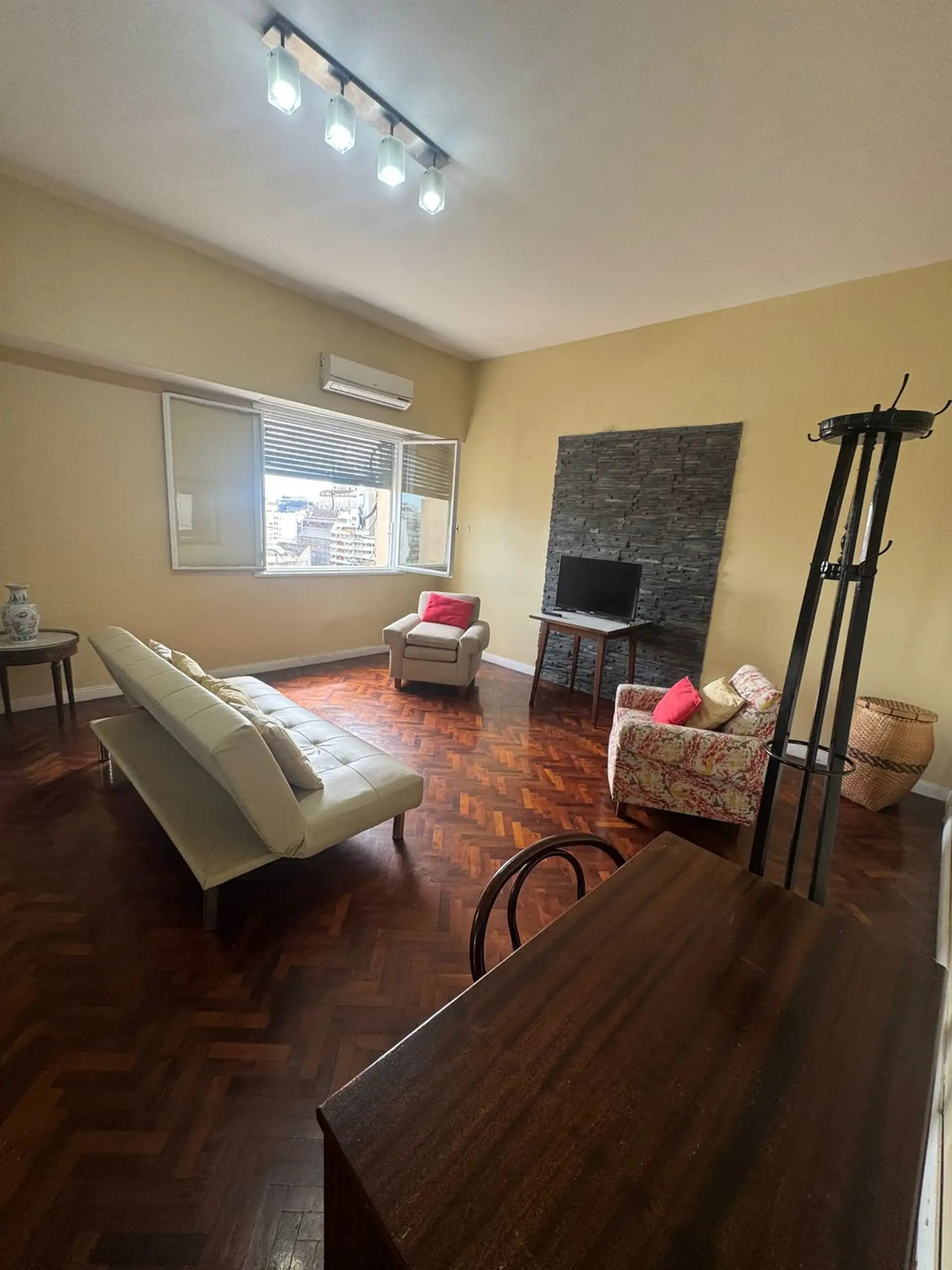Departamento de 2 ambientes de 45 m² en el piso 9, al frente, con vista abierta a Av. 9 de Julio. Se alquila temporariamente y está amoblado y equipado, hasta 3 huéspedes. Cuenta con aire acondicionado; living/comedor con mesa y 6 sillas, sofá cama, 2 sillones individuales y escritorio con TV led; escritorio de estudio; cocina con 4 hornallas y horno, vajilla completa y heladera con freezer; baño completo. El edificio tiene entrada electrónica y seguridad 24 hs. El alquiler mensual es de U$ 800