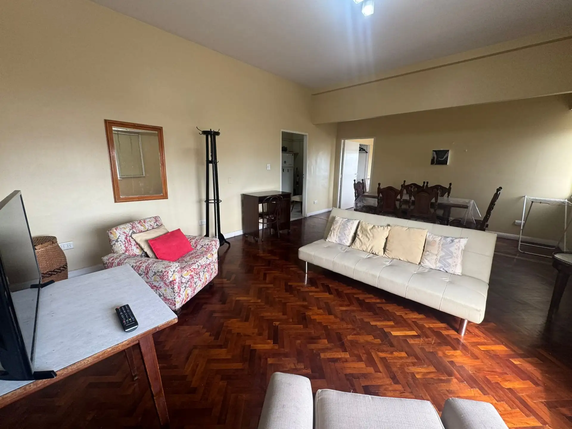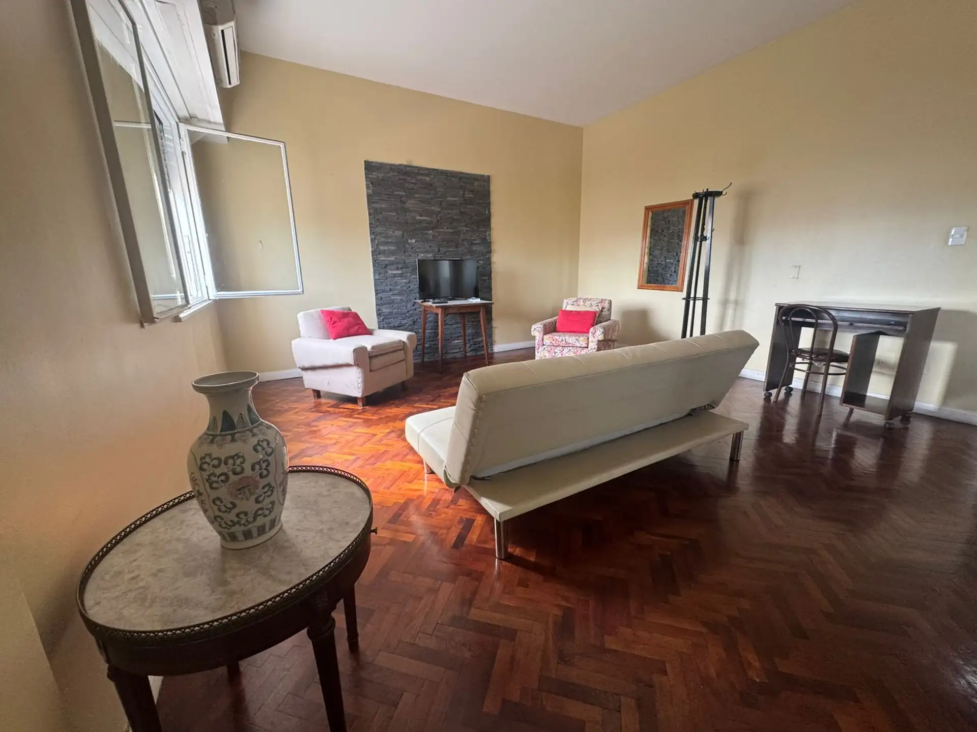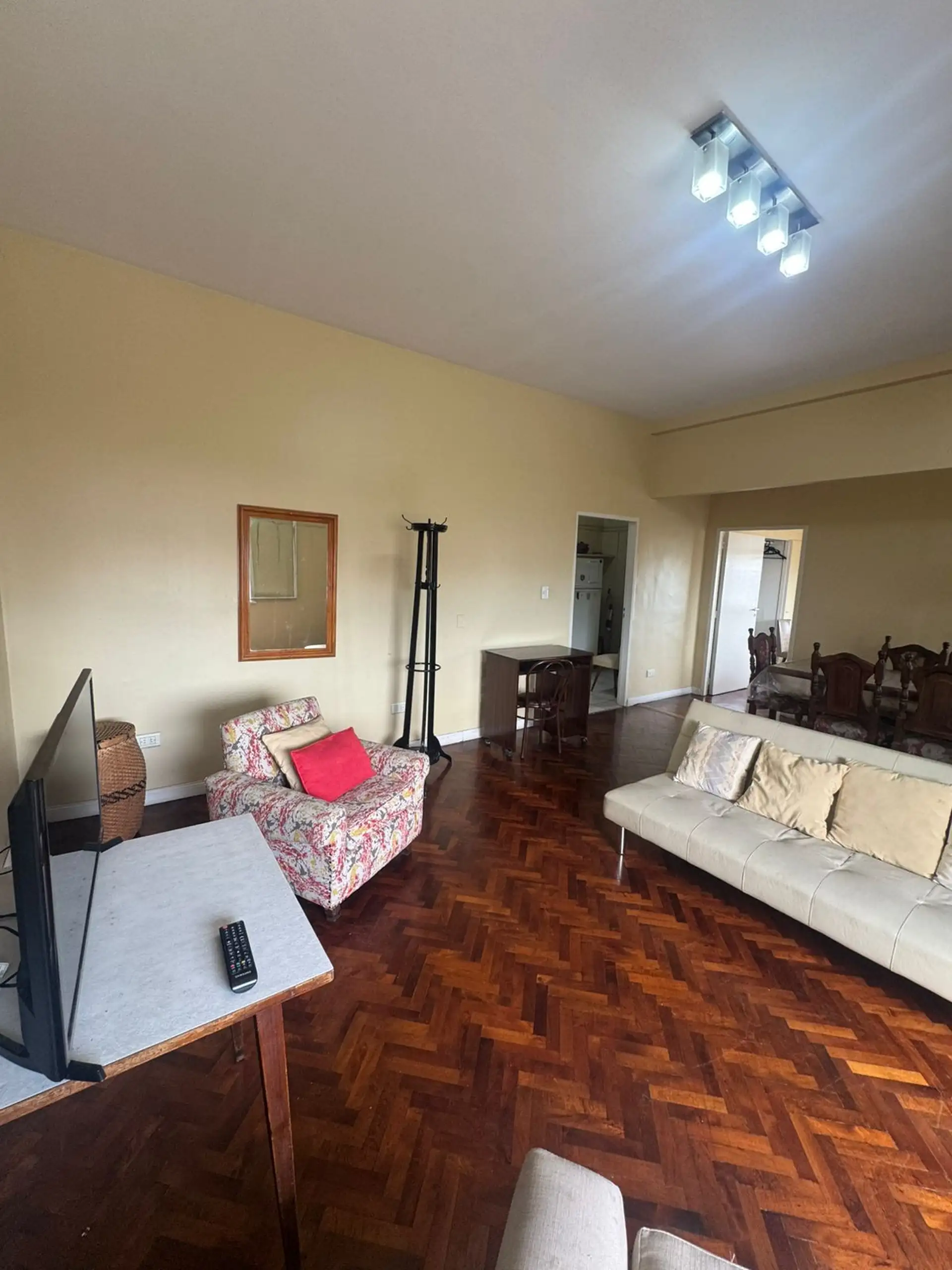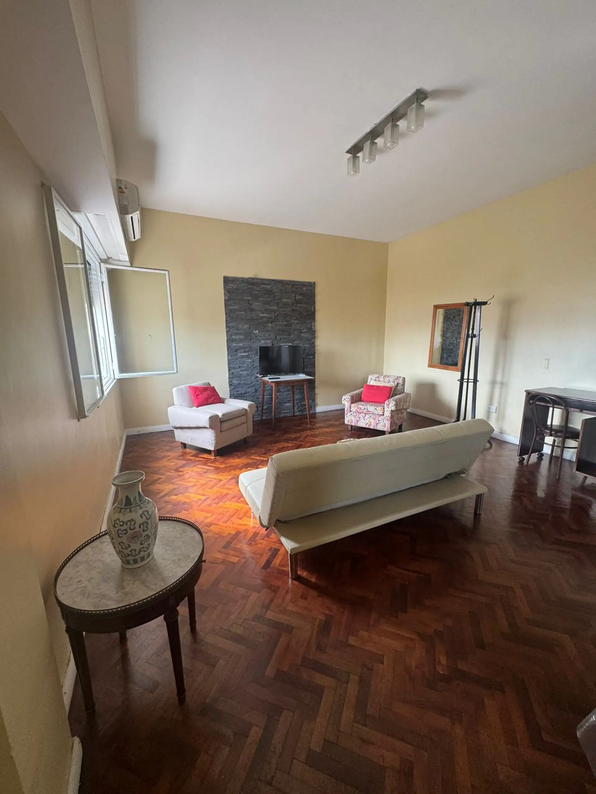Departamento de 2 ambientes de 45 m² en el piso 9, al frente, con vista abierta a Av. 9 de Julio. Se alquila temporariamente y está amoblado y equipado, hasta 3 huéspedes. Cuenta con aire acondicionado; living/comedor con mesa y 6 sillas, sofá cama, 2 sillones individuales y escritorio con TV led; escritorio de estudio; cocina con 4 hornallas y horno, vajilla completa y heladera con freezer; baño completo. El edificio tiene entrada electrónica y seguridad 24 hs. El alquiler mensual es de U$ 800
