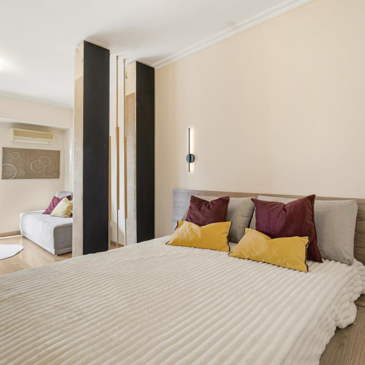 Departamento de 1 dormitorio amoblado en un piso alto, en la Torre Jacarandá, sobre Av. 9 de Julio en Monserrat. Incluye electrodomésticos y cuenta con vista abierta. Dispone de cocina independiente con desayunador/comedor diario, gas natural y caldera dual para agua caliente y calefacción por losa radiante individual, placard, baño completo con bañera, aire acondicionado frío/calor y losa radiante con caldera individual. El edificio tiene recepción, seguridad presencial y totem, además de terra