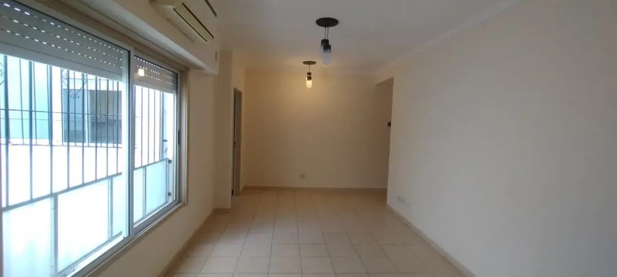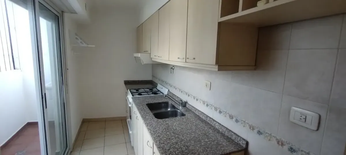 Departamento tipo casa de 2 ambientes de aproximadamente 50 m² en Monte Castro. Cuenta con living, comedor con pisos cerámicos, cocina comedor, dormitorio con placard y piso flotante, baño completo y lavadero con cerramiento. Tiene termotanque para agua caliente y aire acondicionado frío-calor; la cocina está equipada con muebles bajo mesada y alacena, y mesada de granito. El alquiler mensual es de $ 650.000 (1º trimestre), con depósito de USD 600 y contrato por 24 meses; ABL, impuesto municipal