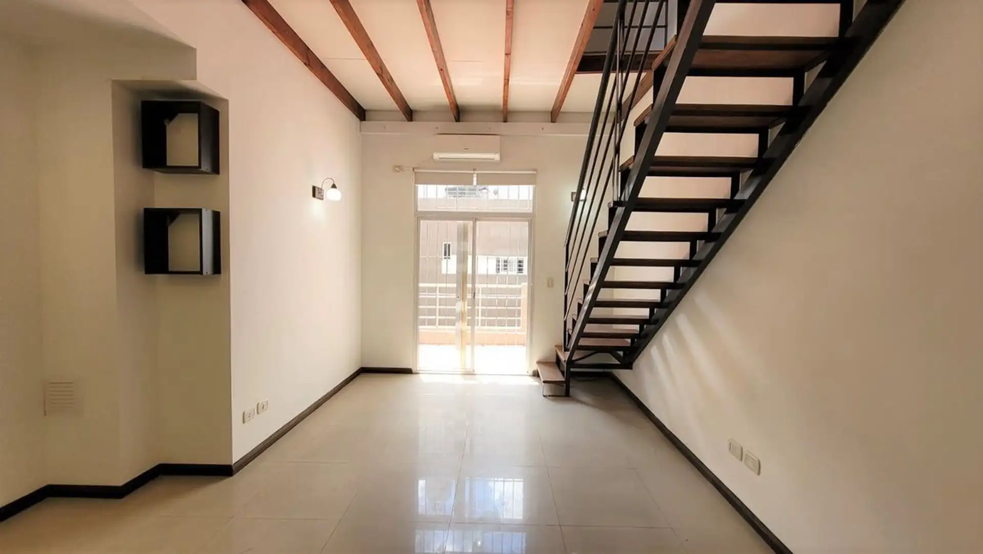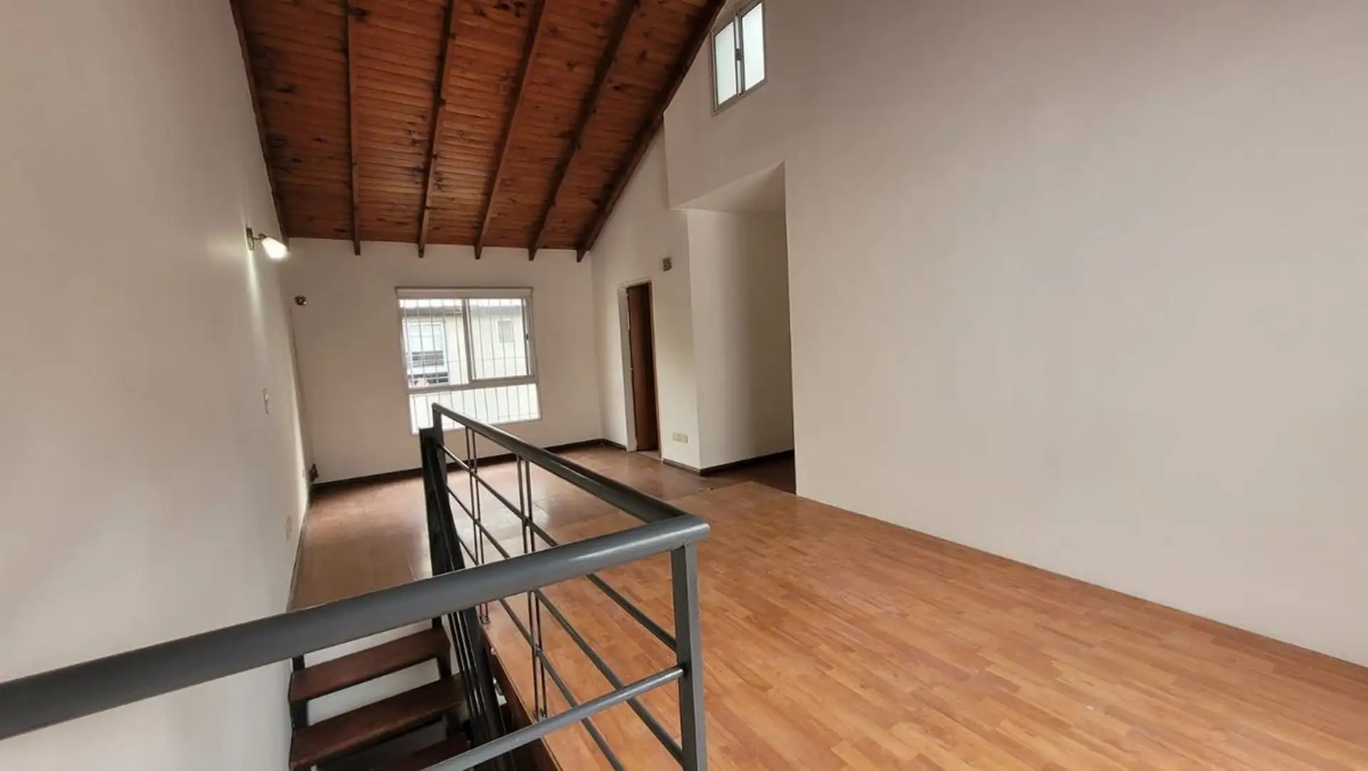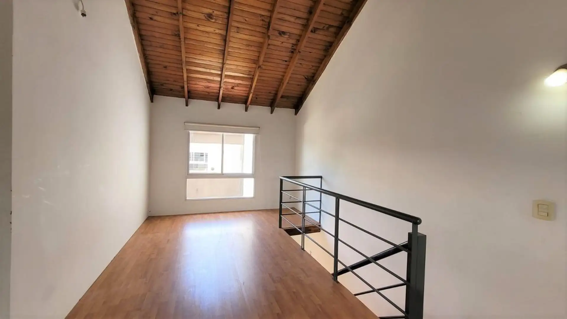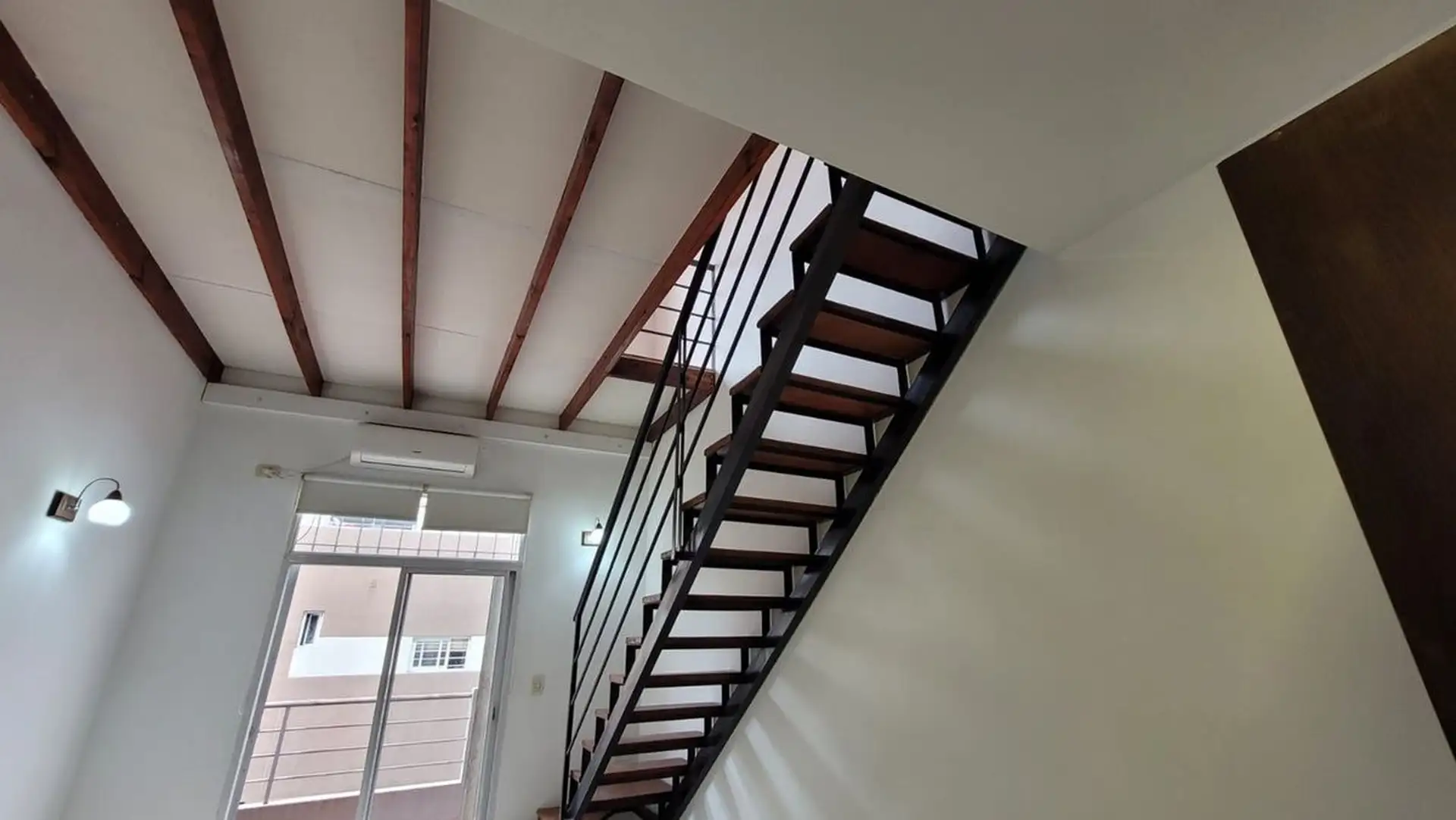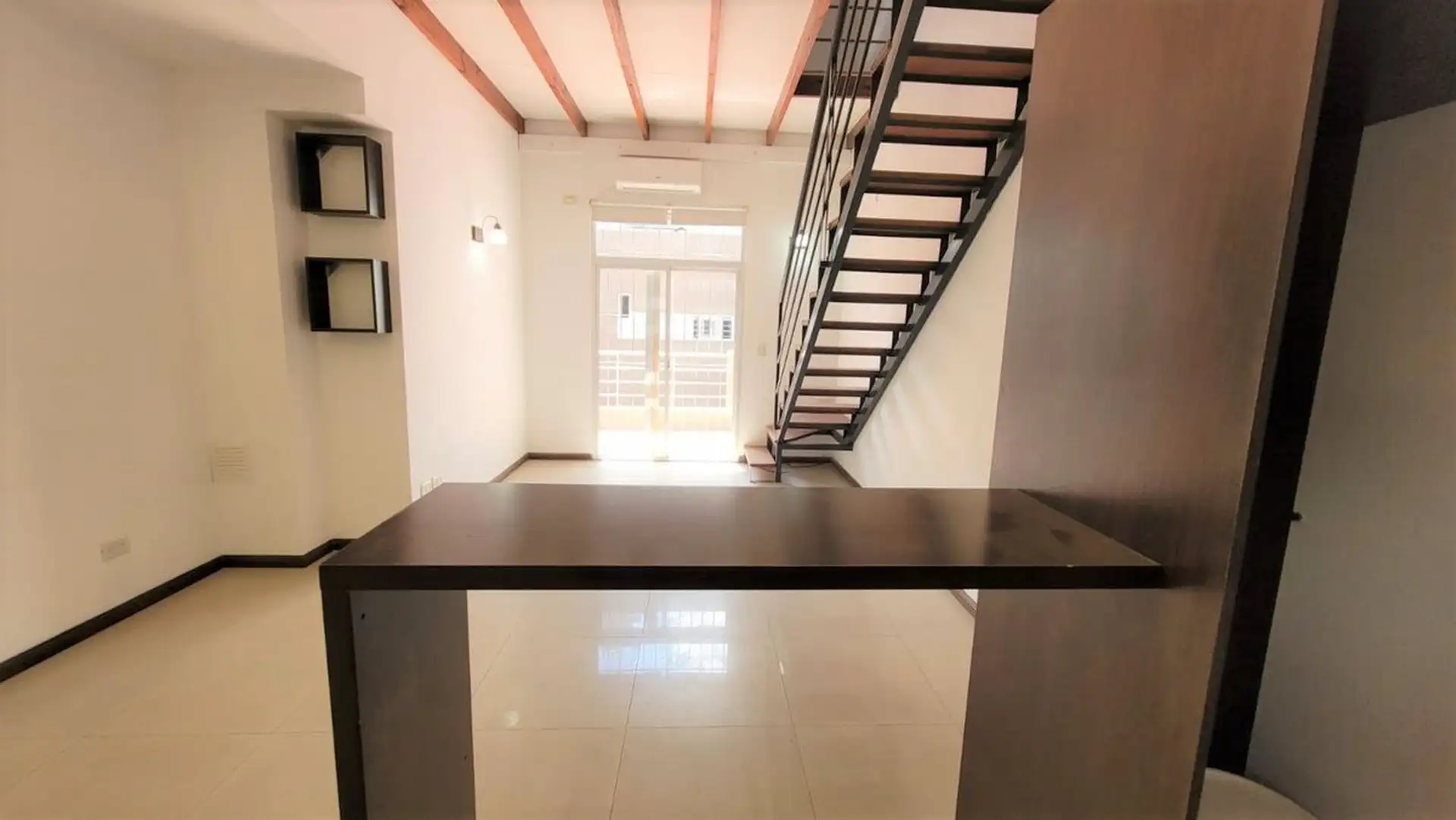 Departamento tipo PH de 1 ambiente en primer piso por escalera, muy luminoso. Cuenta con cocina integrada con desayunador, espacio para heladera, cocina a gas y campana, y aire frío/calor. El living tiene salida a balcón con rejas de seguridad; en el balcón hay termotanque a gas y conexión para lavarropas en un gabinete. En el segundo piso hay dormitorio, con baño completo y ventana al contrafrente; cuenta con entrepiso con ventana al frente. Bajas expensas y ubicación sobre Joaquín V. González