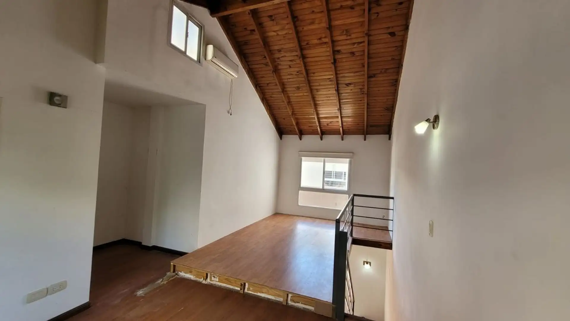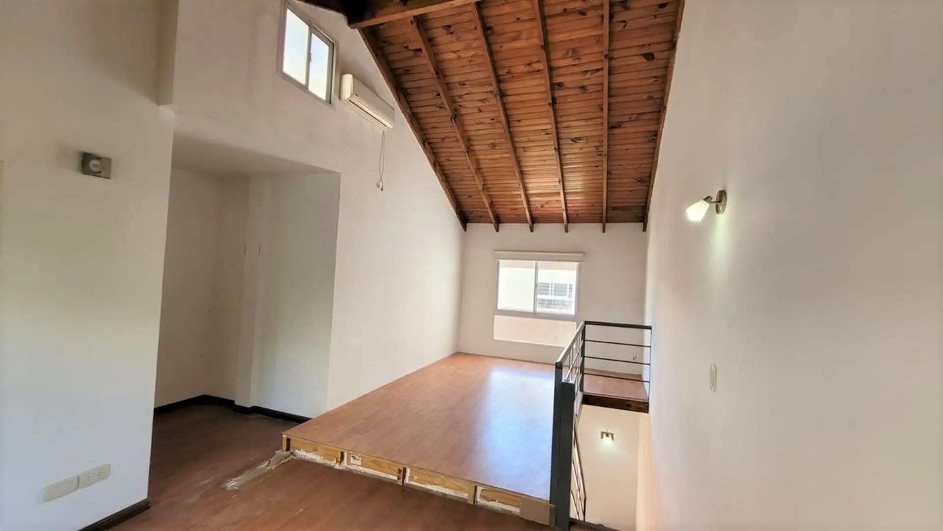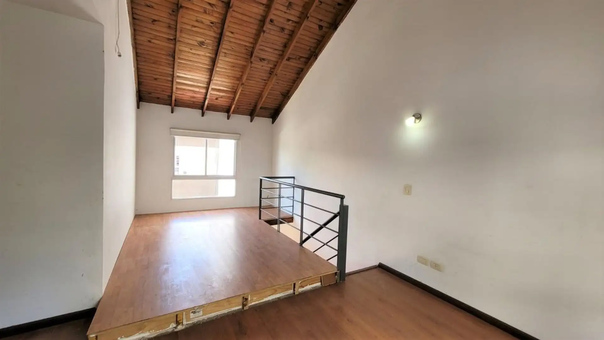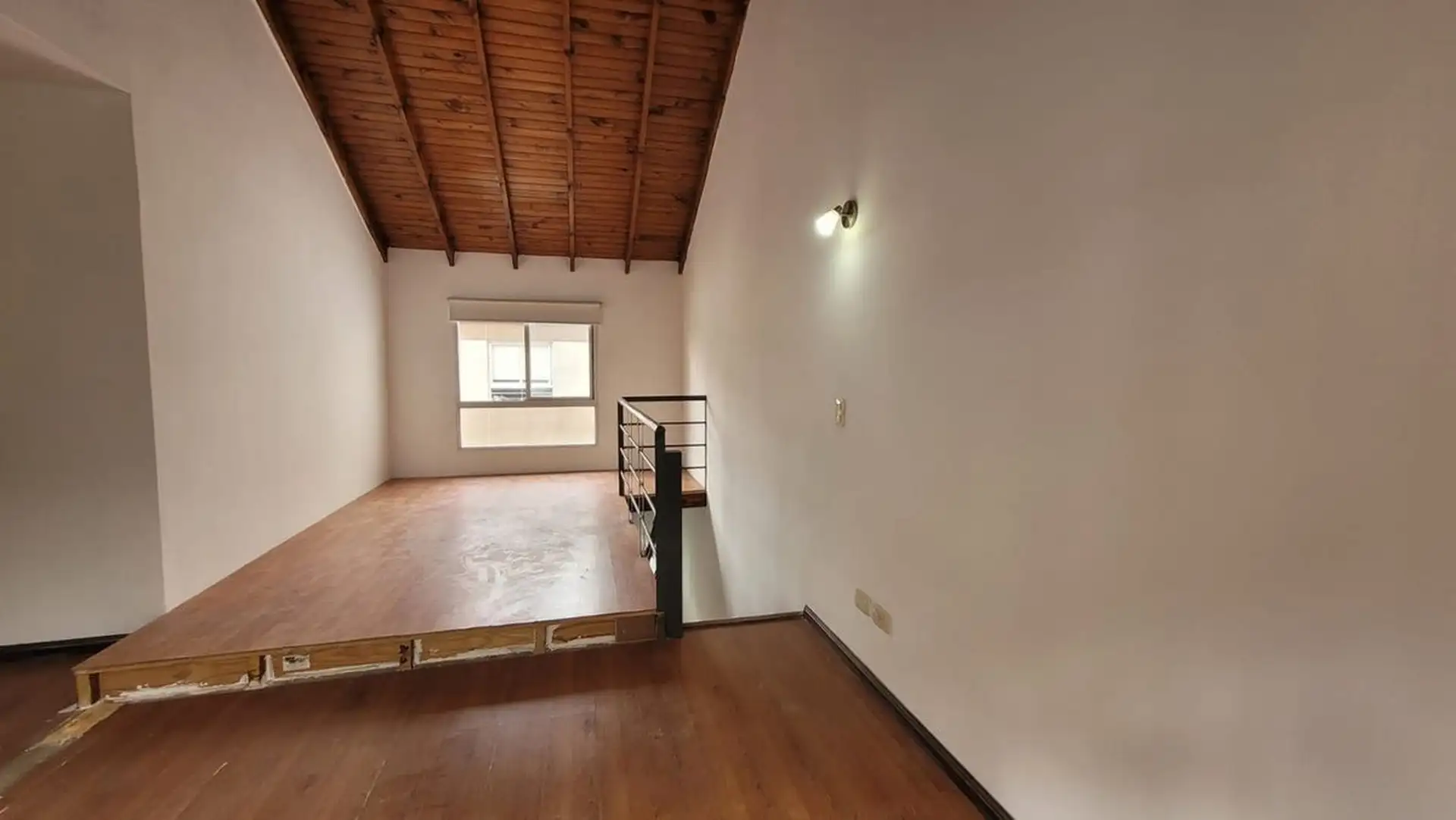 Departamento tipo PH de 1 ambiente en primer piso por escalera, muy luminoso. Cuenta con cocina integrada con desayunador, espacio para heladera, cocina a gas y campana, y aire frío/calor. El living tiene salida a balcón con rejas de seguridad; en el balcón hay termotanque a gas y conexión para lavarropas en un gabinete. En el segundo piso hay dormitorio, con baño completo y ventana al contrafrente; cuenta con entrepiso con ventana al frente. Bajas expensas y ubicación sobre Joaquín V. González