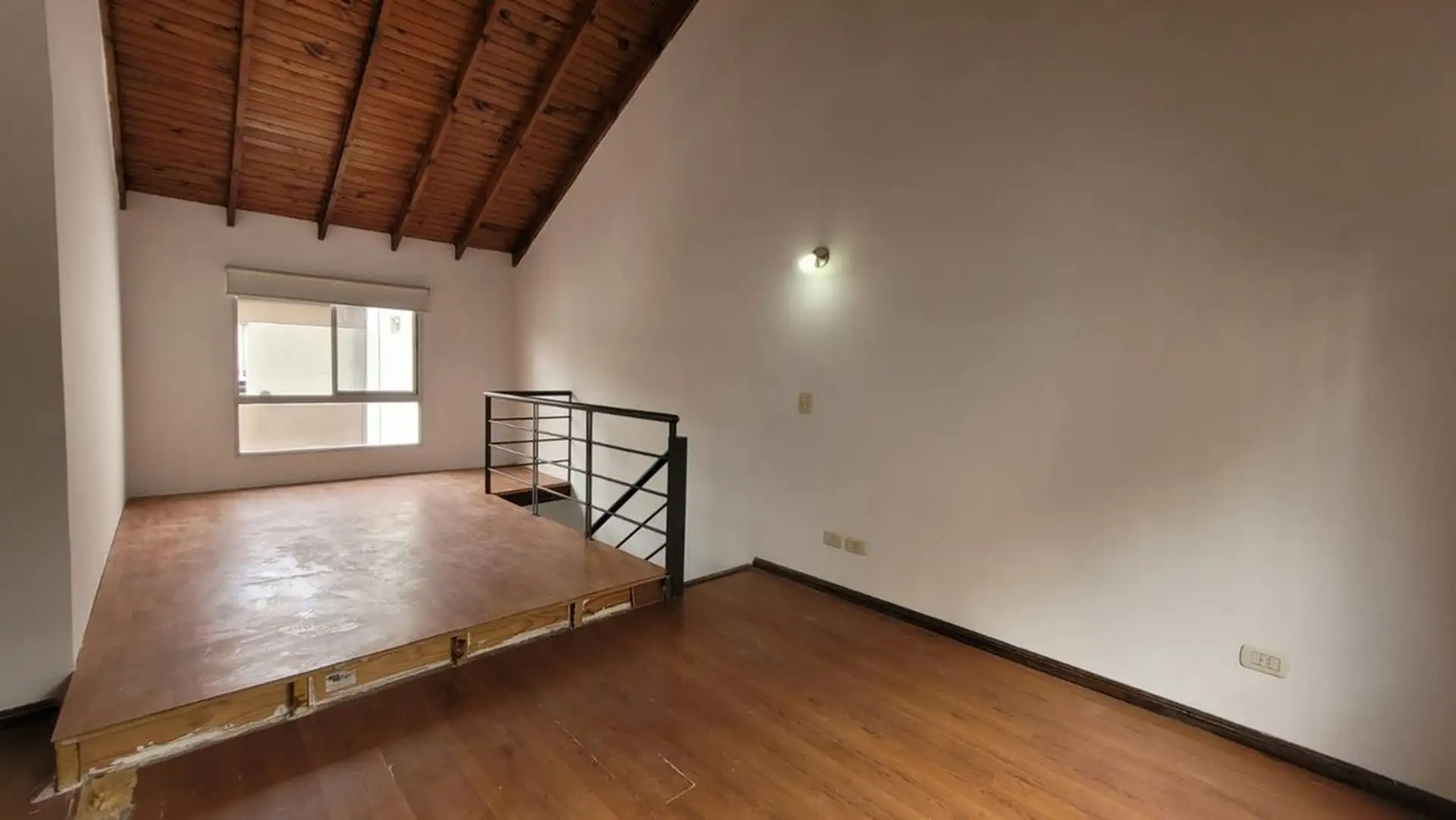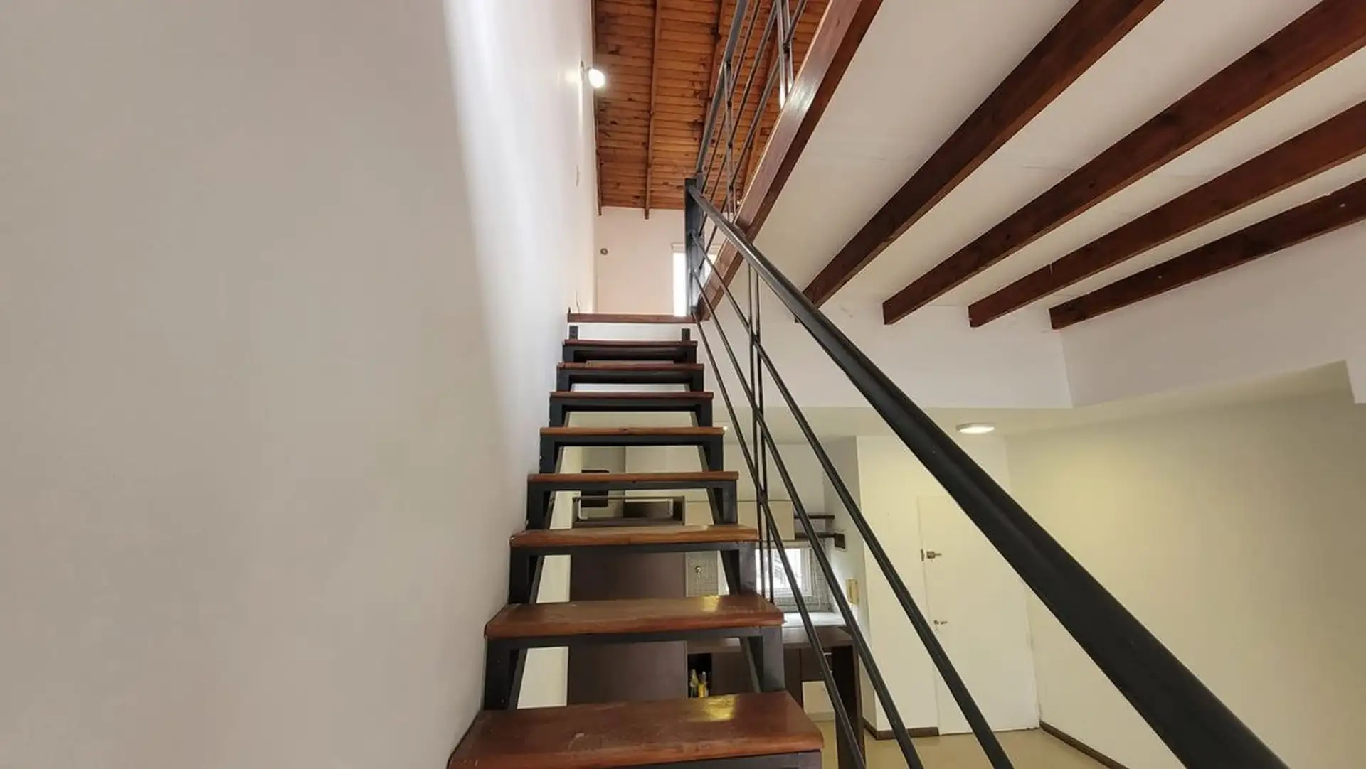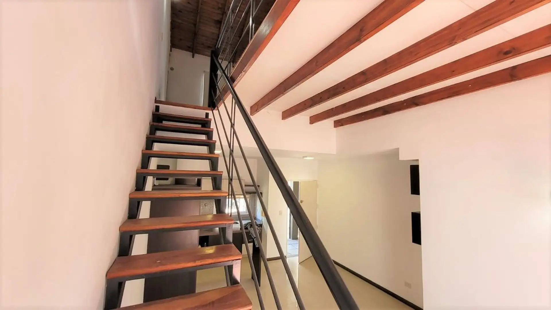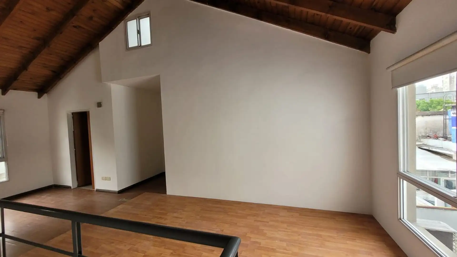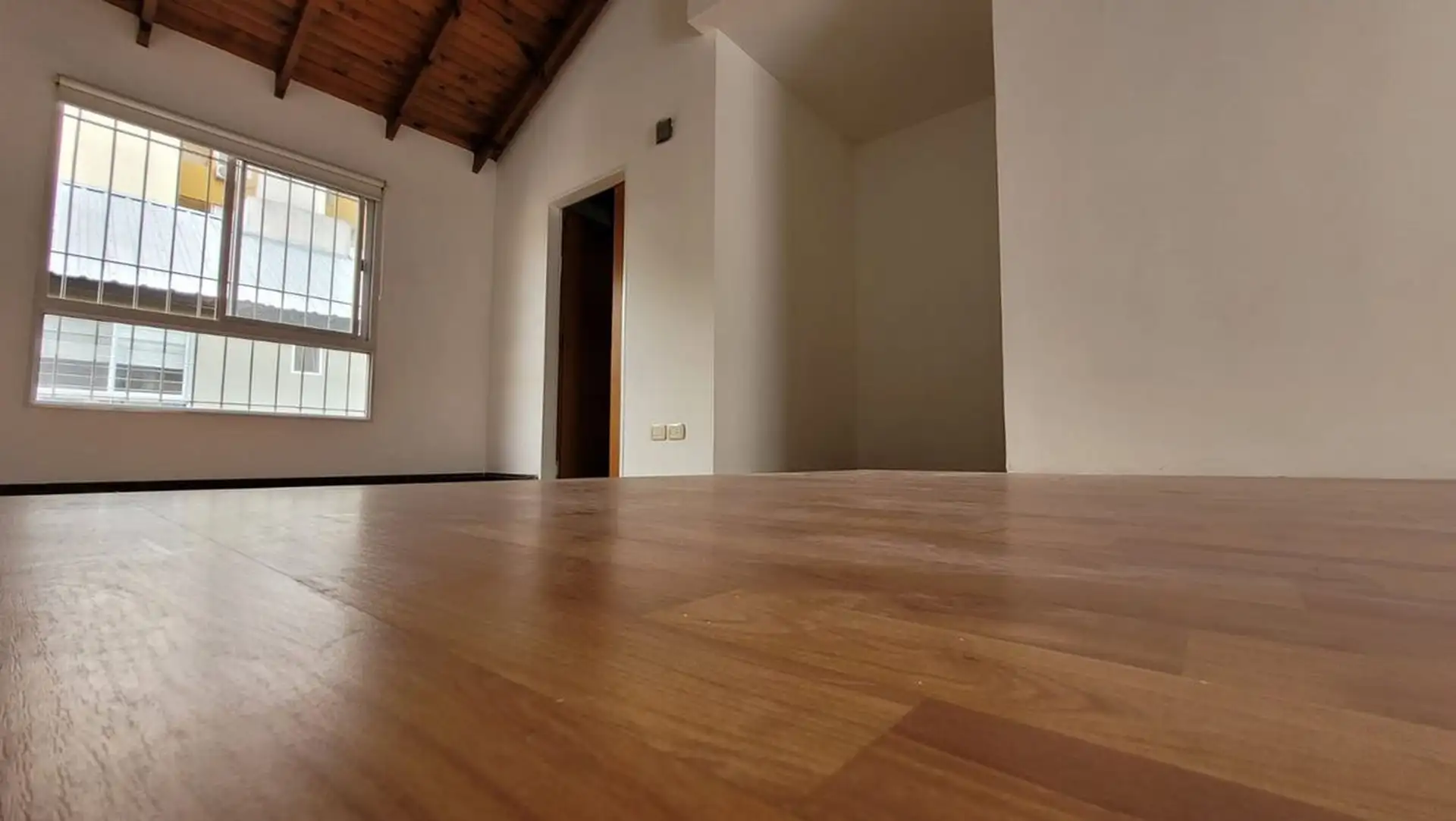 Departamento tipo PH de 1 ambiente en primer piso por escalera, muy luminoso. Cuenta con cocina integrada con desayunador, espacio para heladera, cocina a gas y campana, y aire frío/calor. El living tiene salida a balcón con rejas de seguridad; en el balcón hay termotanque a gas y conexión para lavarropas en un gabinete. En el segundo piso hay dormitorio, con baño completo y ventana al contrafrente; cuenta con entrepiso con ventana al frente. Bajas expensas y ubicación sobre Joaquín V. González