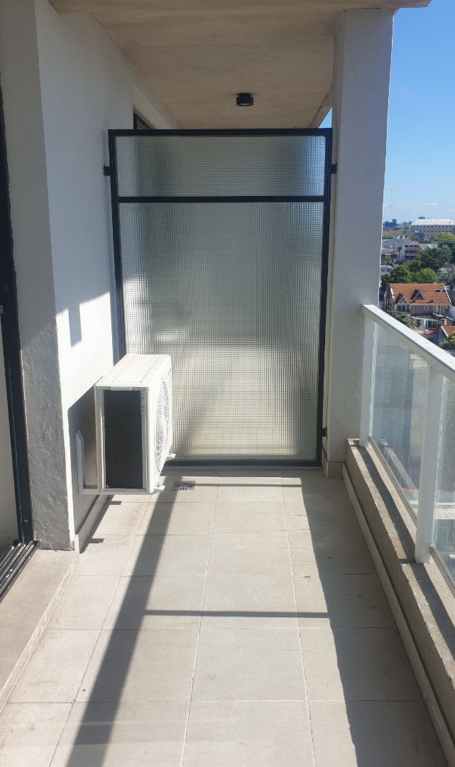 Departamento de 2 ambientes a estrenar en el 9° piso, contrafrente, orientación Este, apto profesional. Cuenta con ambiente de 11,85 x 3,35 y balcón de 4,15 x 1,55. Incluye cocina con termotanque eléctrico Saiar, anafe y horno eléctrico, 2 aires acondicionados, terraza, pileta, 2 parrillas, SUM y laundry. Expensas $140.000 e incluyen AYSA. Contrato de 2 años con aumento cada 3 meses por IPC; no se aceptan mascotas.