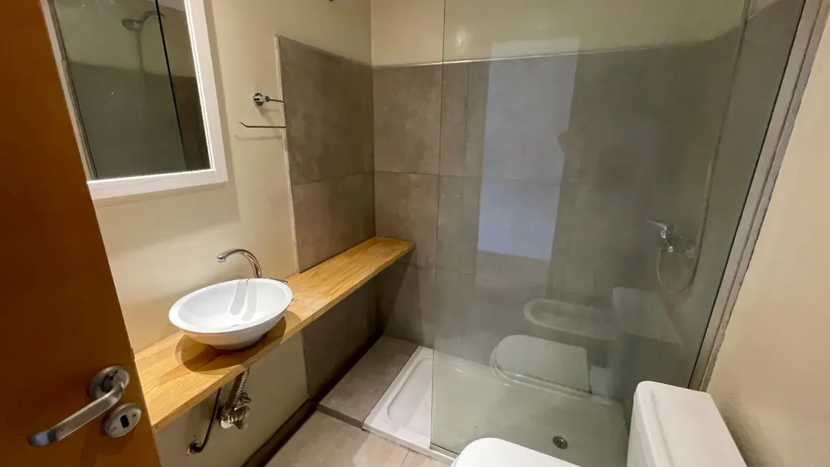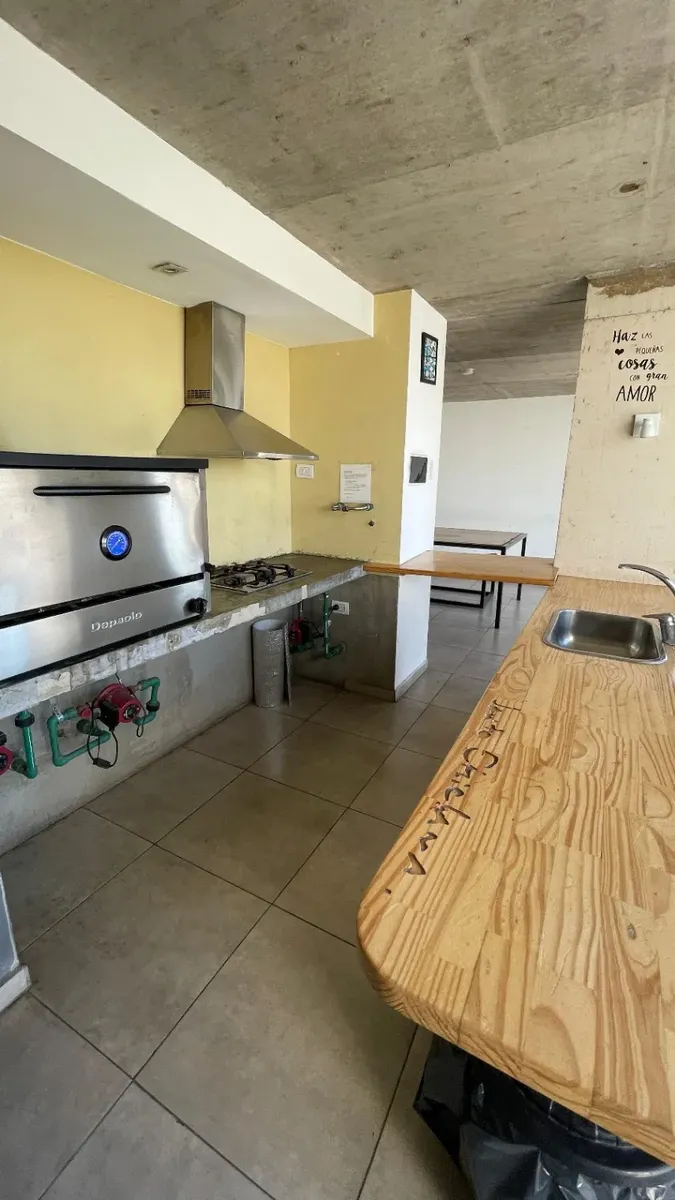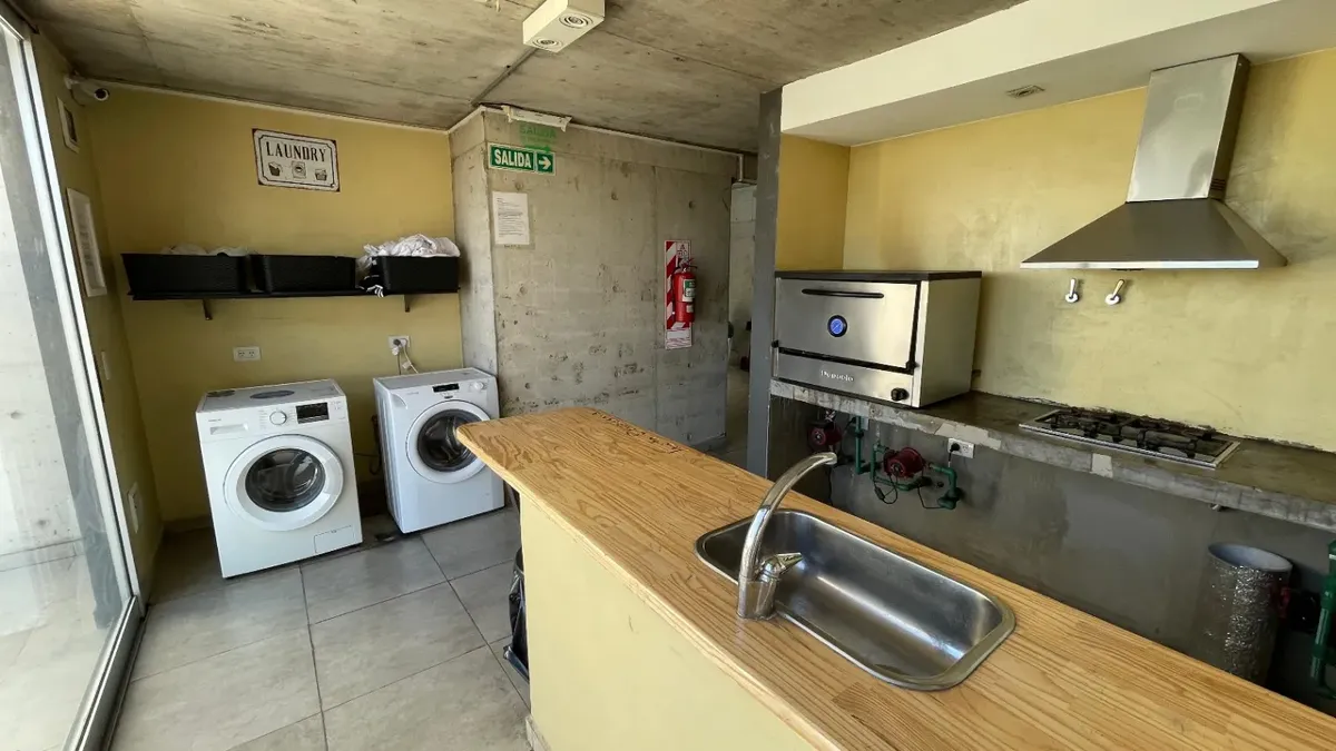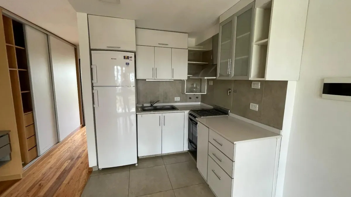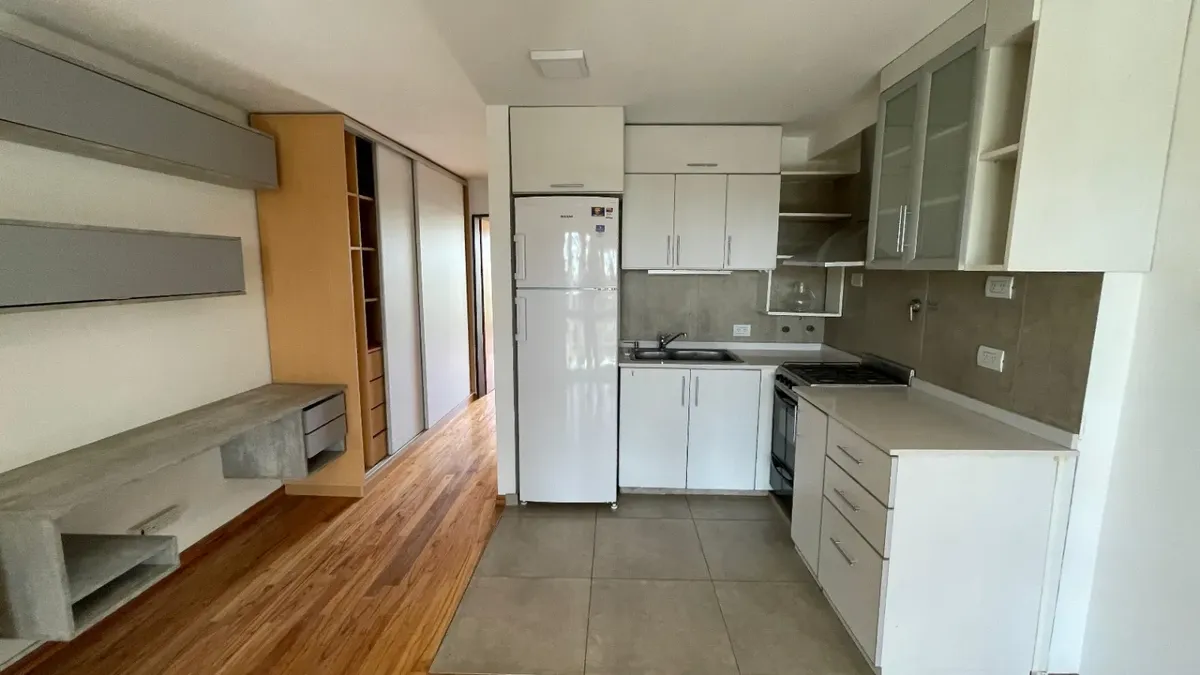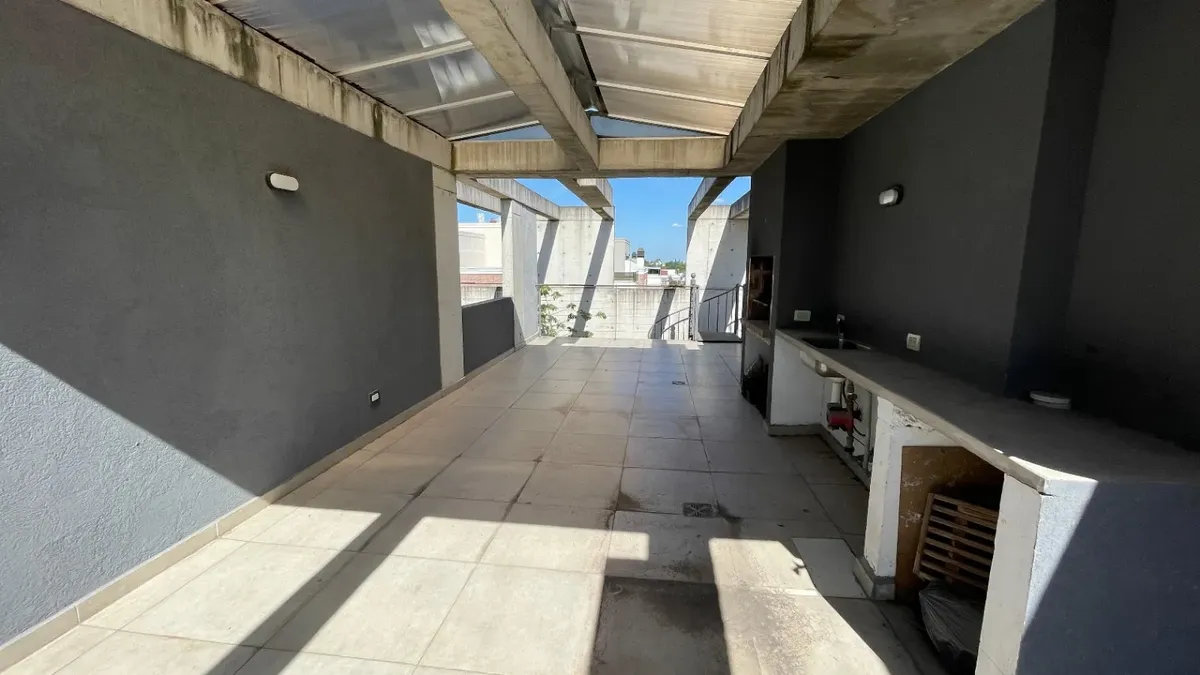 Departamento de 2 ambientes en alquiler, en Rivadavia 576, 4to piso. Dispone de cocina-comedor, baño y dormitorio, con balcón y terraza de uso exclusivo de la unidad. Incluye cochera cubierta en planta baja, seguridad por cámaras, SUM, pileta y parrillas. El valor incluye todos los servicios; los ajustes son trimestrales por ICL.