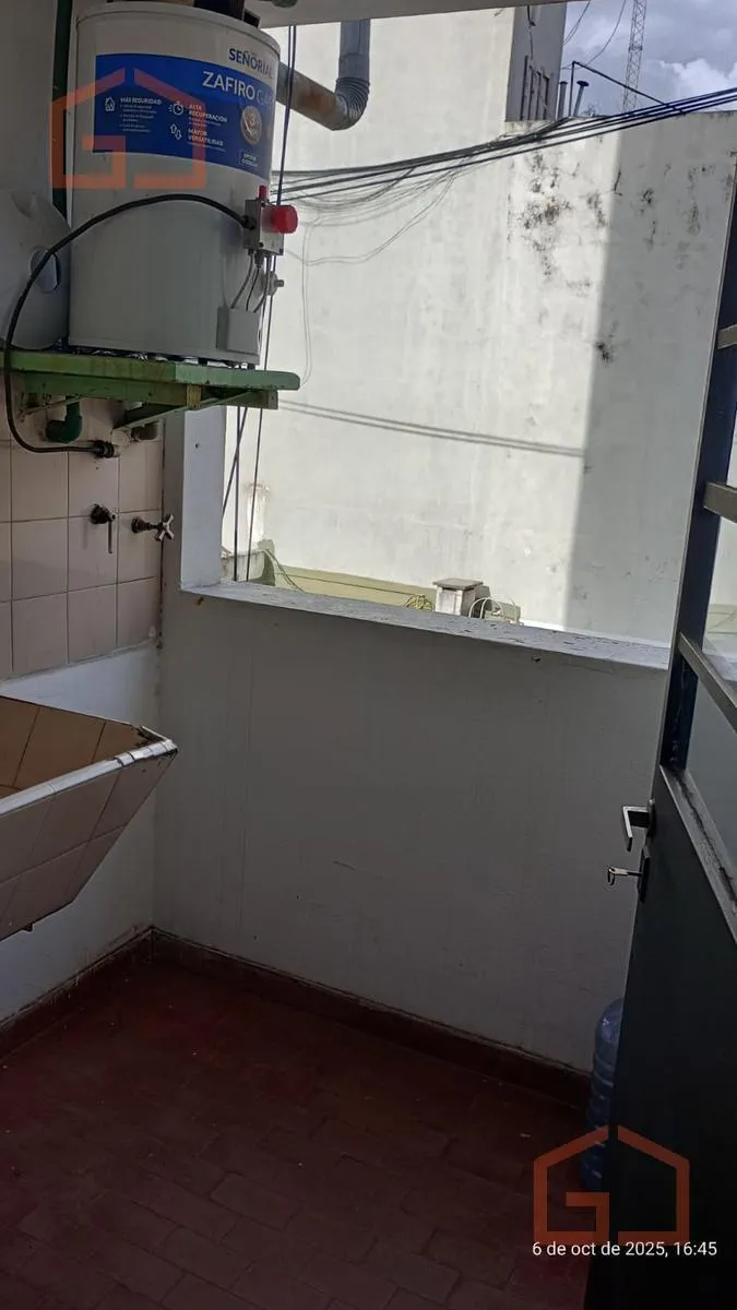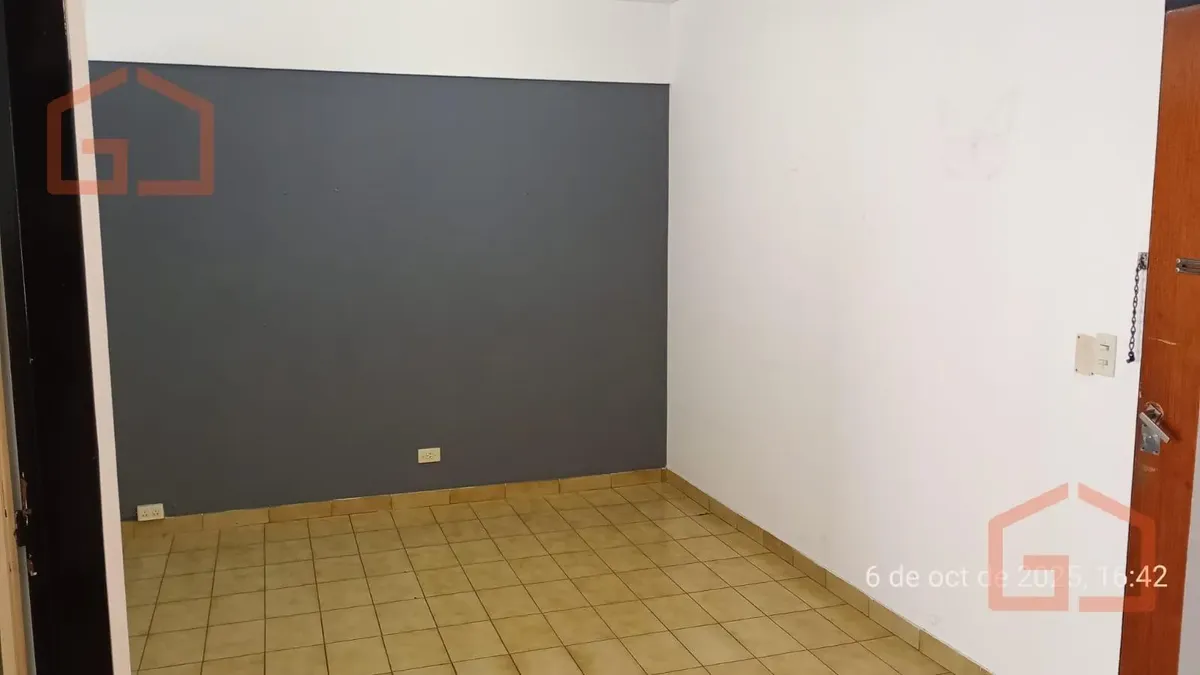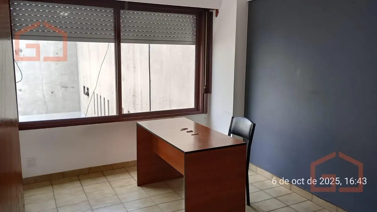 Two-room apartment in Morón Centre on Calle 25 de Mayo, arranged for professional use. It has a separate kitchen, laundry area, living room, and a partitioned office with durlock, plus a second office area in the bedroom with an integrated wardrobe. The bathroom has a bathtub. Rent is ARS 450,000 per month, with building fees estimated at ARS 80,000.