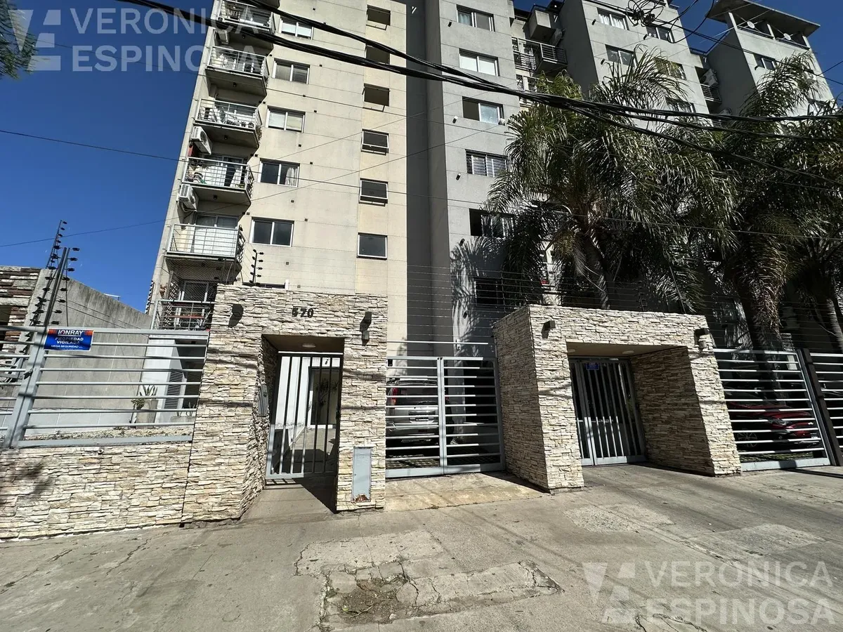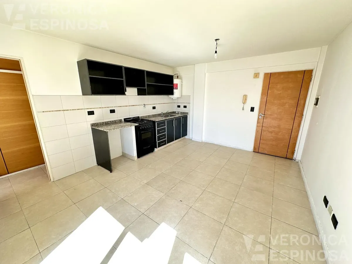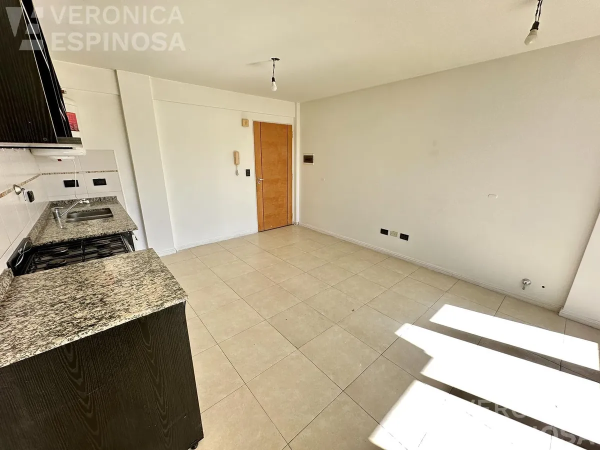 Departamento de 2 ambientes en zona residencial de Morón. Cuenta con living-comedor, cocina integrada con muebles bajo mesada y alacena, y 1 dormitorio con placard. El baño es completo con bañera. El edificio dispone de piscina y seguridad 24 horas.