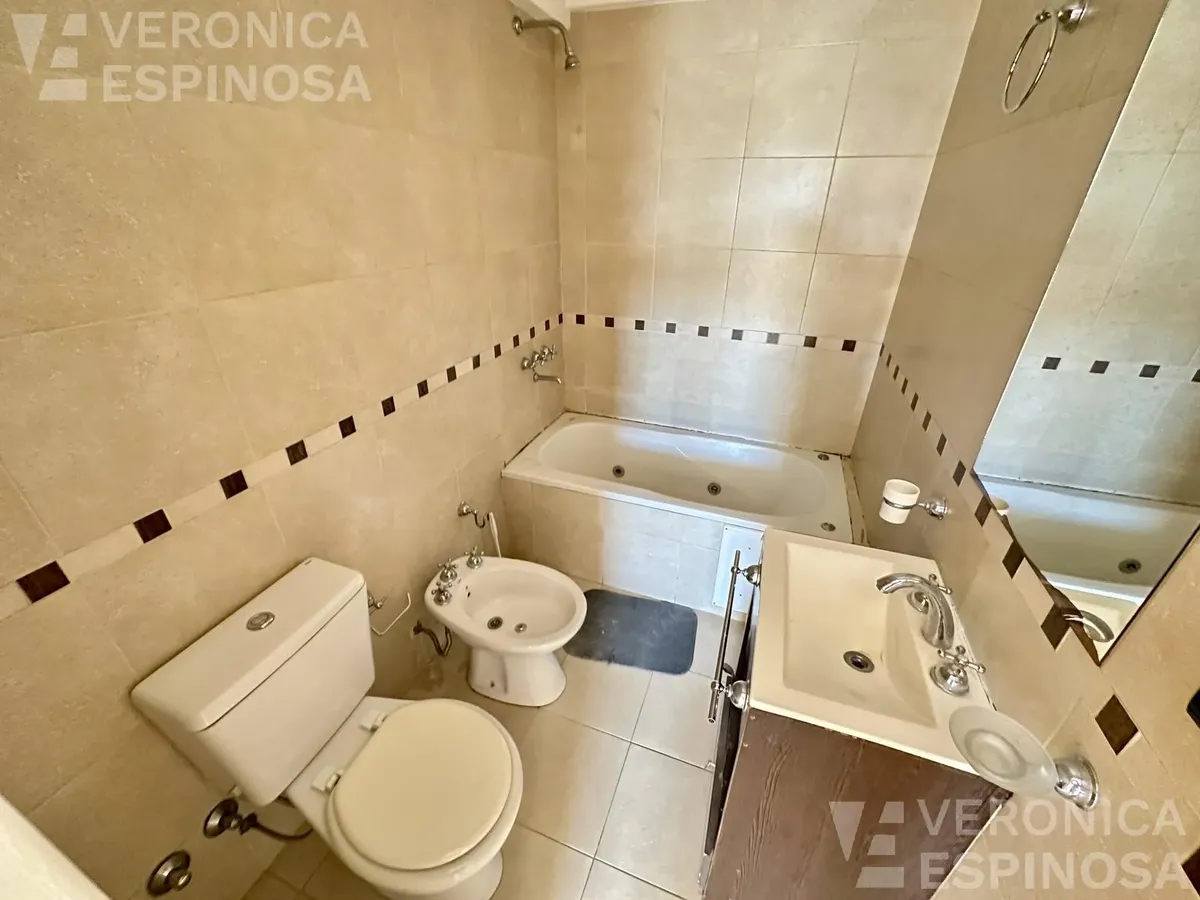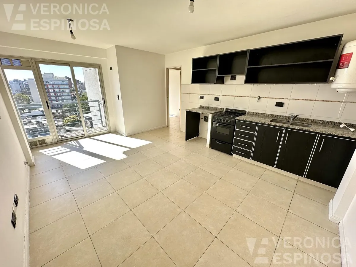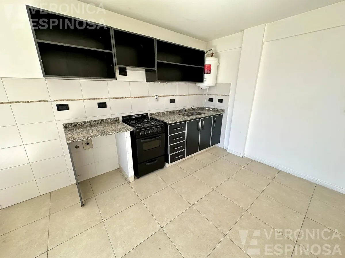 Departamento de 2 ambientes en zona residencial de Morón. Cuenta con living-comedor, cocina integrada con muebles bajo mesada y alacena, y 1 dormitorio con placard. El baño es completo con bañera. El edificio dispone de piscina y seguridad 24 horas.