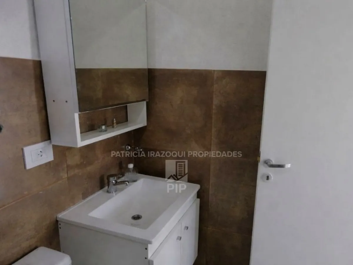 Departamento de 2 ambientes en 4° piso, con balcón. Living-comedor integrado con salida al balcón, cocina separada con alacena y bajo mesada, dormitorio con frente de placard y baño completo. Incluye cochera doble cubierta y aire acondicionado en todos sus ambientes. El edificio cuenta con ascensor y terraza con SUM y parrilla. Contrato por 24 meses con ajuste trimestral por ICL más expensas e impuesto municipal. Ubicación a 2 cuadras del corredor lineal Metrobus y a 5 de la AU. Acceso Oeste.