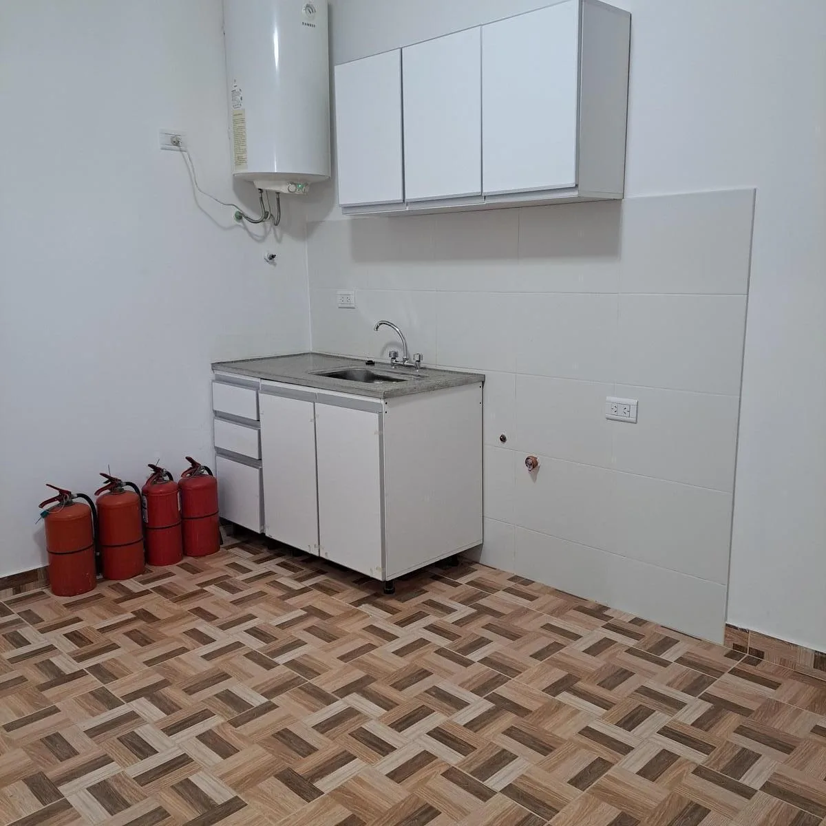 Departamento de 2 ambientes a estrenar, al frente, con balcón. Cocina comedor diario con anafe, horno y termotanque todo eléctrico. Dormitorio con salida al balcón y baño con ducha y mampara. El edificio cuenta con planta baja y primer piso por escalera; se encuentra sin gas.