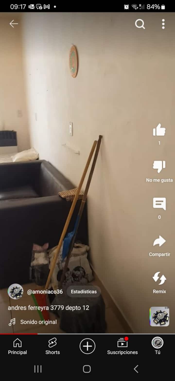 Departamento en Nueva Pompeya con 1 dormitorio. La publicación indica una ubicación a 20 minutos del centro. Se menciona que el entorno es residencial y de tránsito reducido, a 3 cuadras de estaciones de hospitales y de subte, y a 3 cuadras de parques y plazas.