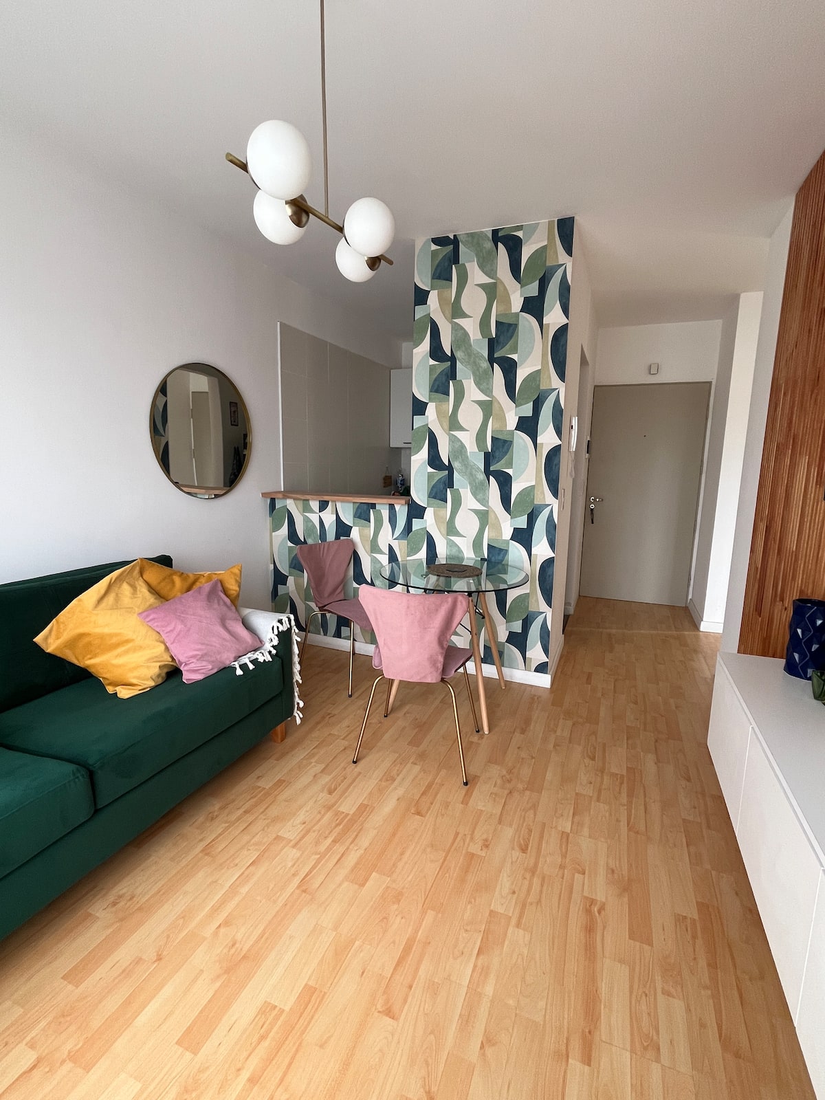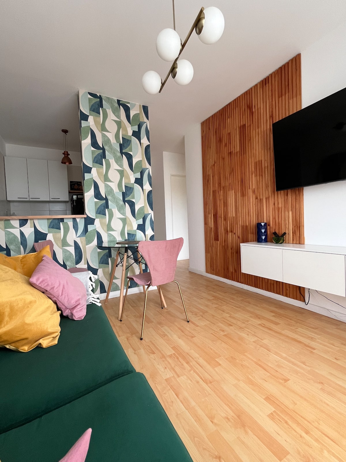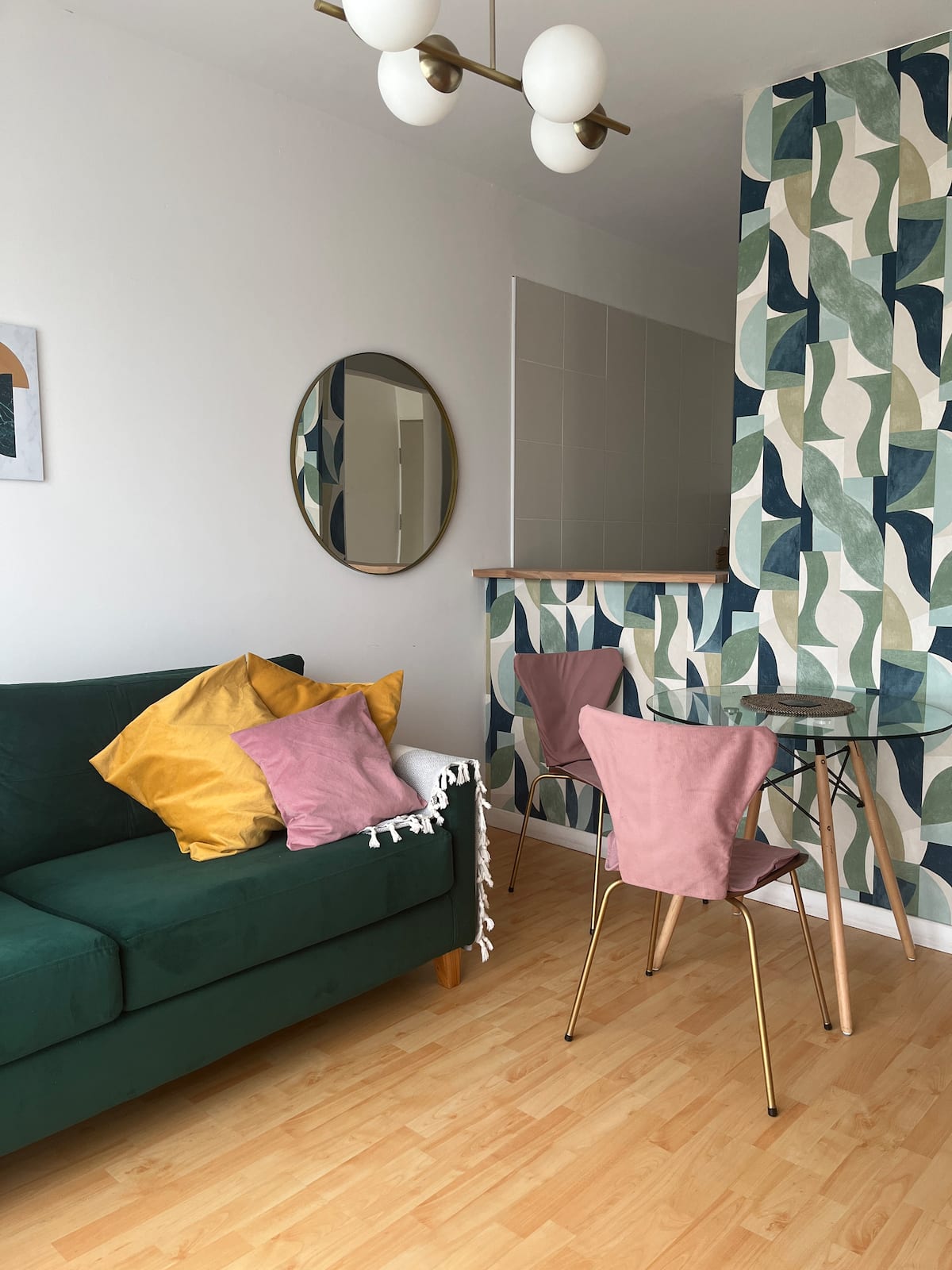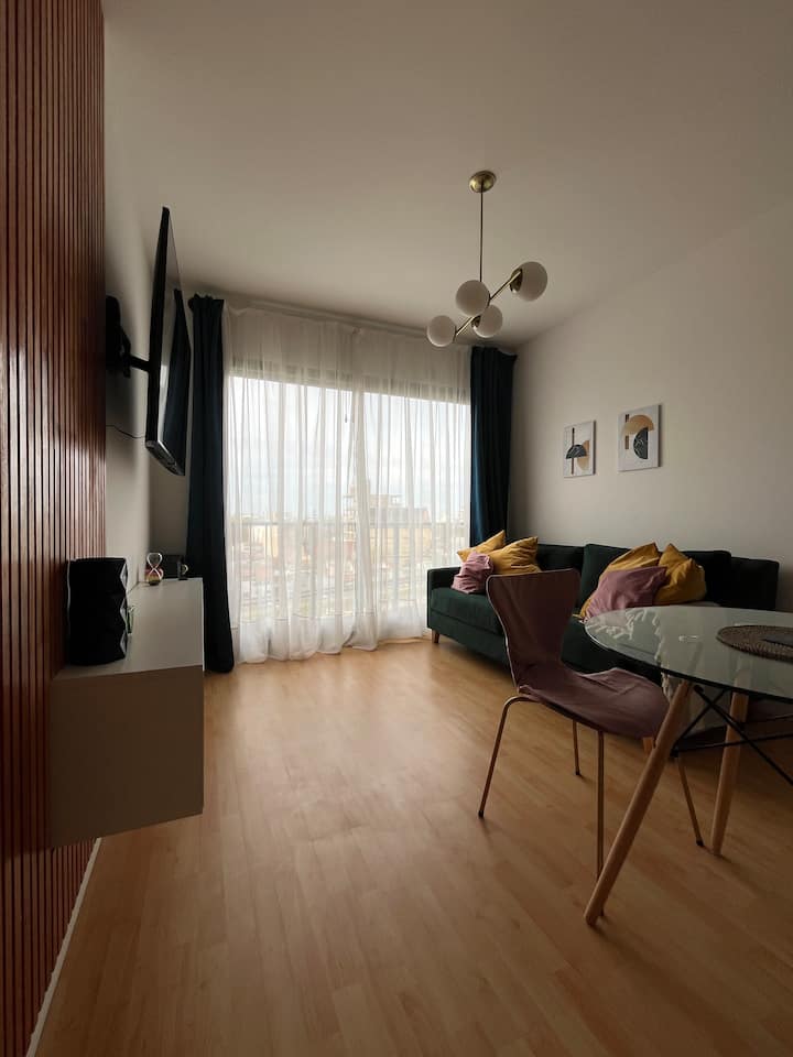 Departamento de 2 ambientes, con equipamiento completo y decoración de estilo contemporáneo. Se informa como apto para estadías de trabajo o uso personal. El aviso no especifica superficie, piso, orientación ni barrio dentro de Buenos Aires.