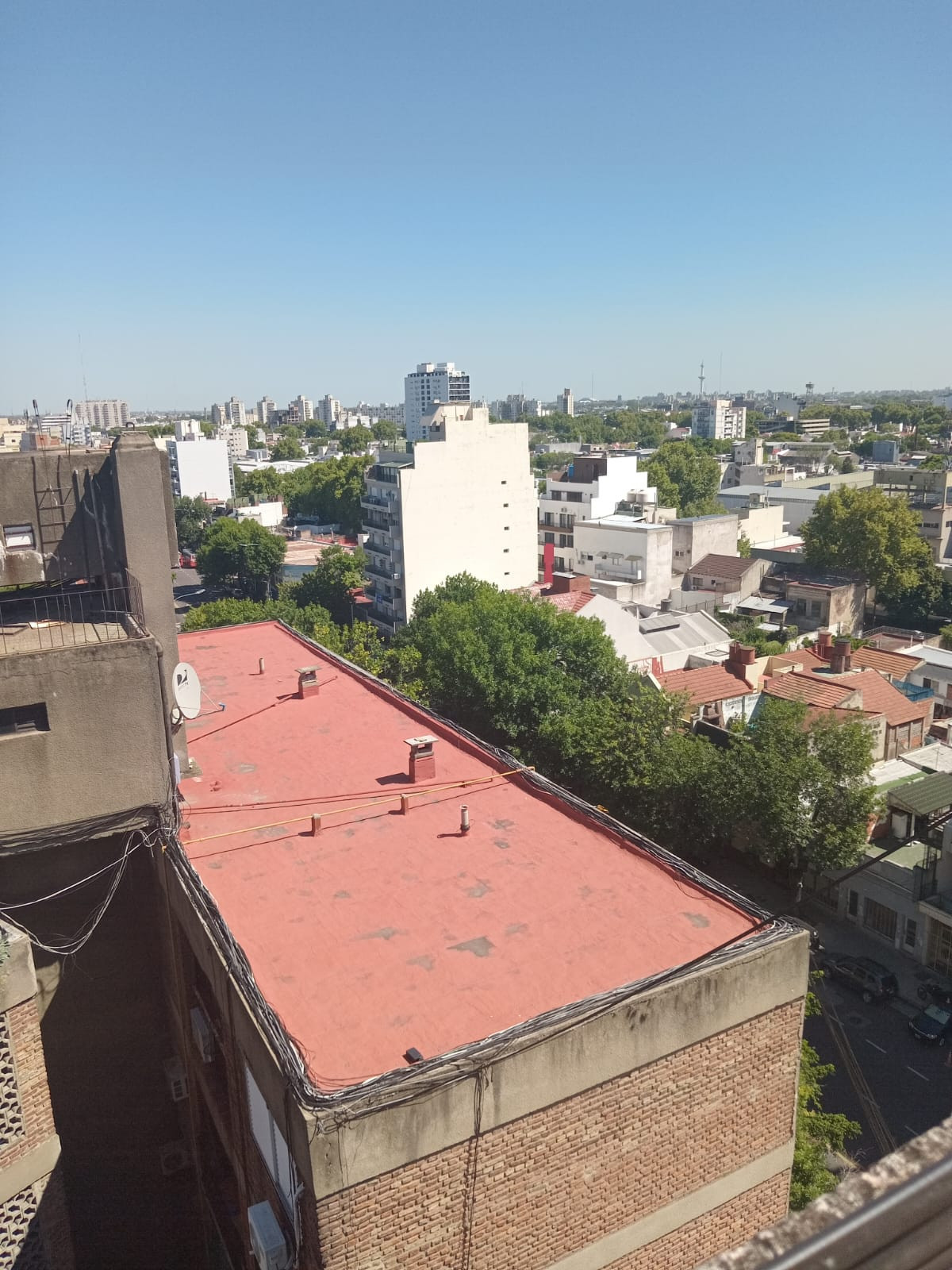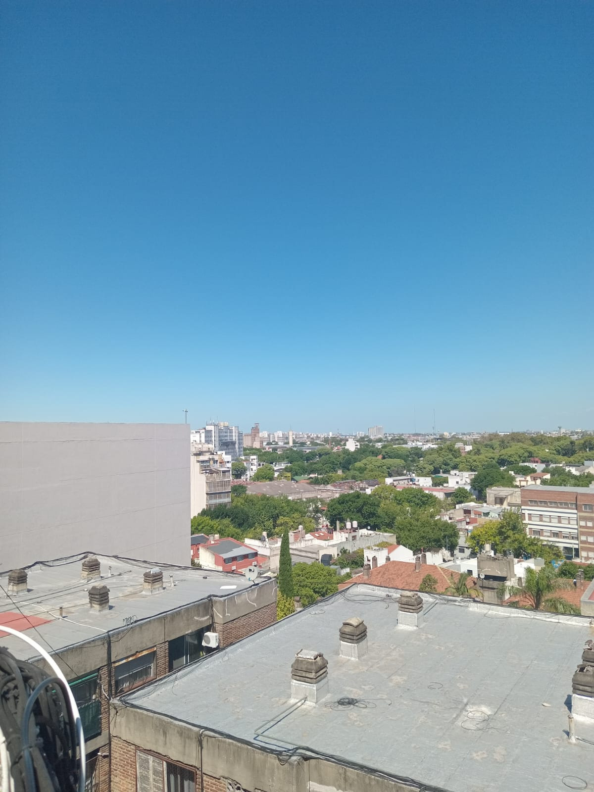 Departamento de 2 ambientes en Av. Caseros 3500 con vista panorámica. Cuenta con living de 3 x 4,5, dormitorio de 2,8 x 2,8 y cocina independiente de 3,5 x 2,2. Tiene patio aterrazado propio de 1,8 x 8 y acceso a terraza de uso común de 8 x 7. Se informa en buen estado. Las expensas, Aysa y AGIP están a cargo del locador. No se admiten perros ni niños menores de 12 años. Contrato por 2 años con aumentos trimestrales por ICL.