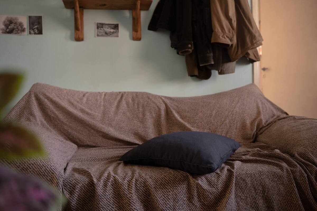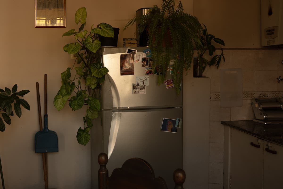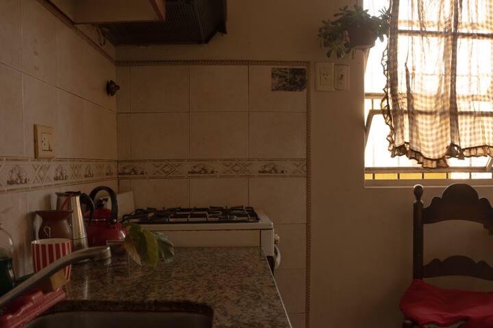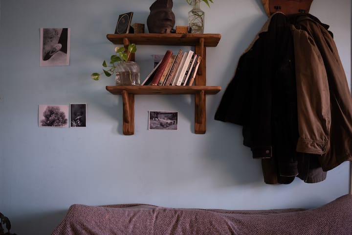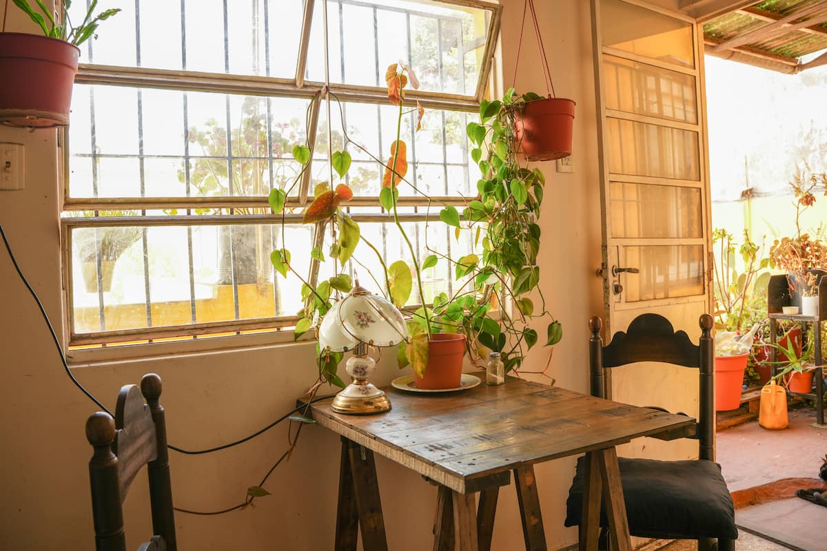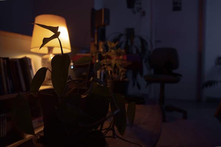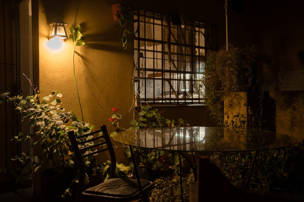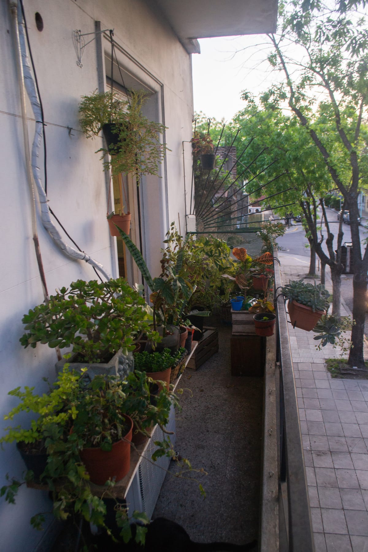 Habitación en PH de 3 ambientes en Nueva Pompeya, en 1er piso, con patio y balcón. El espacio se integra a un departamento compartido con baño, living, cocina, terraza y áreas comunes. La habitación incluye separador tipo biblioteca con placard, ventilador, escritorio, mesa, lámpara y cama de 2 plazas (1,40x1,90), con llave propia.