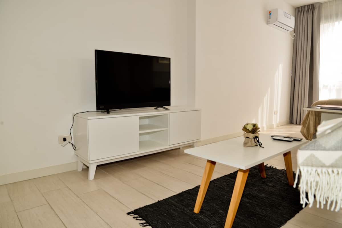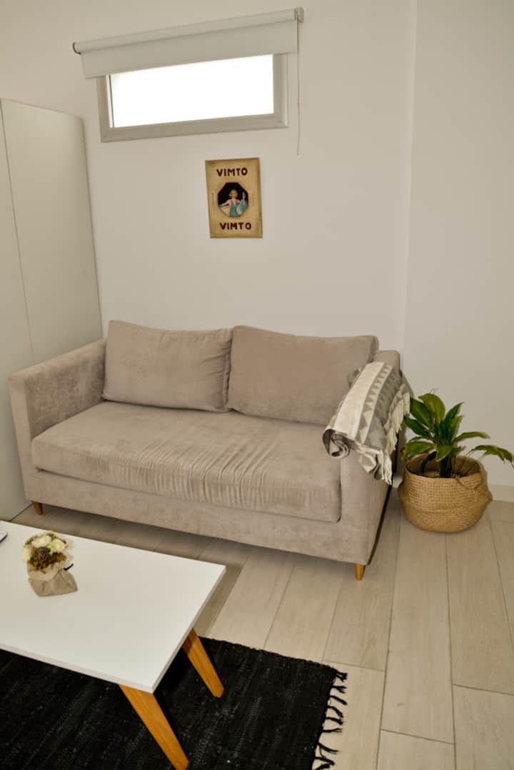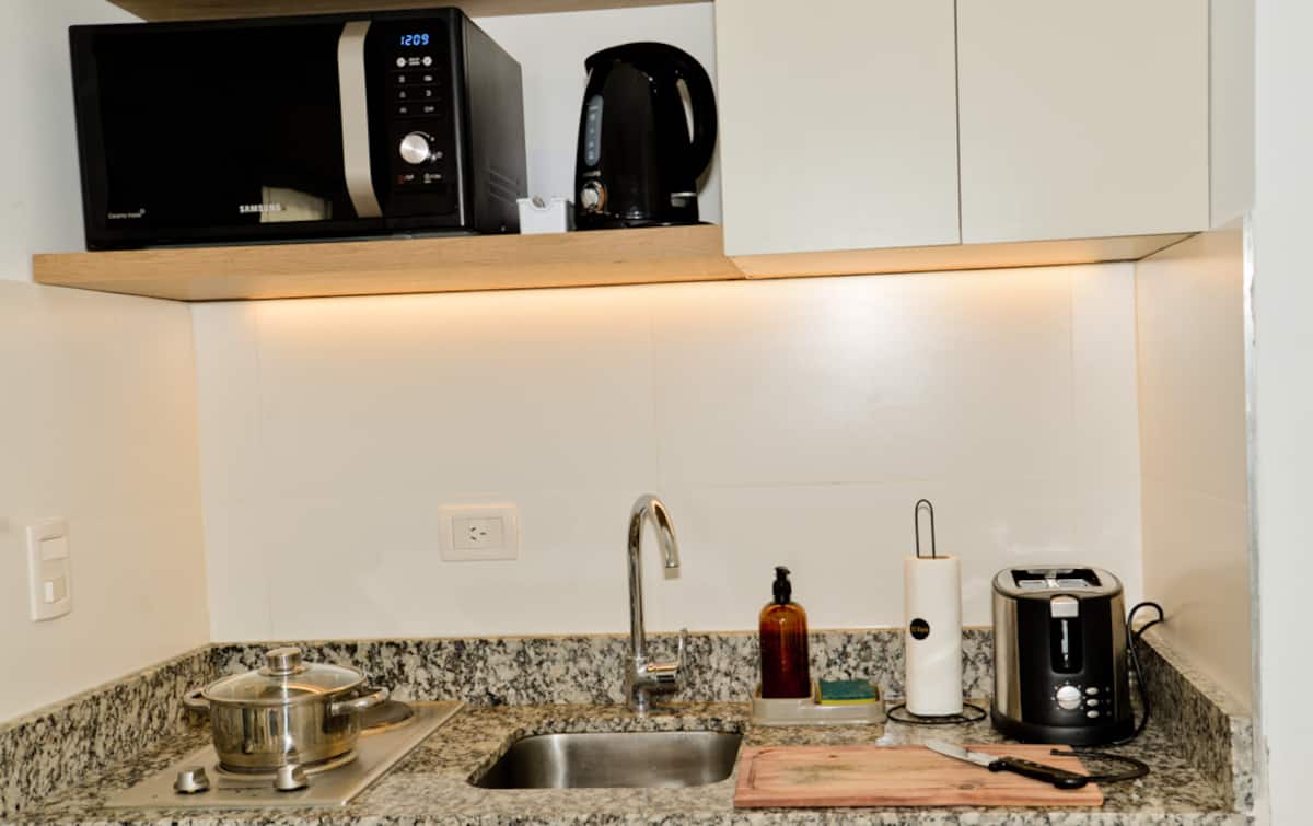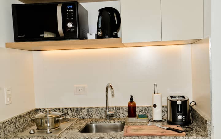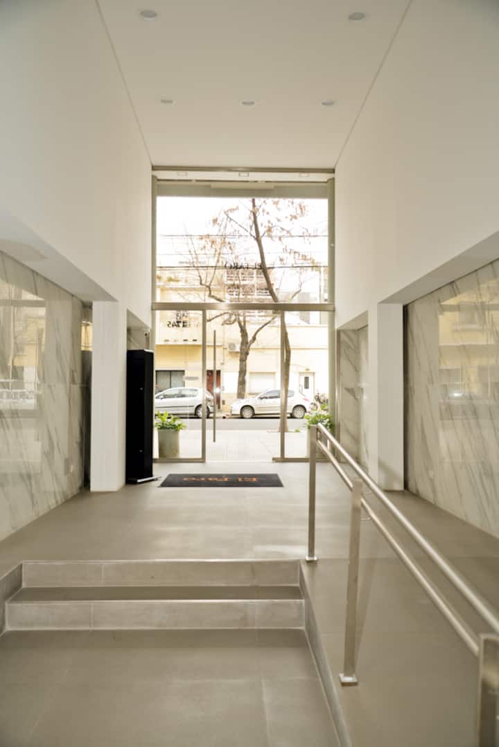Departamento monoambiente de 1 dormitorio y balcón en Núñez, ubicado sobre Av. Congreso, a 2 cuadras de Av. Libertador. Cuenta con cochera cubierta con espacio de estacionamiento y acceso a una terraza en el 7° piso. Incluye Smart TV con Netflix, WiFi de 300 megabytes, sofá, heladera, cocina con 2 hornallas, microondas grill y vajilla completa, además de ropa de cama y toallas.