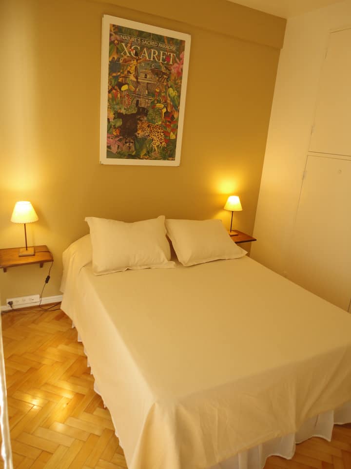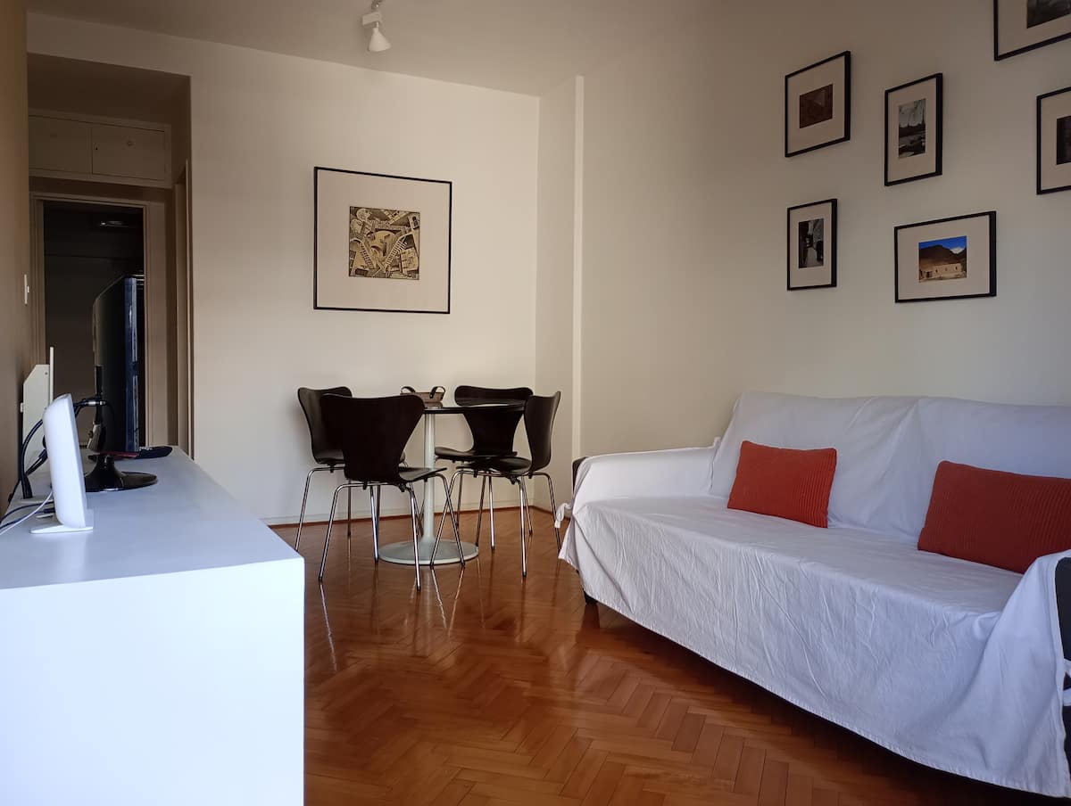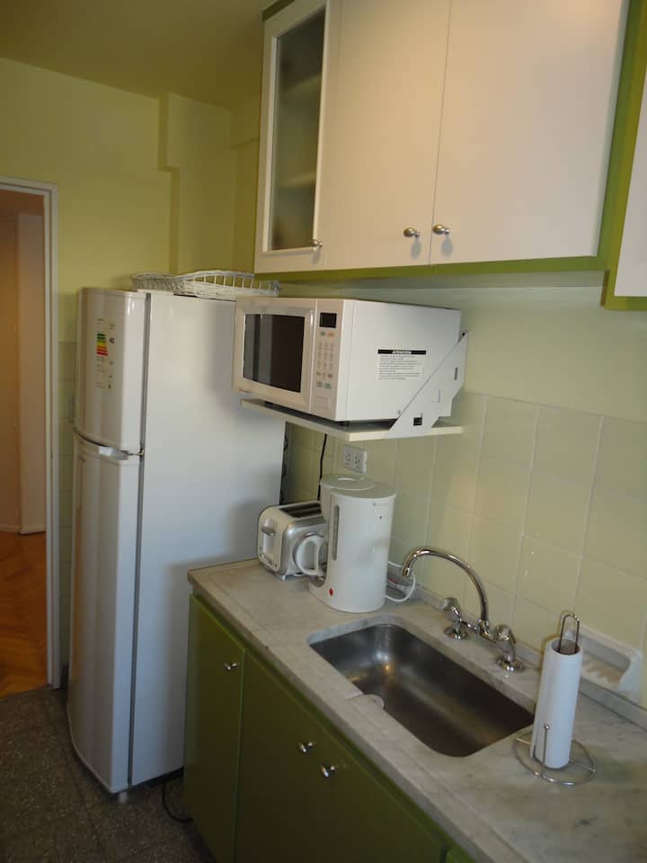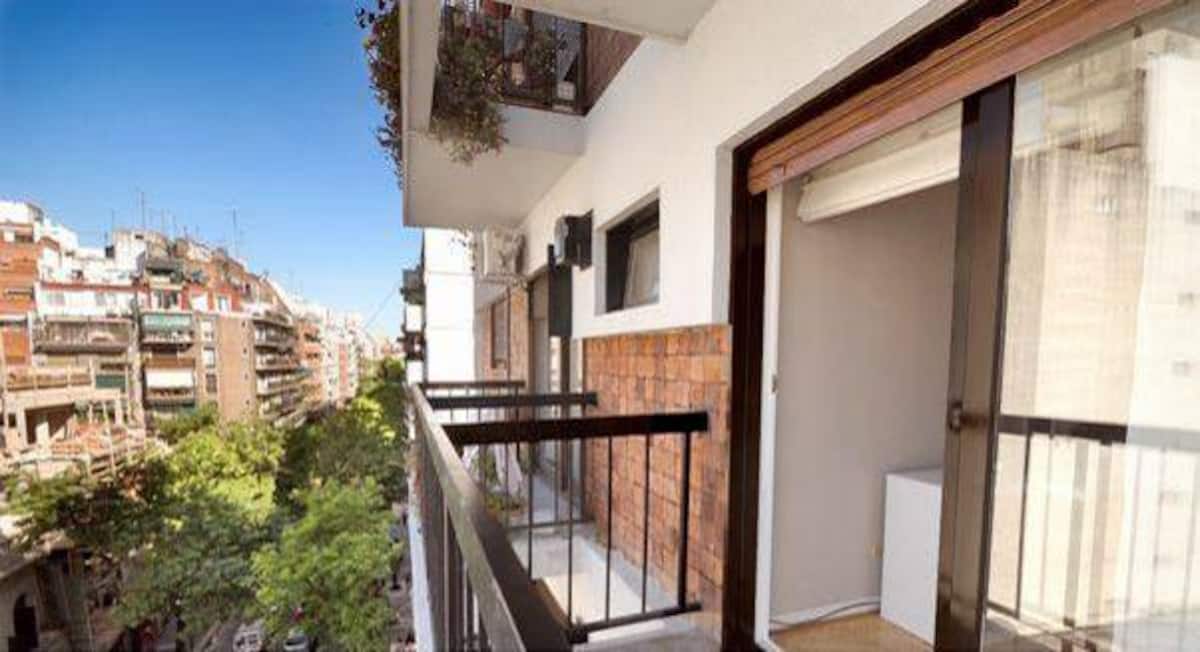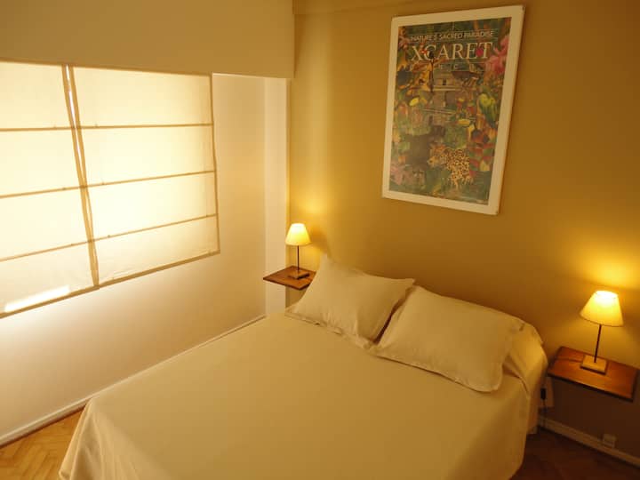Departamento de 2 ambientes en Palermo. Cuenta con balcón y vista abierta. Incluye cocina, living-comedor y dormitorio, WiFi 300 Mb y TV por cable, además de lavarropas y aire acondicionado y calefacción en cada ambiente.