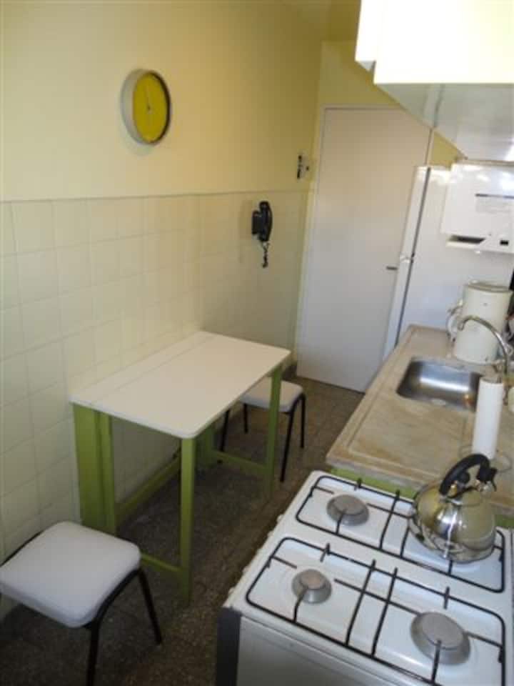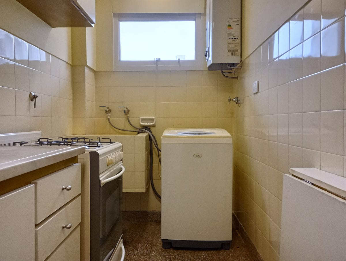 Ascensor, lavarropas, supermercado cercano, dormitorio silencioso.