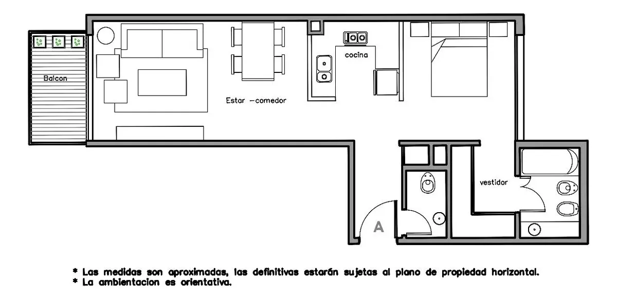 Departamento de 2 ambientes de 53 m² en Palermo Soho, con balcón al frente. El dormitorio cuenta con vestidor y baño en suite. Tiene cocina americana con barra pasa platos, espacio para heladera grande e instalación para lavarropas, estar-comedor y toilette de recepción. Dispone de 2 splits frío-calor y tres ascensores; el edificio ofrece piscina, yacuzzi, solarium, SUM con parrilla cubierta, laundry y gimnasio.