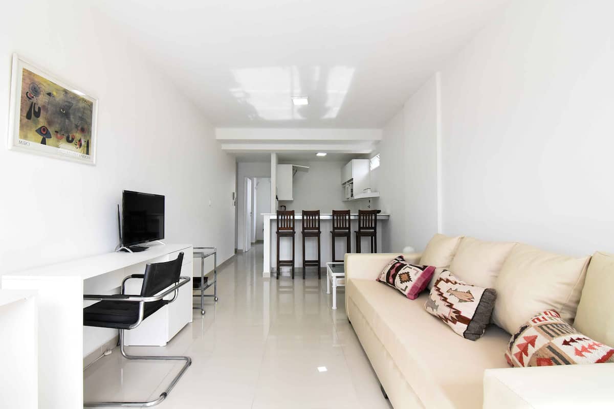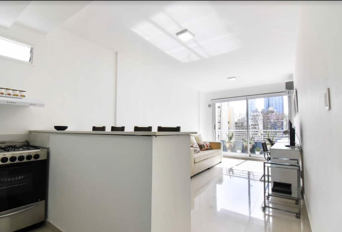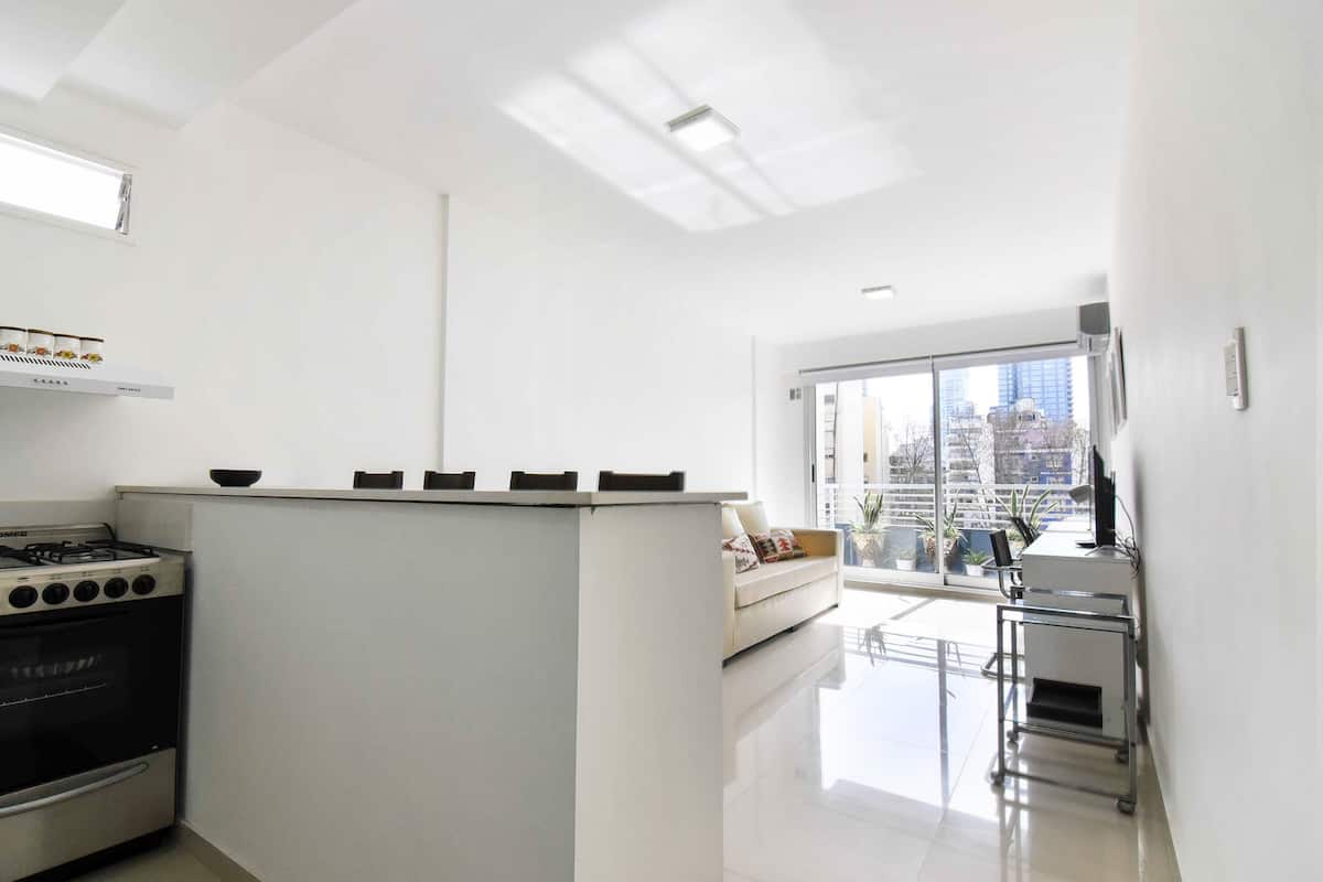 Departamento en Palermo Soho, orientado a estancias con ingreso antes del mediodía y egreso hasta las 10:00. No se permiten fiestas ni reuniones. Para completar la reserva se requiere documentación de cada huésped y confirmación de los horarios de check-in y check-out, con correspondencia entre los datos del perfil y la identificación. El ingreso o egreso fuera de horario tiene un recargo de 30 USD. Para estadías de más de 15 días, incluye servicio de limpieza gratuito.