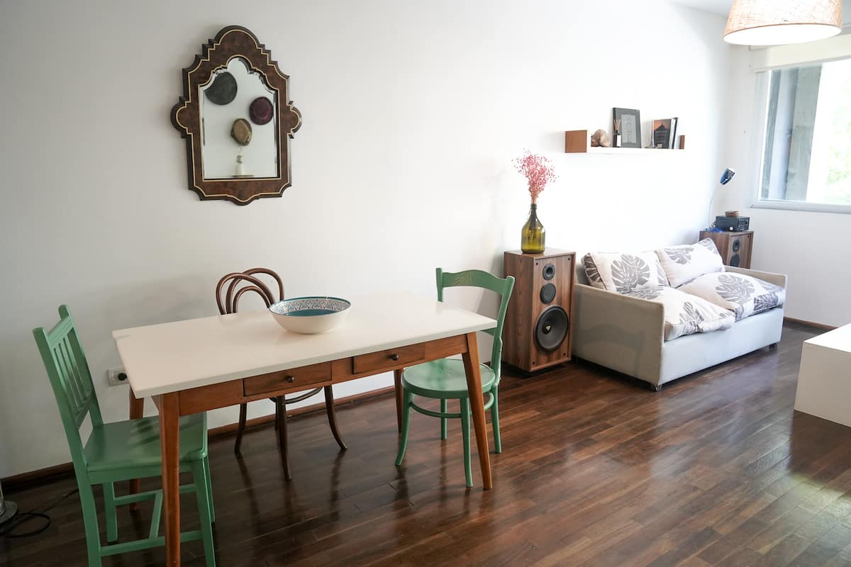 Departamento en Palermo Hollywood, apto para 2 huéspedes. Ubicación en el área con oferta de bares y restaurantes. A 5 minutos del Subte Línea D y con varias líneas de colectivos hacia distintos puntos de la ciudad. A 20 minutos caminando de los Bosques de Palermo.