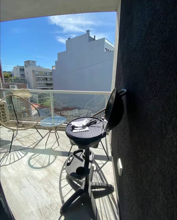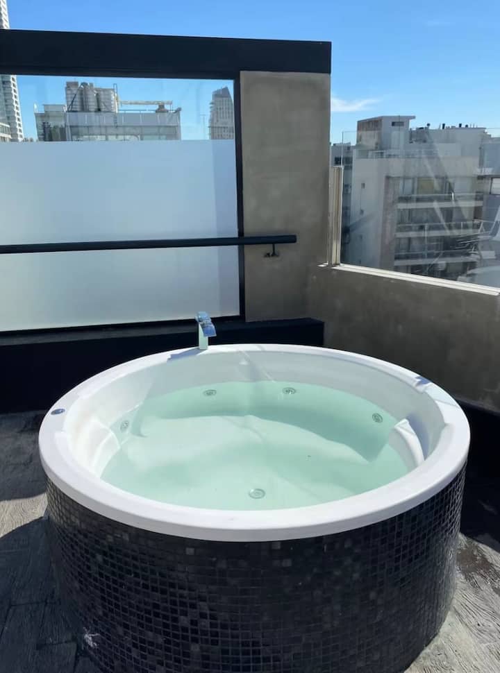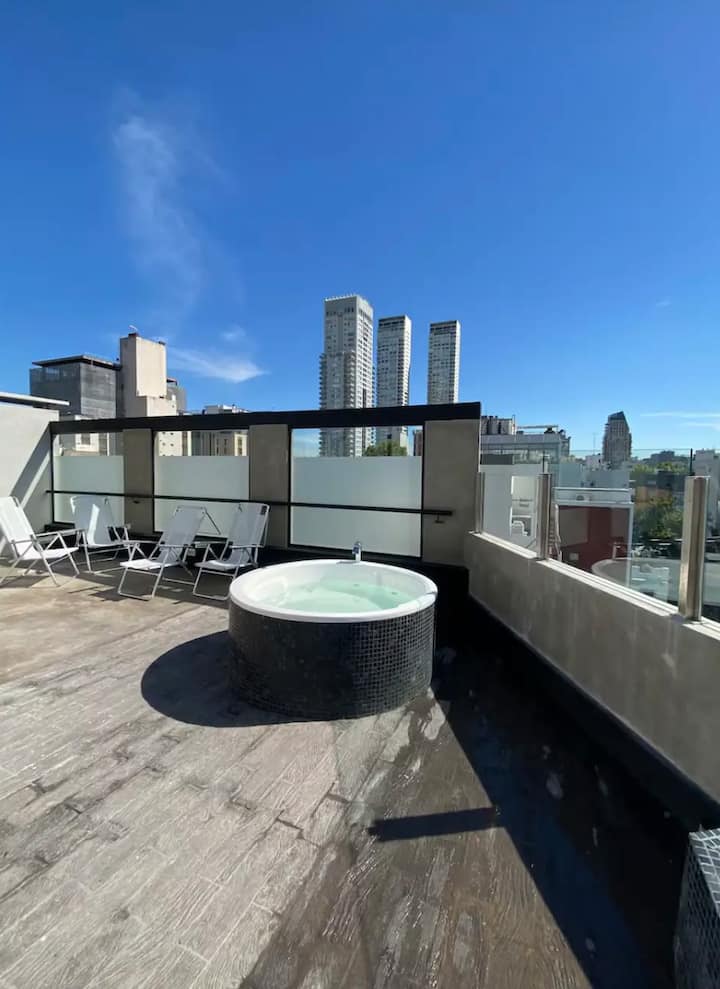 Departamento en Palermo Hollywood con 1 dormitorio. Se informa como muy luminoso, con vista abierta y sol durante el día. Cuenta con balcón, cocina totalmente eléctrica, parrilla y terraza con pileta, jacuzzi y sauna. Incluye TV smart con cable digital.