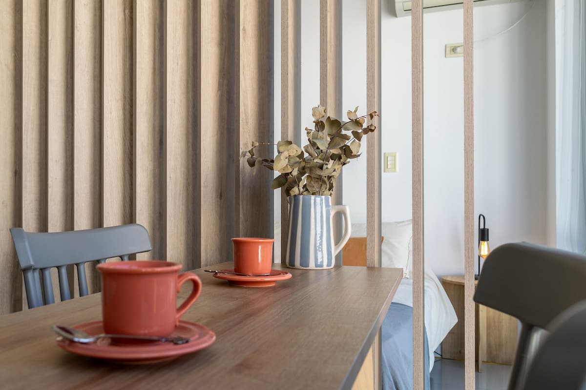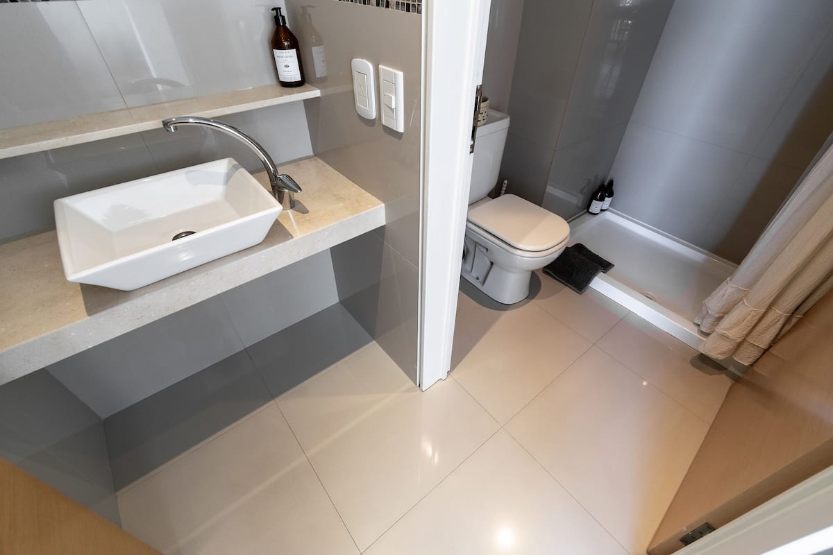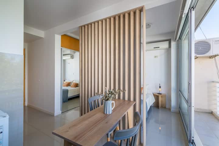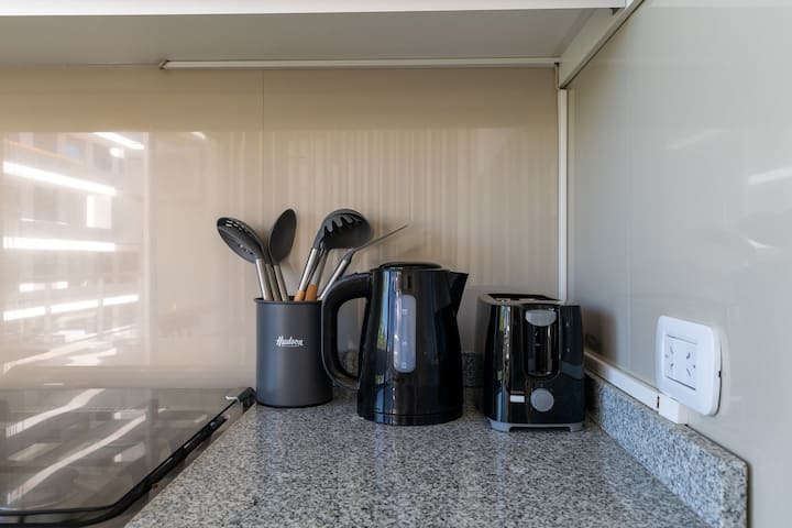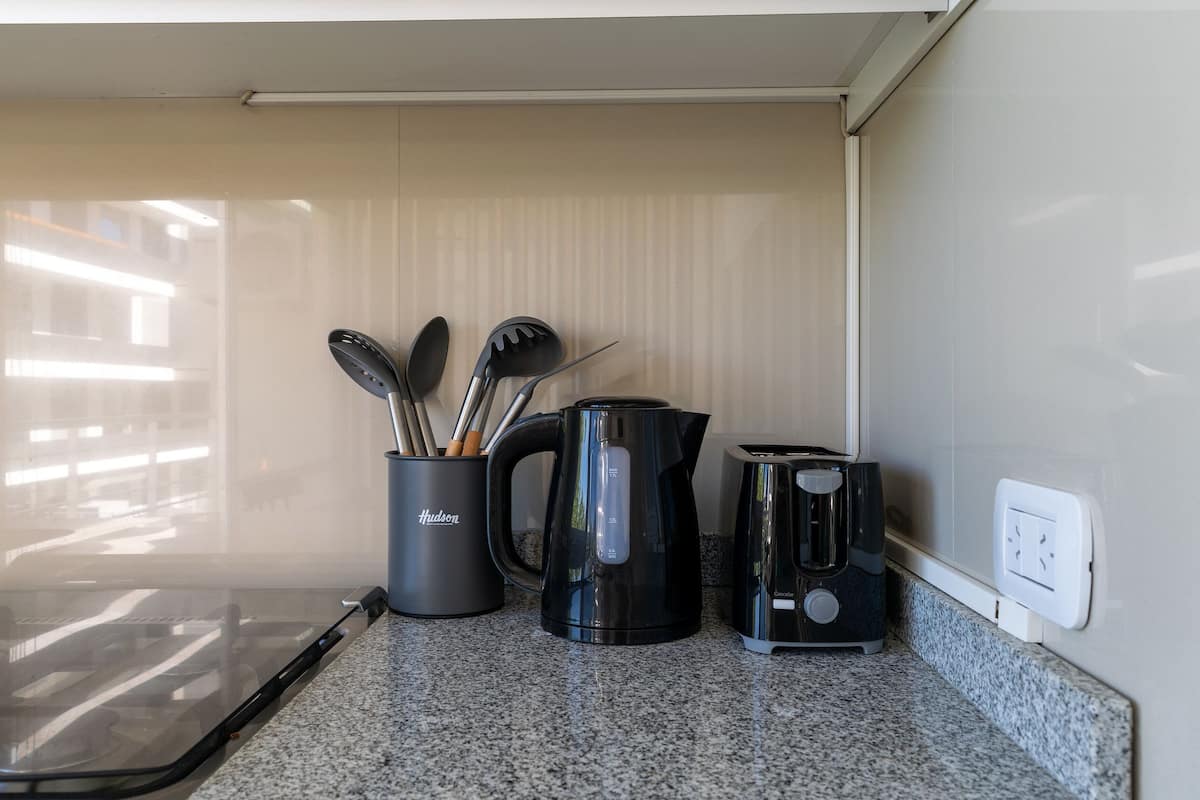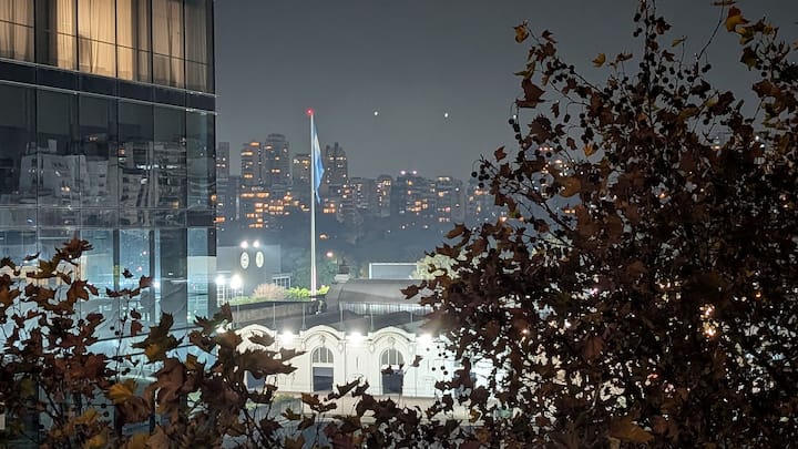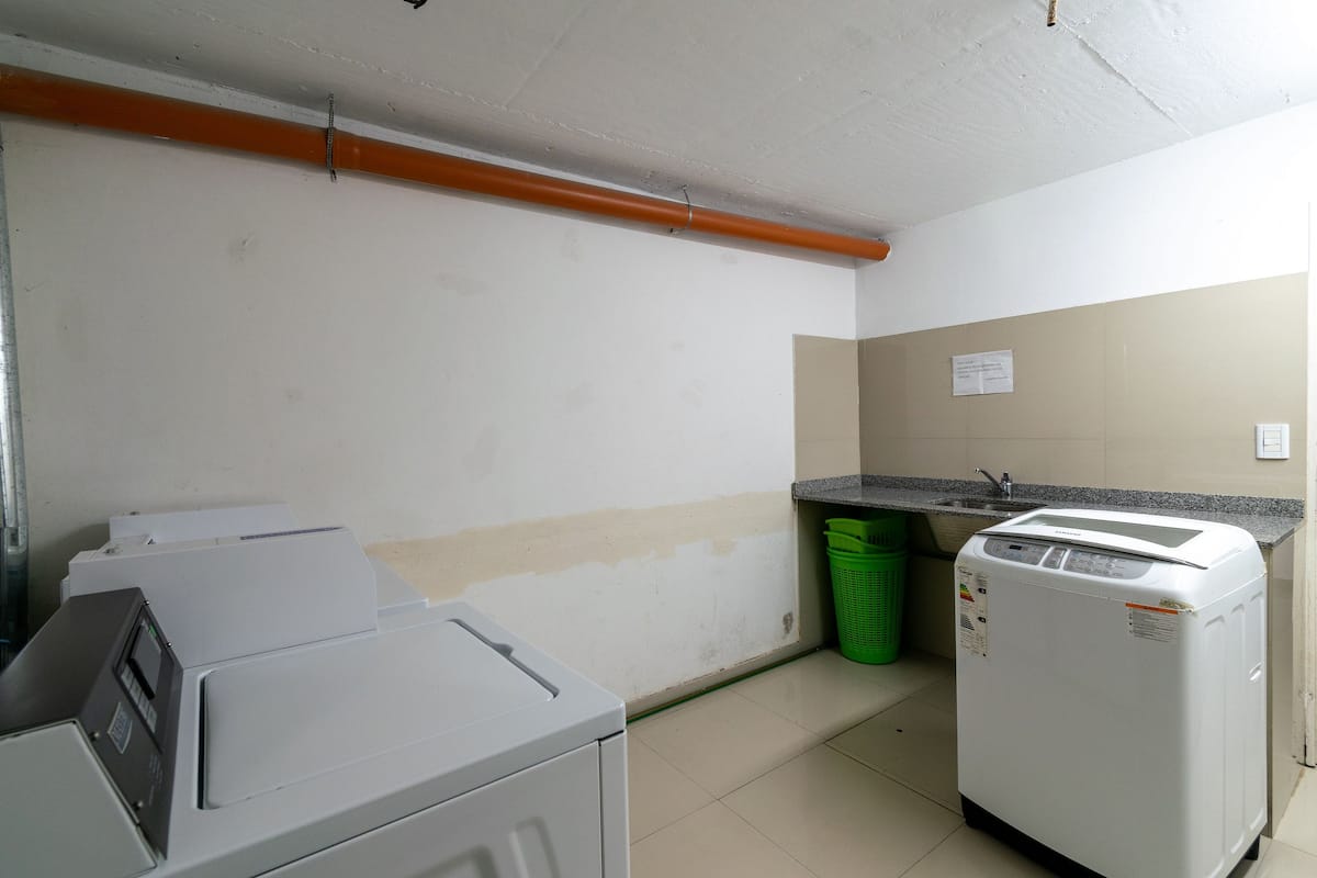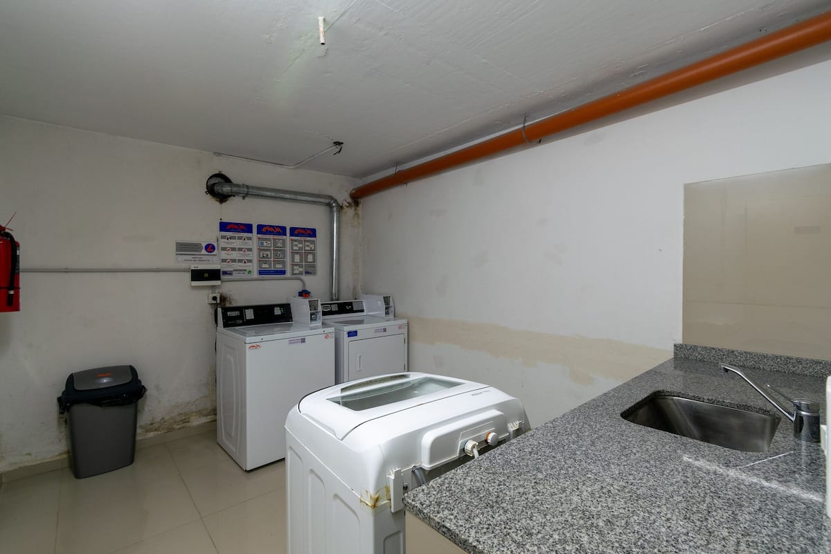 Monoambiente en Palermo, en el contrafrente o pulmón de manzana, al que se describe con balcón y vista verde. Totalmente equipado e incluye Wi‑Fi de 500 Mbps, Smart TV y aire acondicionado. La cocina cuenta con heladera bajo mesada, horno, microondas, pava eléctrica, tostadora y vajilla. El edificio tiene pileta (de diciembre a marzo), parrilla y zona de lavandería con lavarropas y secarropas, con acceso incluido en la estadía.