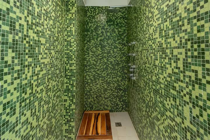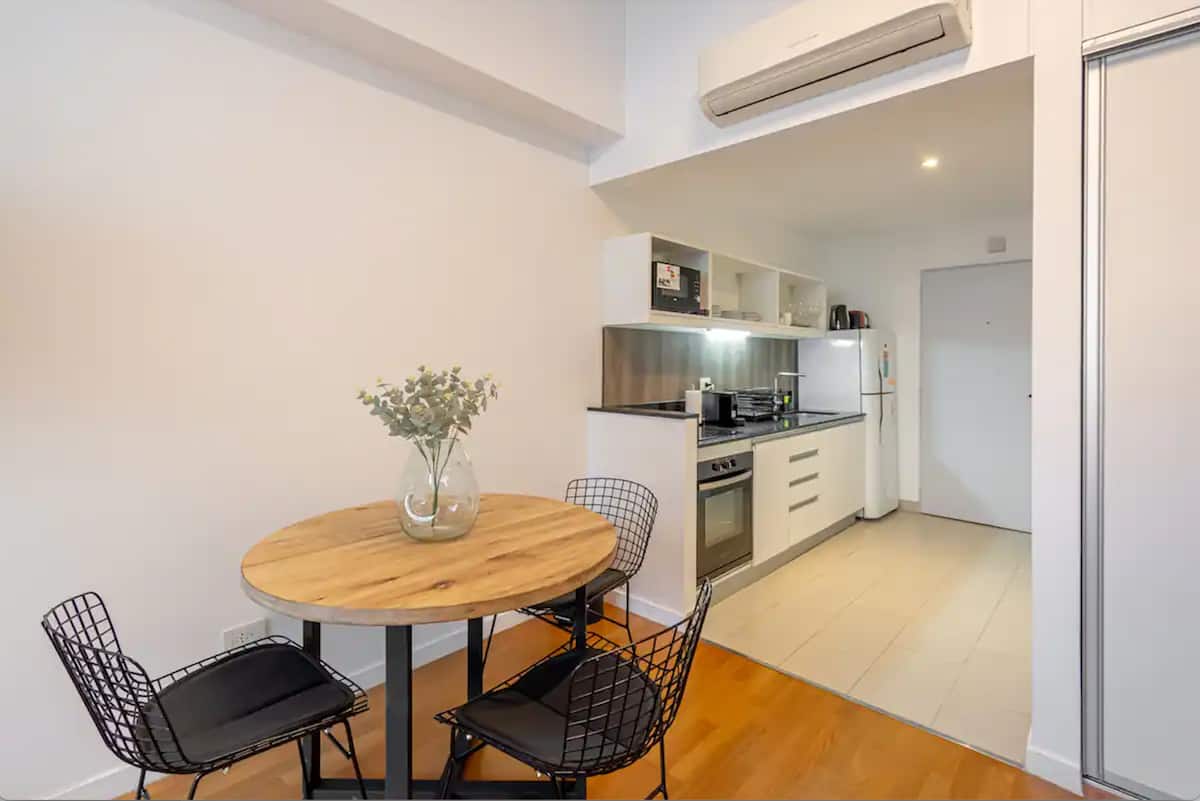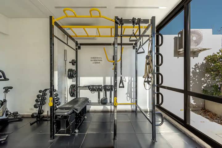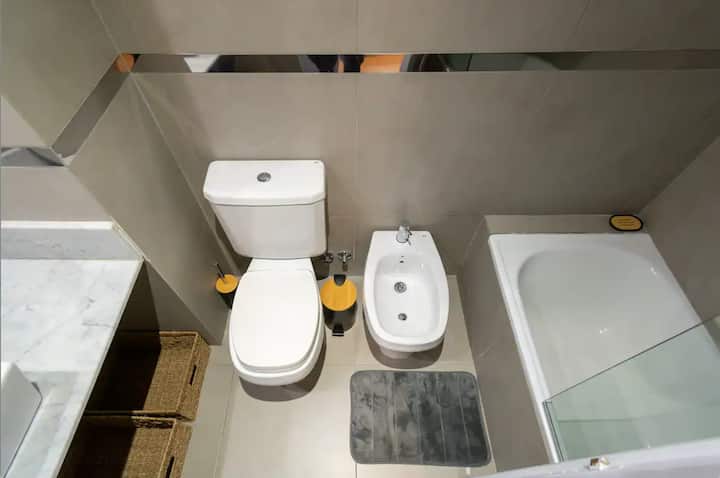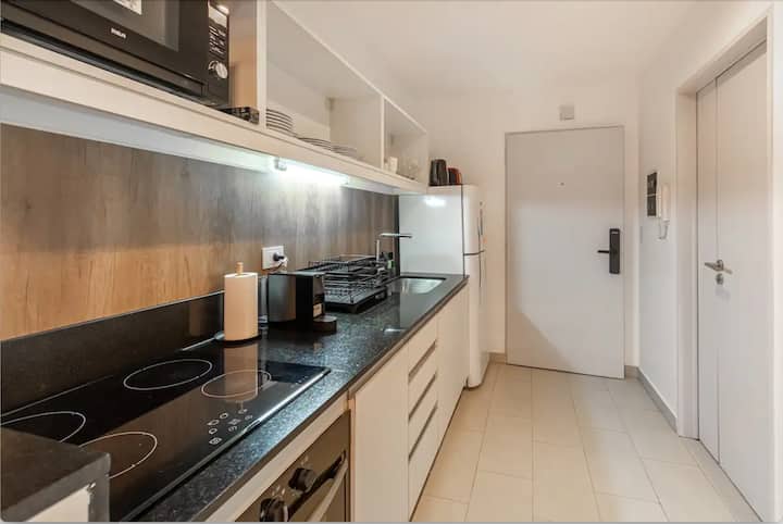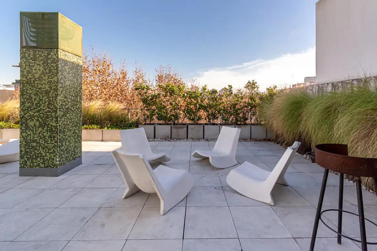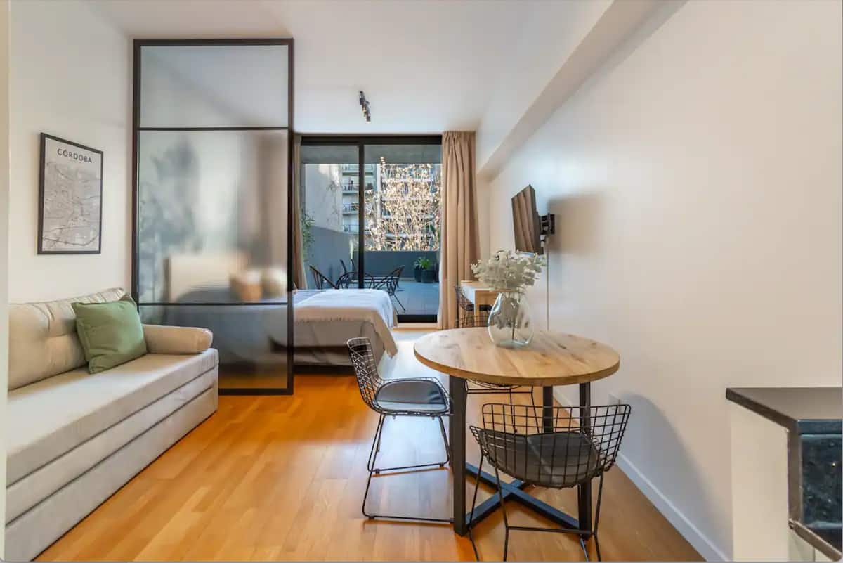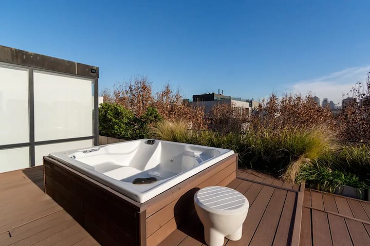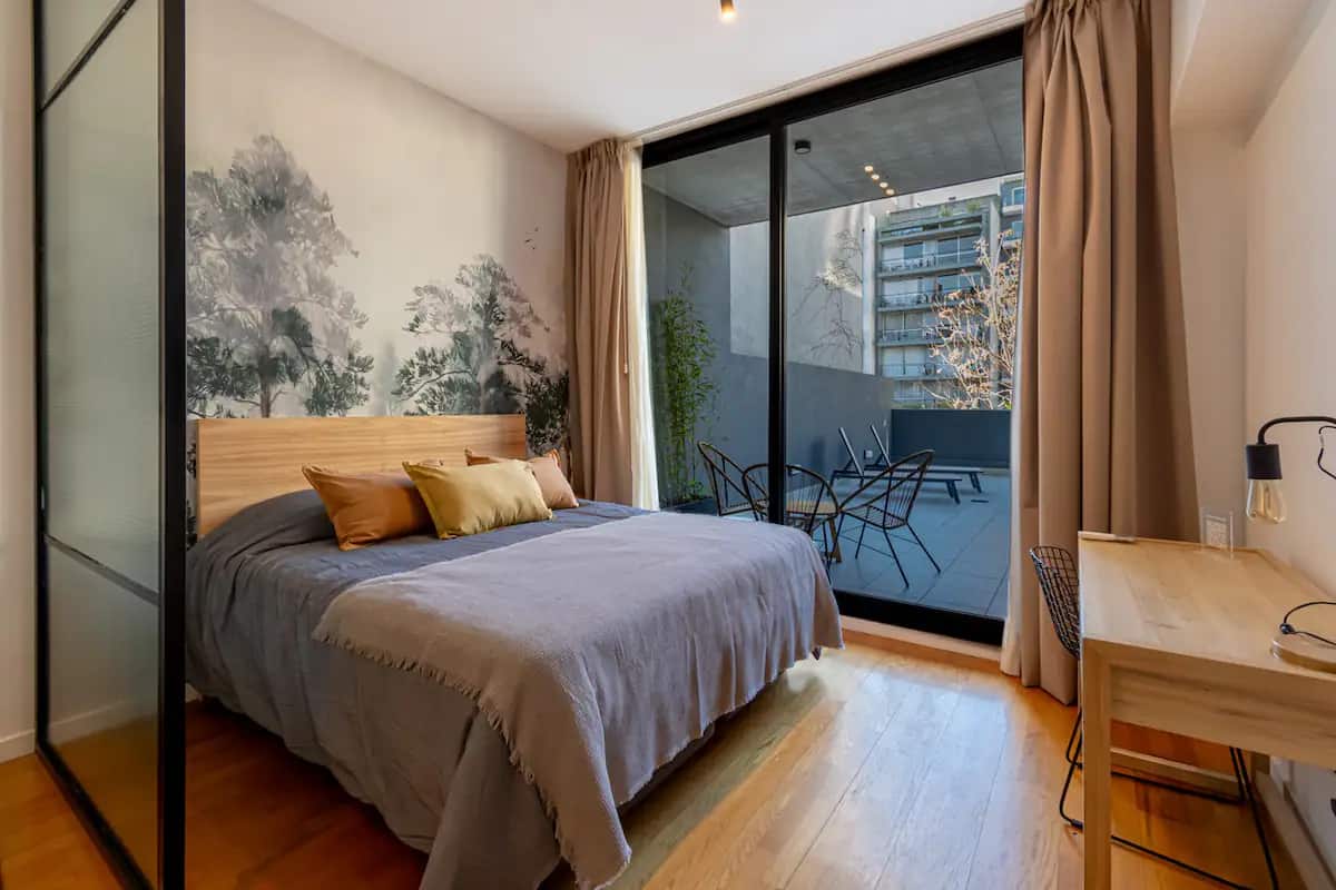 Monoambiente de 1 ambiente en Palermo, totalmente equipado. Cuenta con ventana amplia y patio privado con ducha. El edificio dispone de piscina, sauna, jacuzzi y gimnasio, con personal de seguridad 24 horas. Está a pocos bloques de Plaza Italia y La Rural, y a 3 cuadras del subte. No incluye plancha. Tiene cama plegable en sofá para un tercer huésped. No se permite el uso de la parrilla.