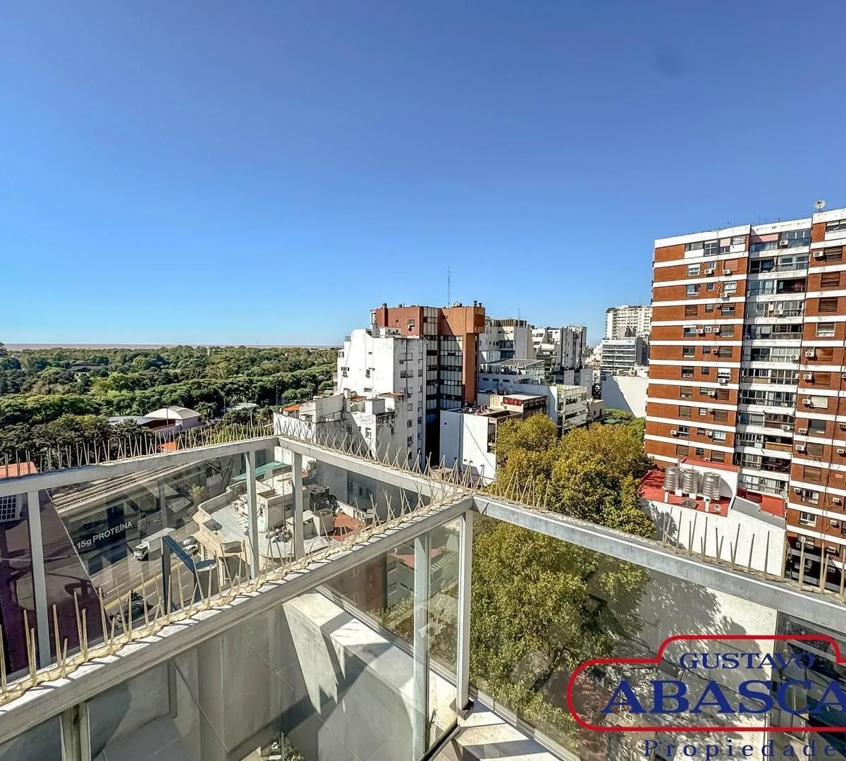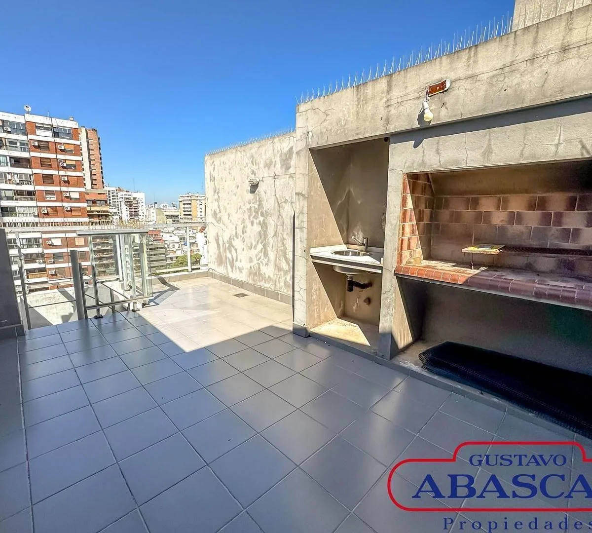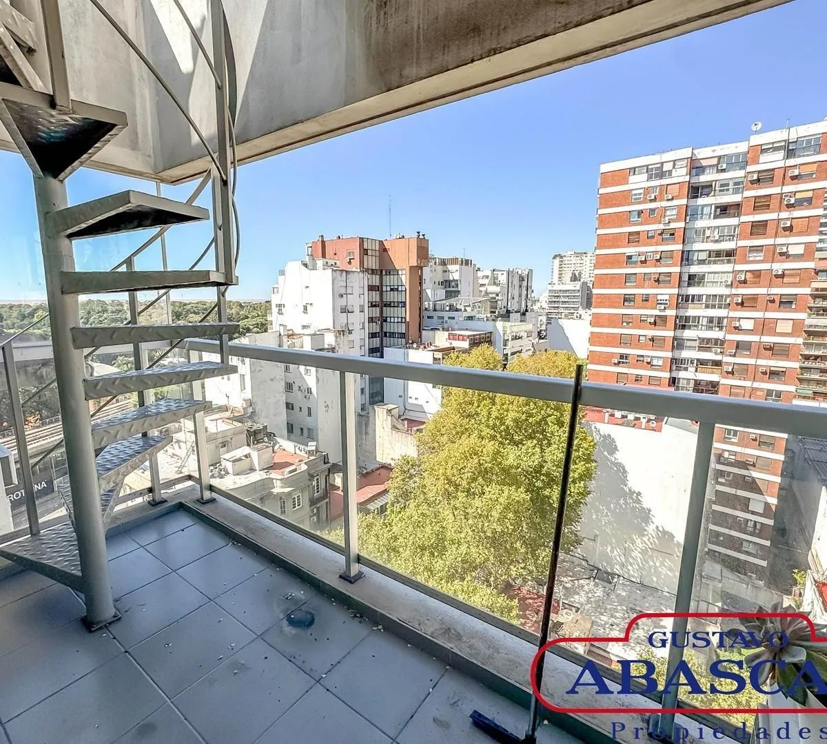 Monoambiente duplex de 1 baño completo con cocina integrada, balcón al frente y terraza propia. La terraza mide 6,10 x 3,30 m e incluye parrilla. Piso alto con vista abierta; el alquiler se ofrece sin amoblar. El edificio cuenta con amenities, pileta y laundry.