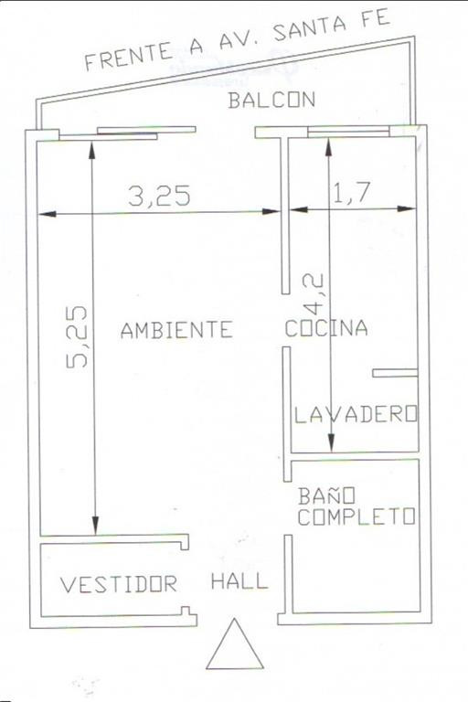 Monoambiente al frente con balcón en Palermo Hollywood