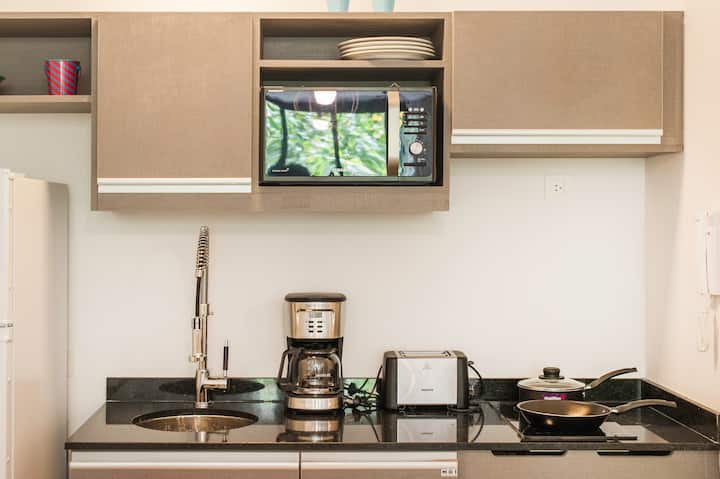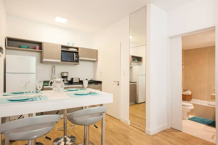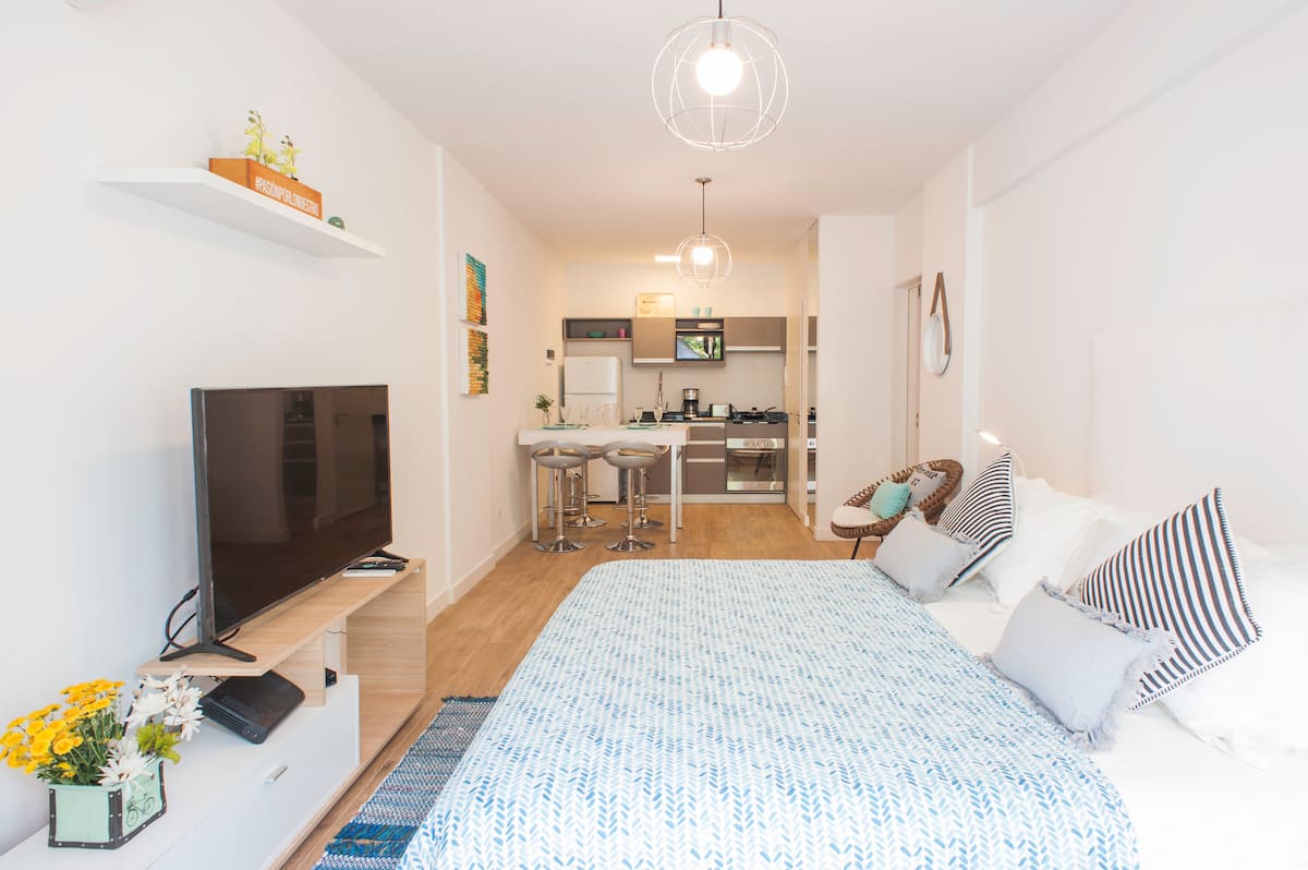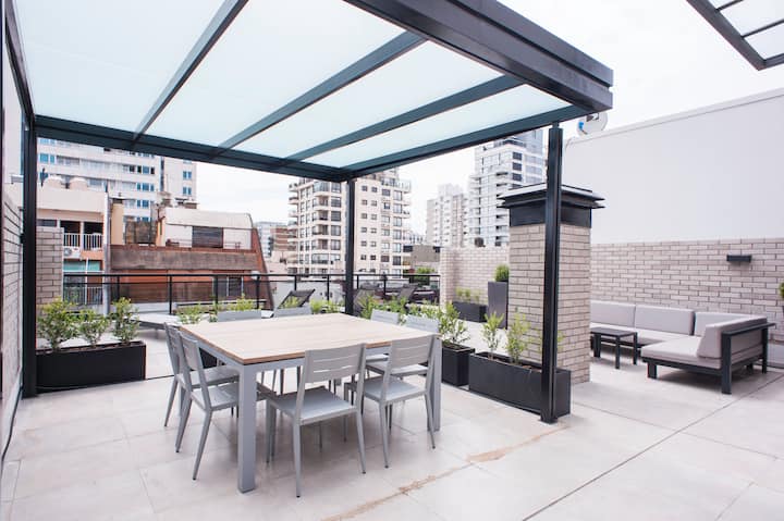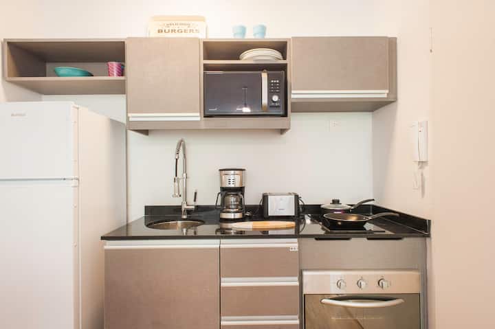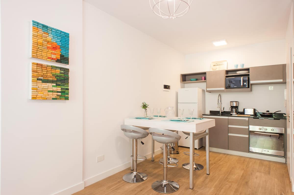 Departamento tipo estudio en Palermo Soho, Palermo. Cuenta con cocina completa, Wi‑Fi de 1000 MB y Smart TV de 50 pulgadas. El acceso al departamento es con código y ofrece self check-in en forma presencial o autónoma, según disponibilidad. El edificio tiene solárium y laundry; la parrilla está disponible solo para estadías de más de 29 días. Parking opcional sujeto a disponibilidad, solo para autos.