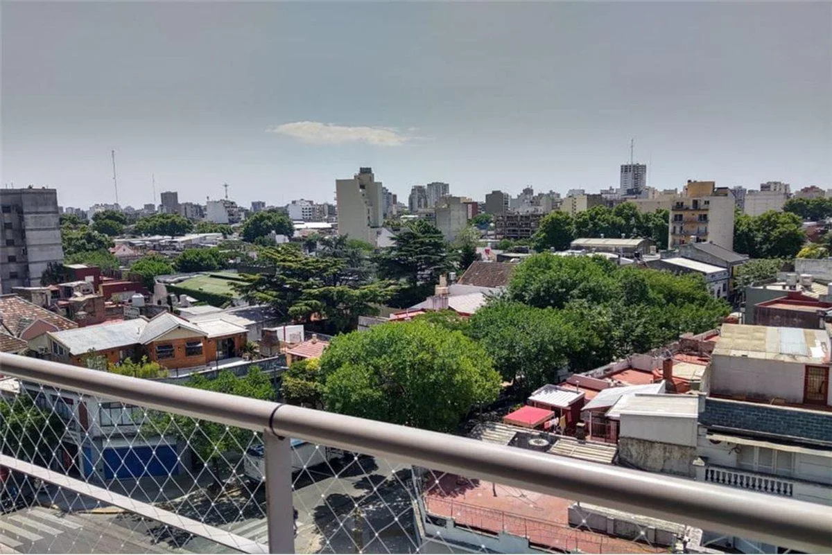 Departamento de 2 ambientes de 6° piso con balcón al frente y vista abierta, en Parque Avellaneda. Living-comedor, cocina semi integrada con muebles de guardado y espacio para lavarropas, baño con bañera y ventilación natural, habitación principal con ventanal y salida al balcón. Placard lateral, terraza compartida. Expensas: $185.000 aprox.