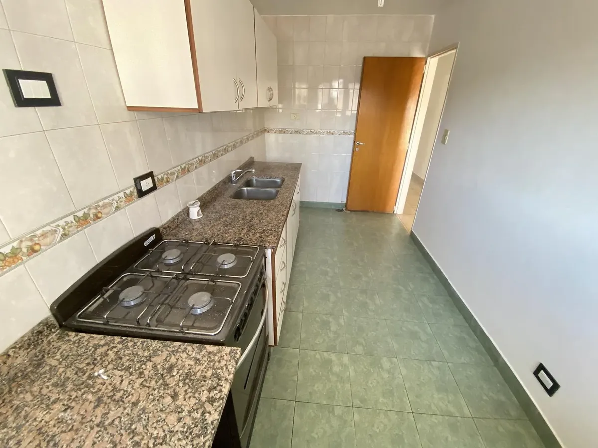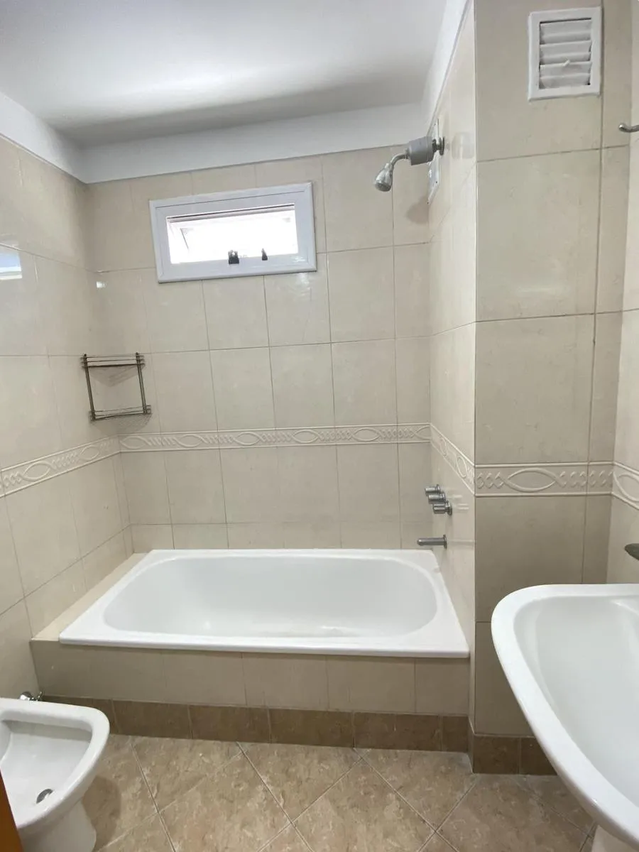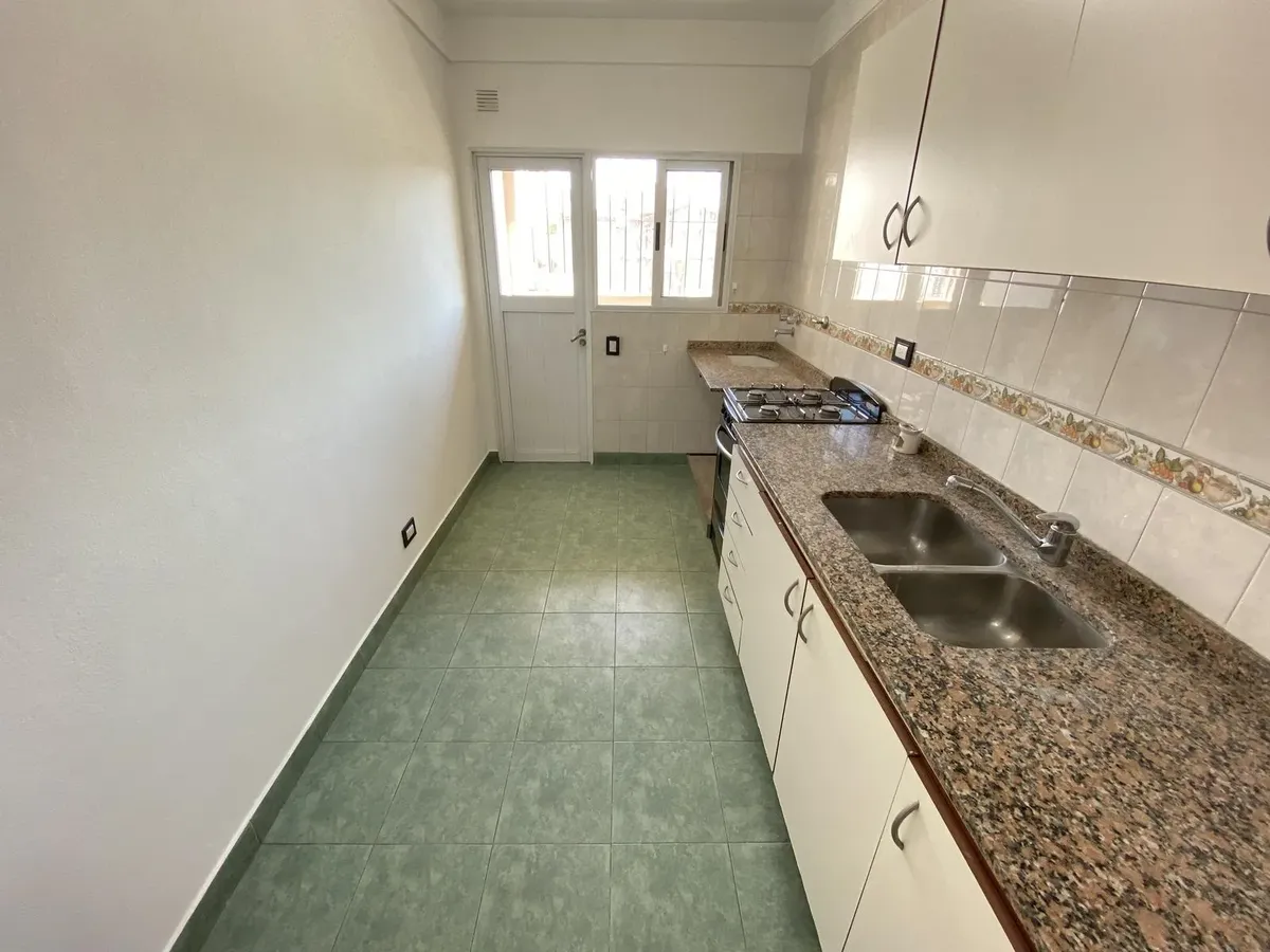 Departamento de 2 ambientes con 2 balcones y 2 baños en Parque Chacabuco. Cuenta con living comedor con pico de gas y salida a un balcón, cocina separada con horno a gas y lavadero separado con conexión para lavarropas y calefón. El dormitorio está al contrafrente, con persiana de aluminio, placard completo y balcón con vista abierta y sol del norte. Se alquila con contrato a 2 años y ajuste trimestral por IPC; requiere 1 mes de adelanto y 1 mes de depósito, y garantías en Capital con garante, c