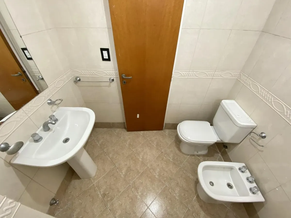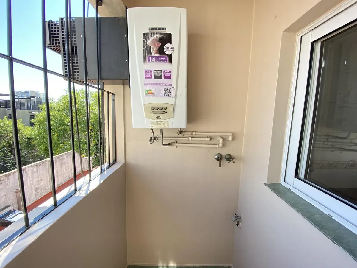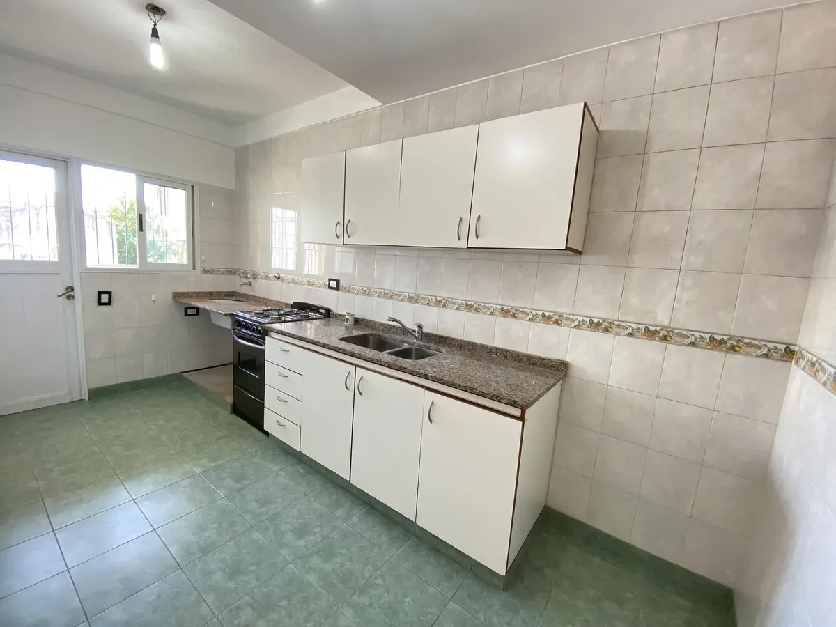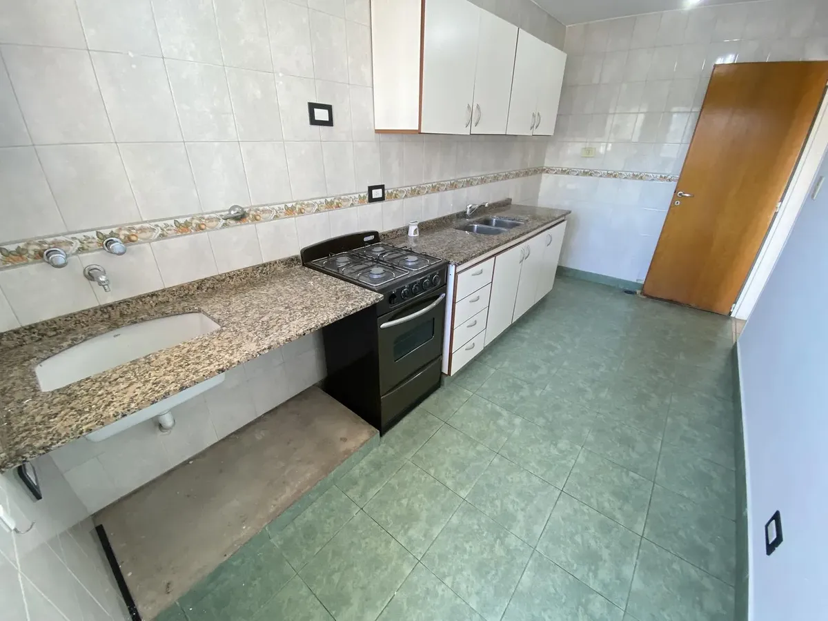 Departamento de 2 ambientes con 2 balcones y 2 baños en Parque Chacabuco. Cuenta con living comedor con pico de gas y salida a un balcón, cocina separada con horno a gas y lavadero separado con conexión para lavarropas y calefón. El dormitorio está al contrafrente, con persiana de aluminio, placard completo y balcón con vista abierta y sol del norte. Se alquila con contrato a 2 años y ajuste trimestral por IPC; requiere 1 mes de adelanto y 1 mes de depósito, y garantías en Capital con garante, c