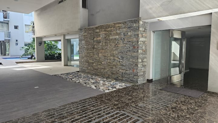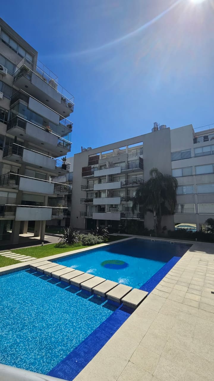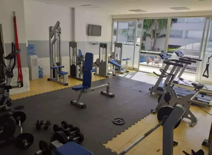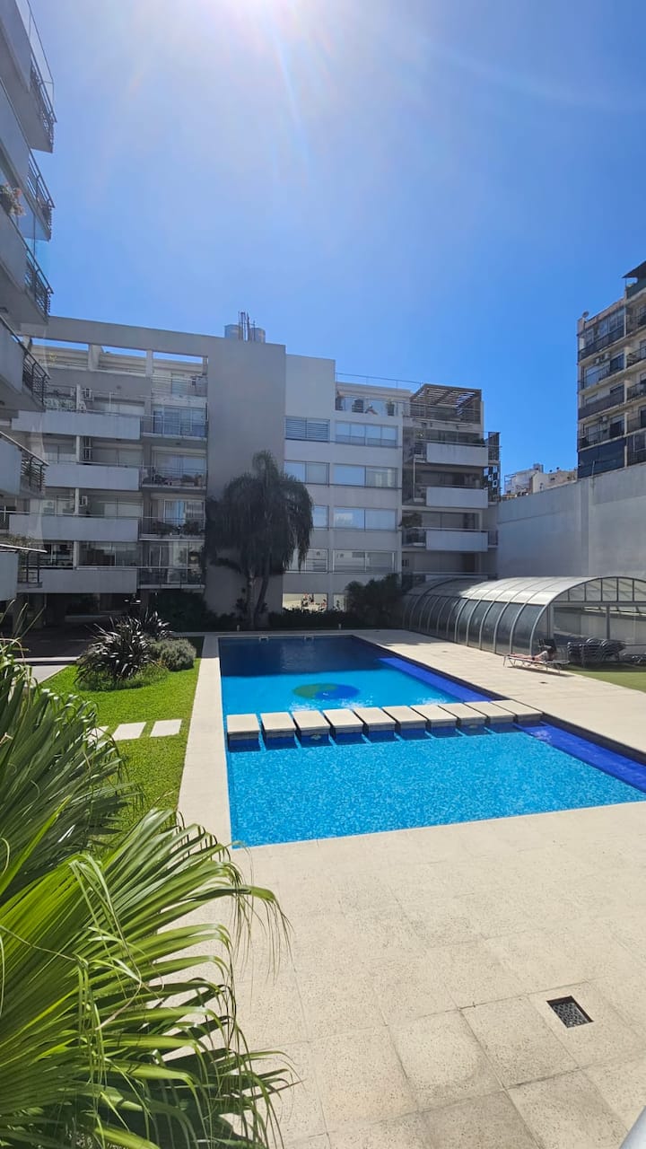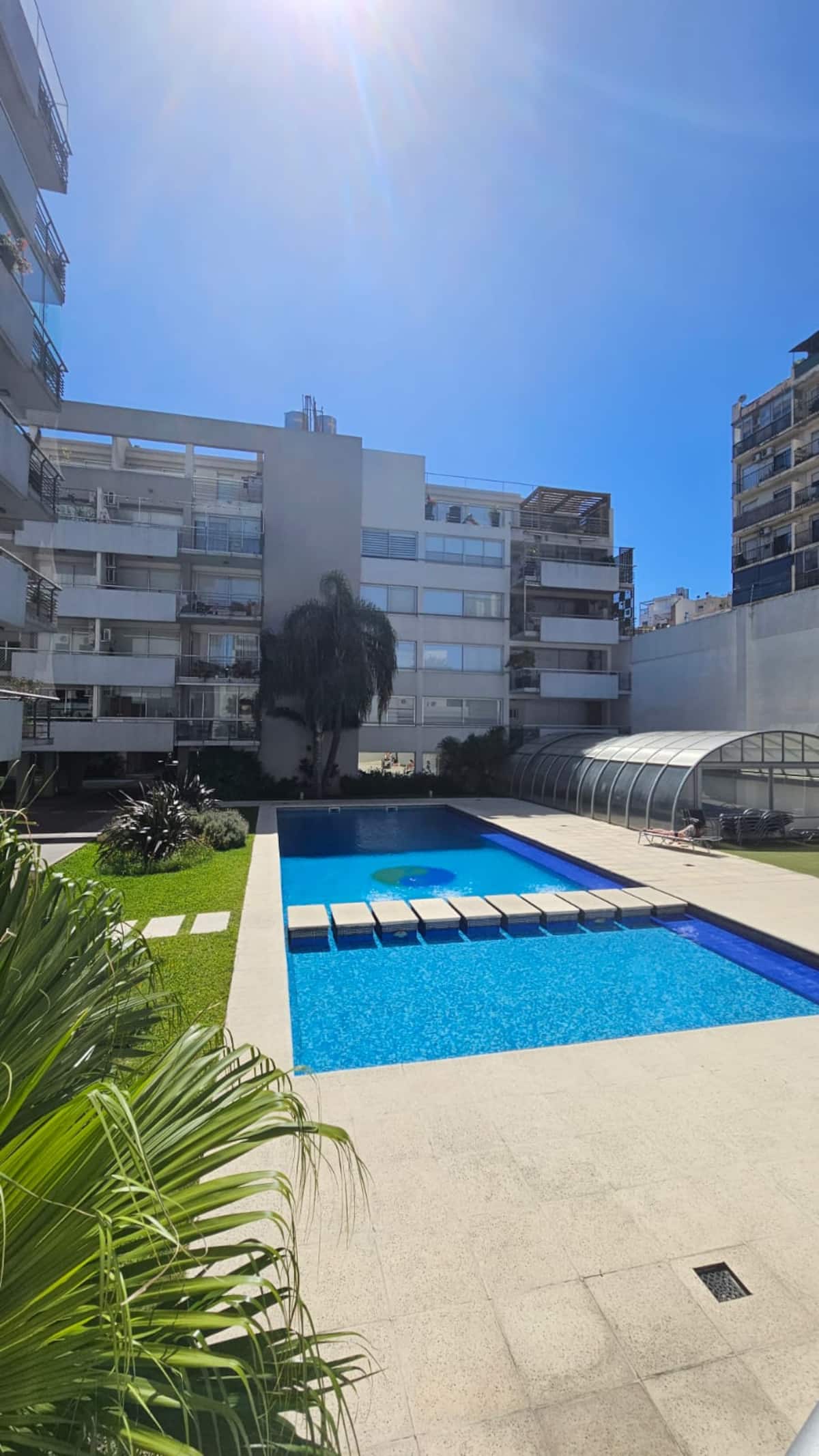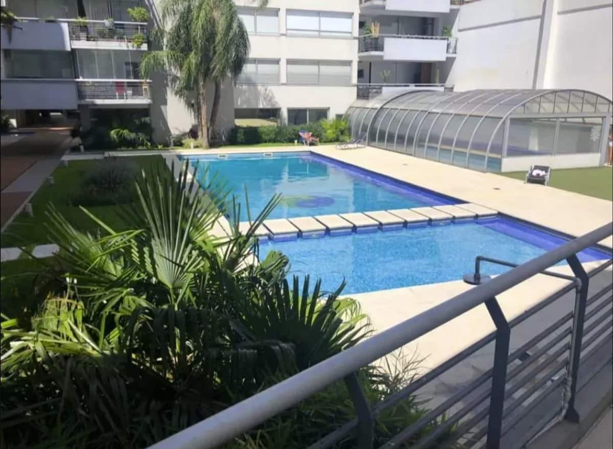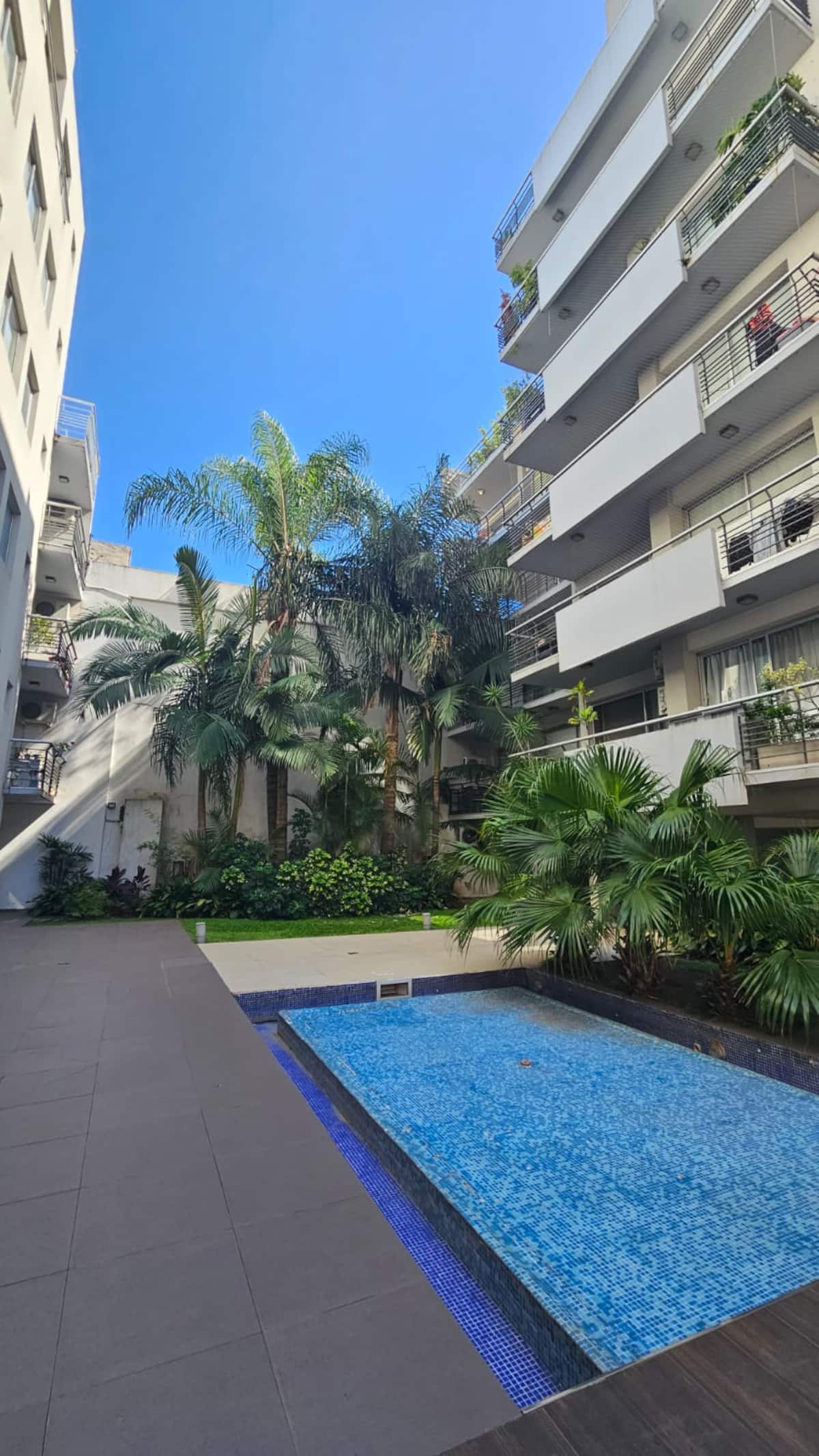 Departamento de 2 ambientes de 60 m² en Parque Chacabuco. Cuenta con 1 dormitorio con cama doble, baño en suite y vestidor, además de un sofá cama de 1 plaza. Incluye living con cocina integrada, 1 baño y balcón con vista. El edificio tiene seguridad 24 horas, pileta exterior en planta baja y pileta cubierta climatizada en planta baja, gimnasio y SUM con parrilla con reserva previa.