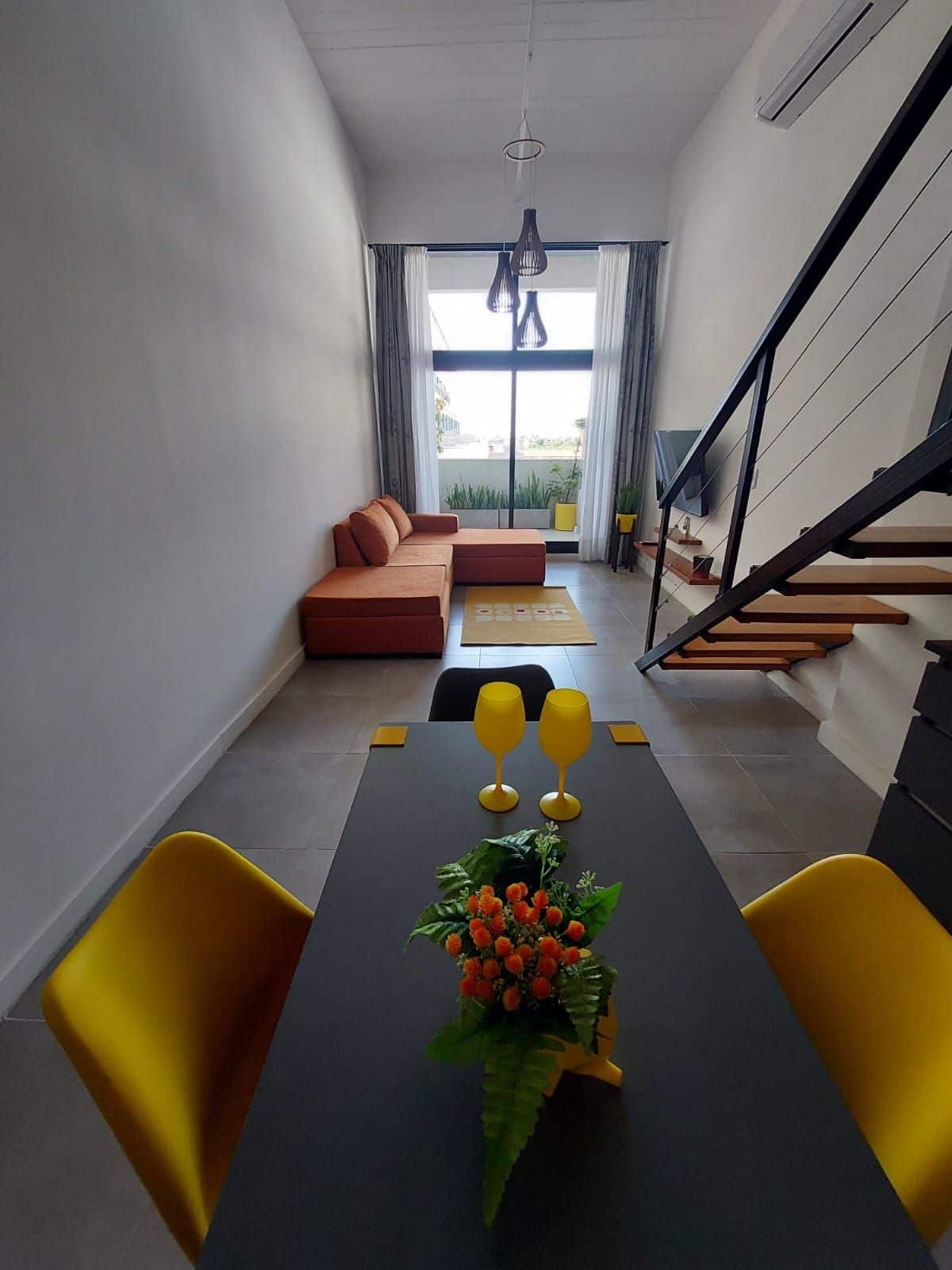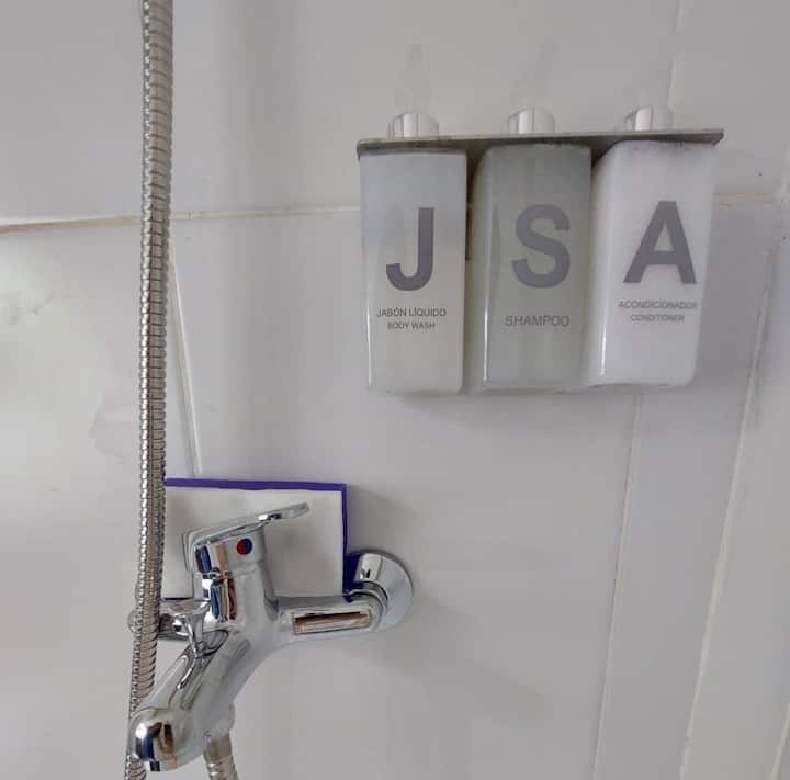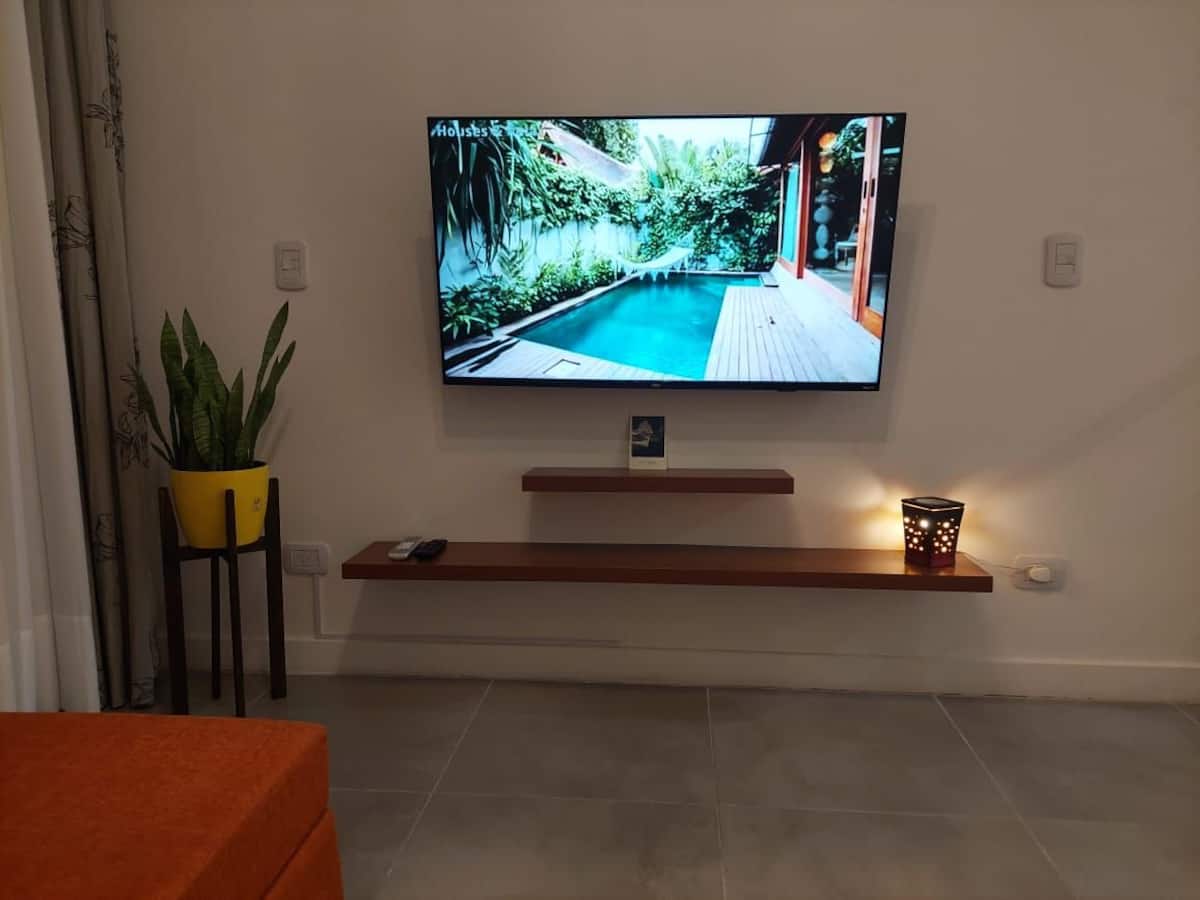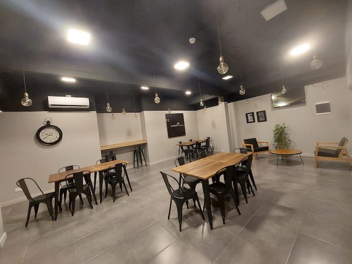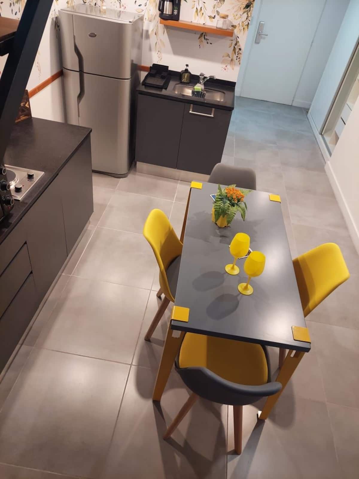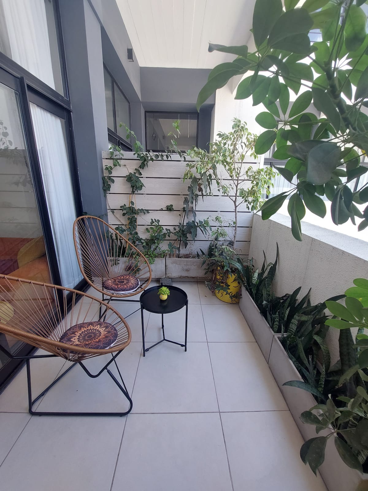 Departamento en 2 niveles con 1 dormitorio y 2 baños completos. En la planta alta cuenta con dormitorio con cama doble y baño privado, y un sector de oficina con escritorio y silla ergonómica. En la planta baja hay living con TV de 50", cocina completa (heladera con freezer, cocina eléctrica con horno, microondas y pava eléctrica) y balcón privado con mesa y sillones. Incluye conexión WiFi, aire acondicionado con uso durante todo el año, seguridad 24 horas, grupo electrógeno y espacios de cowork