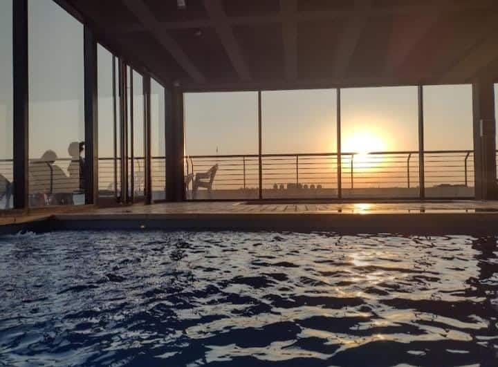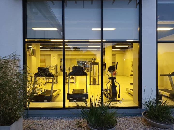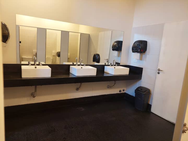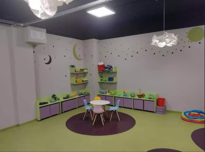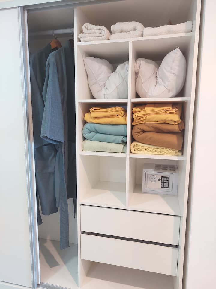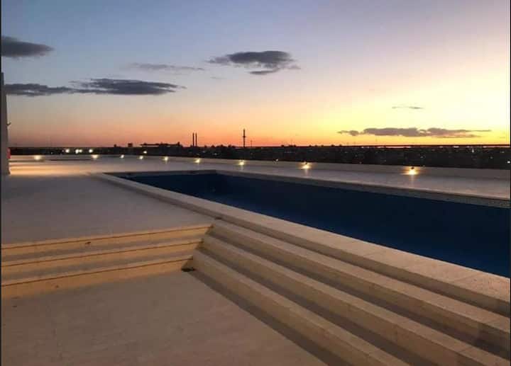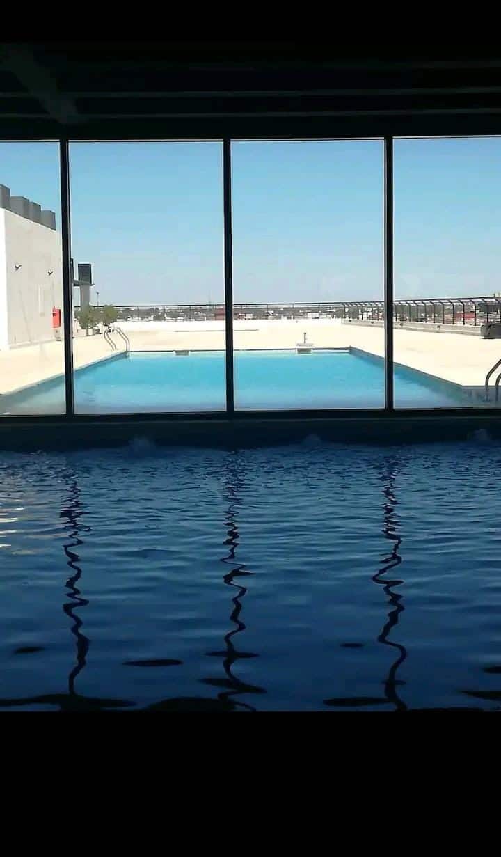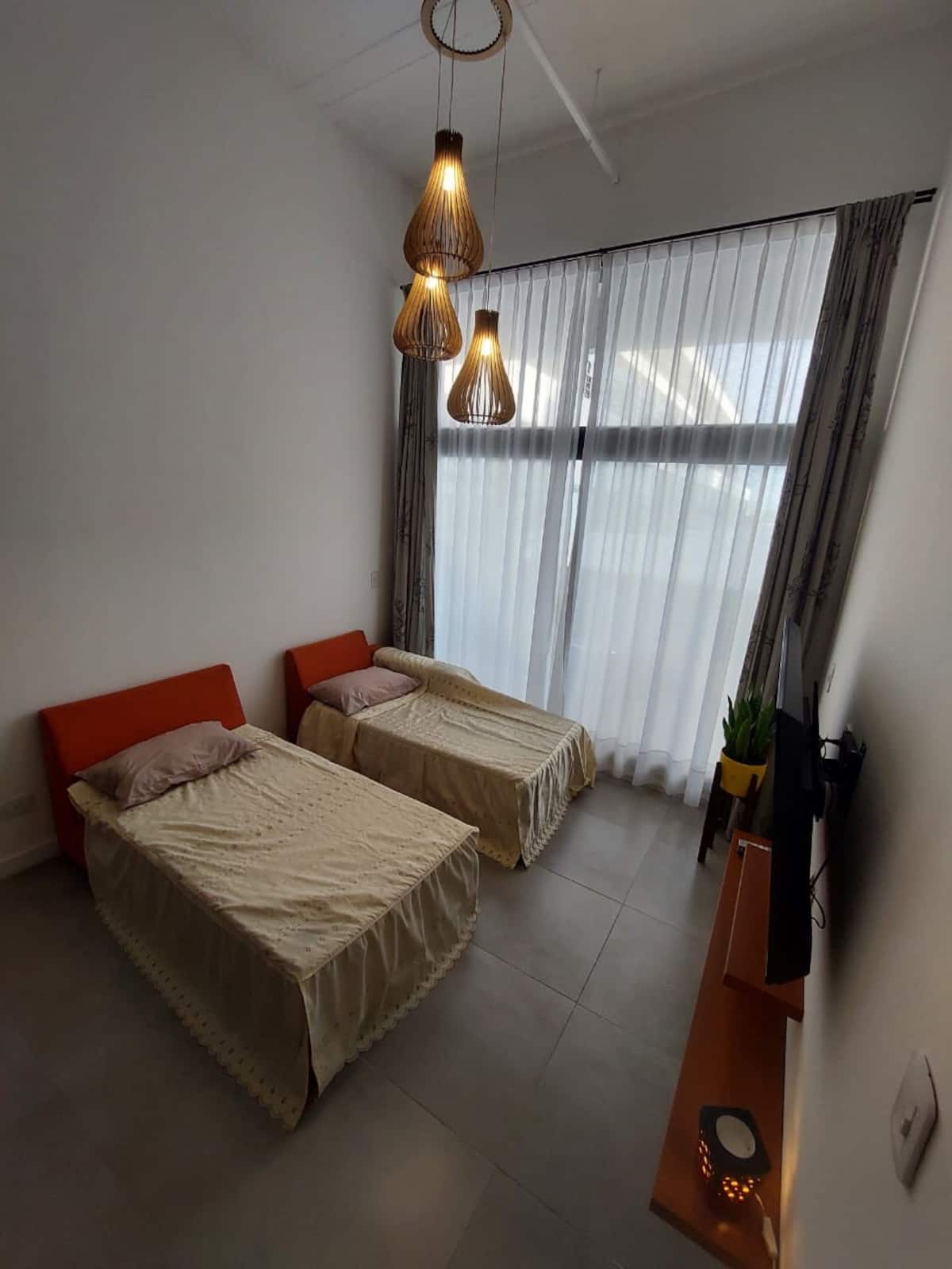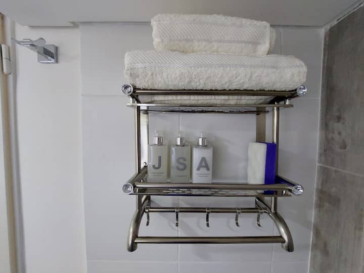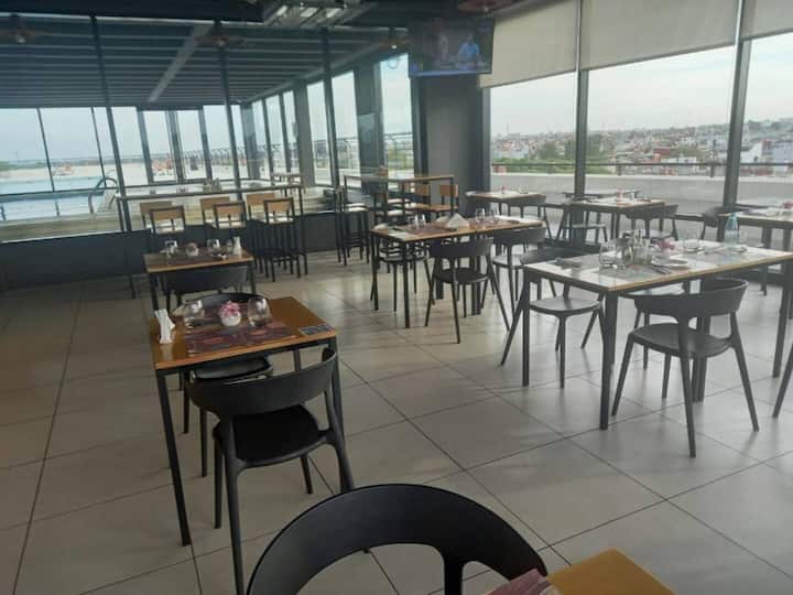 Departamento en 2 niveles con 1 dormitorio y 2 baños completos. En la planta alta cuenta con dormitorio con cama doble y baño privado, y un sector de oficina con escritorio y silla ergonómica. En la planta baja hay living con TV de 50", cocina completa (heladera con freezer, cocina eléctrica con horno, microondas y pava eléctrica) y balcón privado con mesa y sillones. Incluye conexión WiFi, aire acondicionado con uso durante todo el año, seguridad 24 horas, grupo electrógeno y espacios de cowork