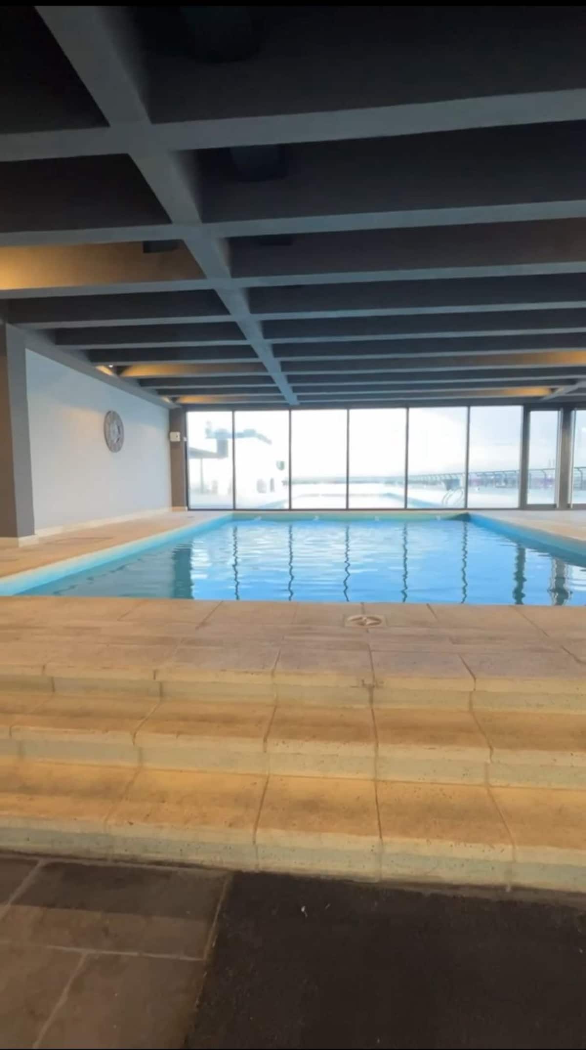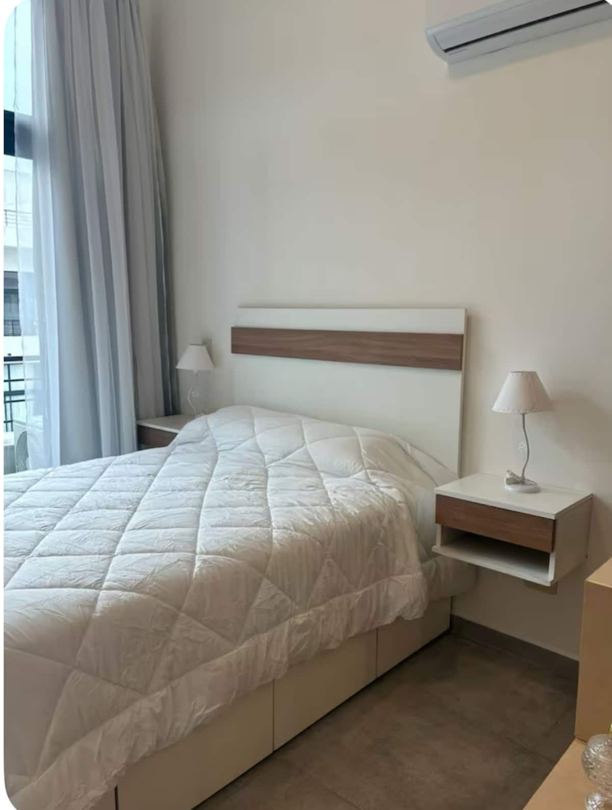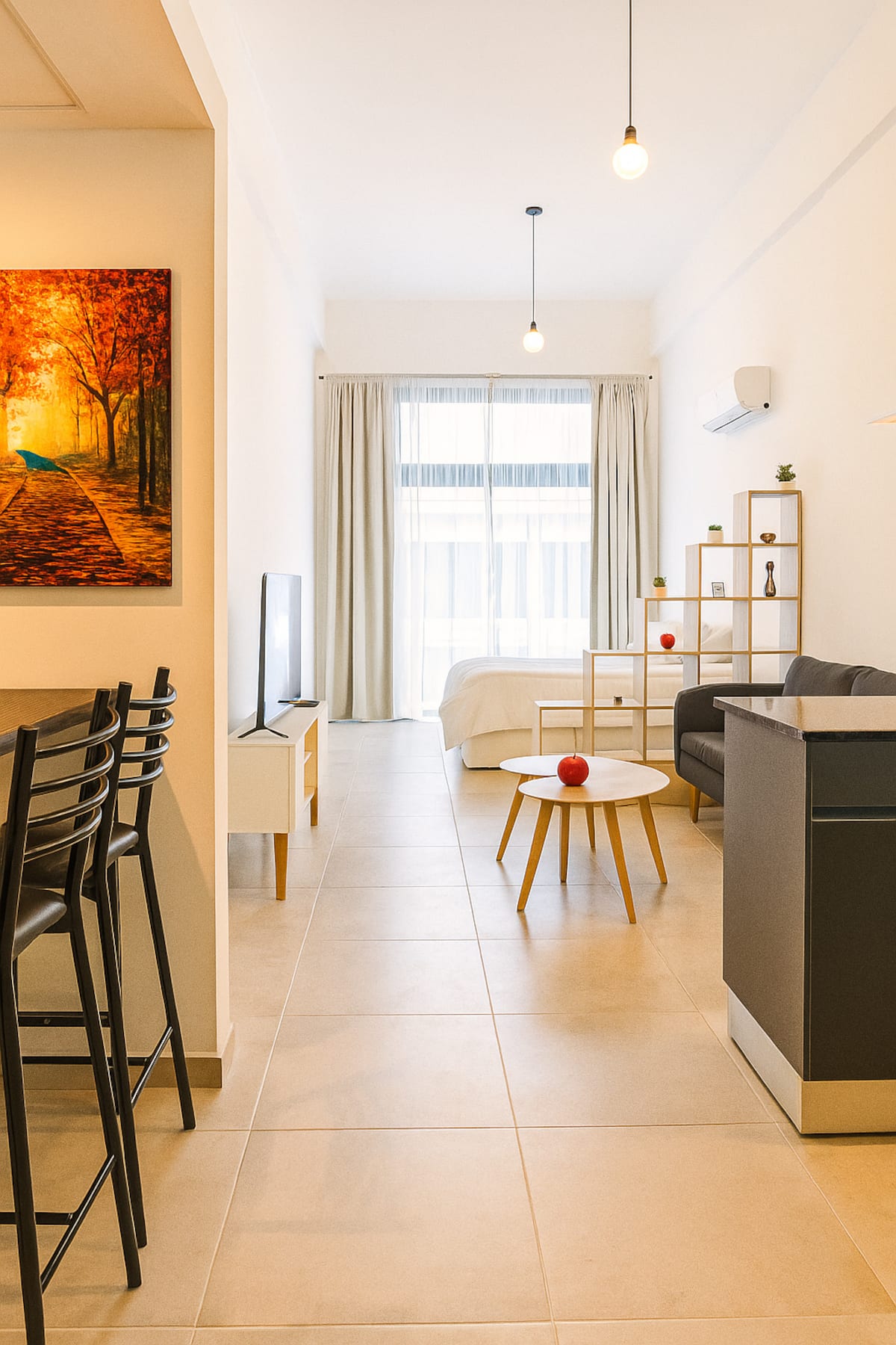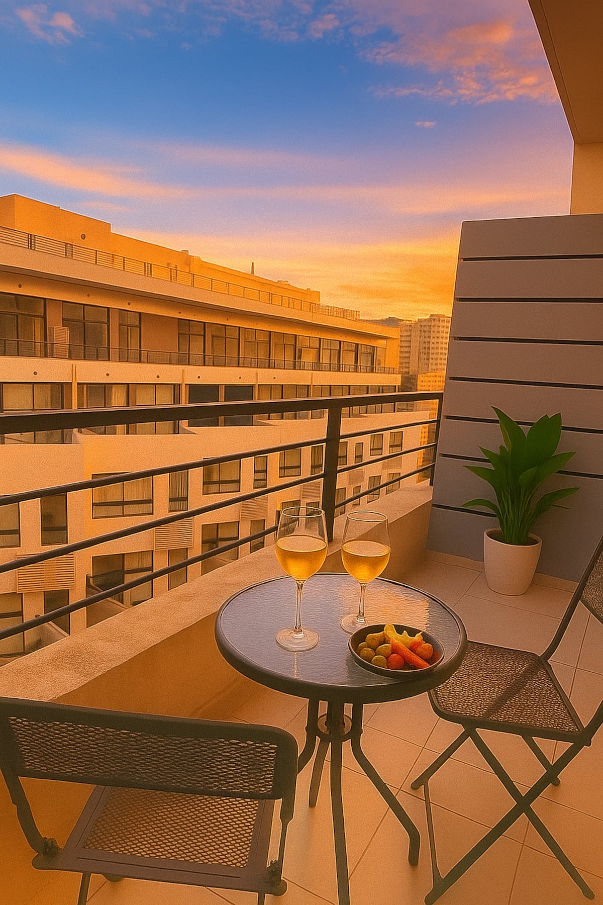 Departamento de 2 ambientes en Parque Chacabuco, con 1 dormitorio y 1 baño completo. Cuenta con cama doble, living con TV de 50" y cocina equipada con heladera con freezer, anafe eléctrico y horno, microondas, pava eléctrica y cafetera. Incluye balcón privado con sillones y mesa. El complejo tiene pileta exterior (temporada de verano) y pileta climatizada interior, jacuzzi, sauna seca, gimnasio, circuito aeróbico con pista para correr y 4 salas de coworking con WiFi, además de solárium, parque i