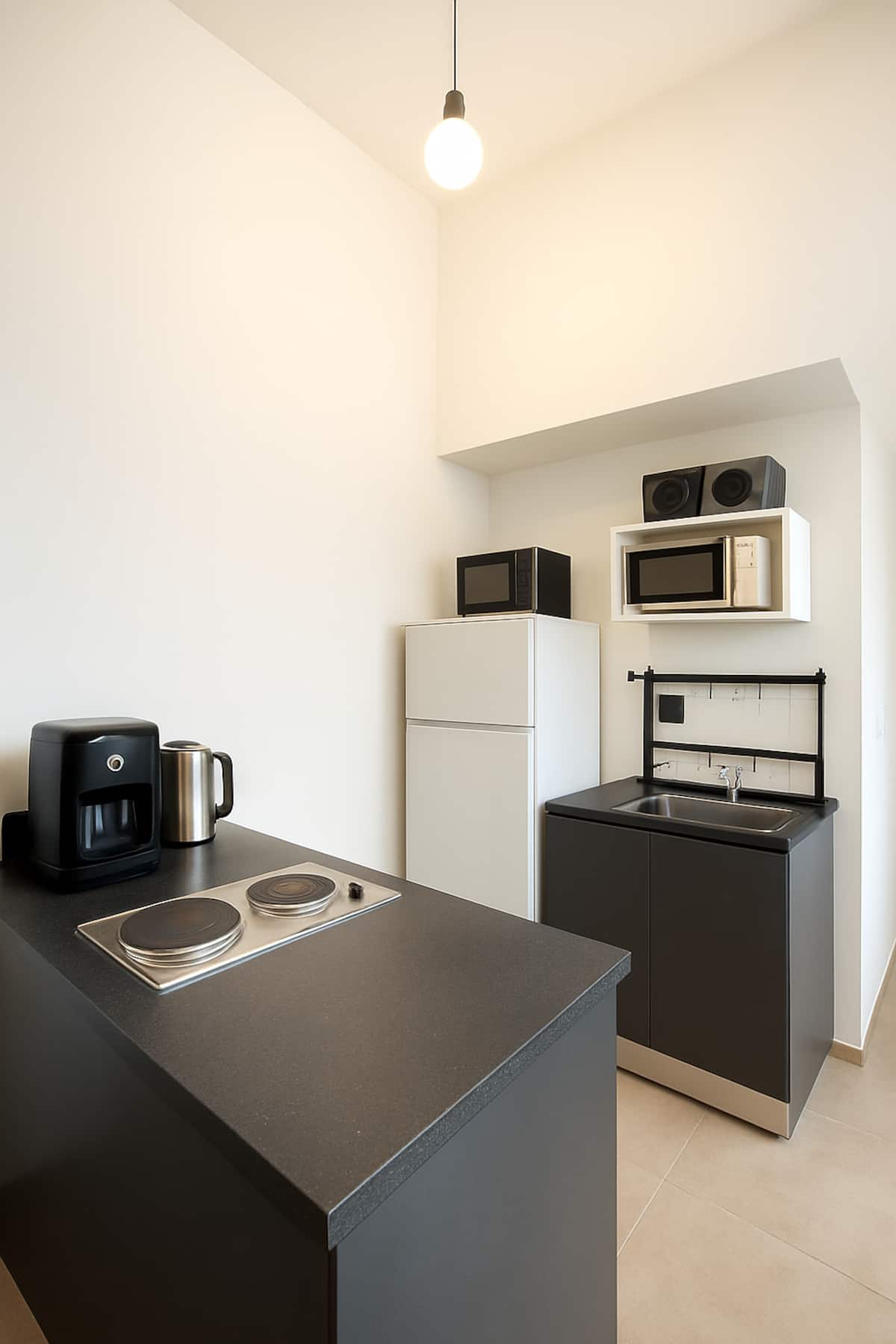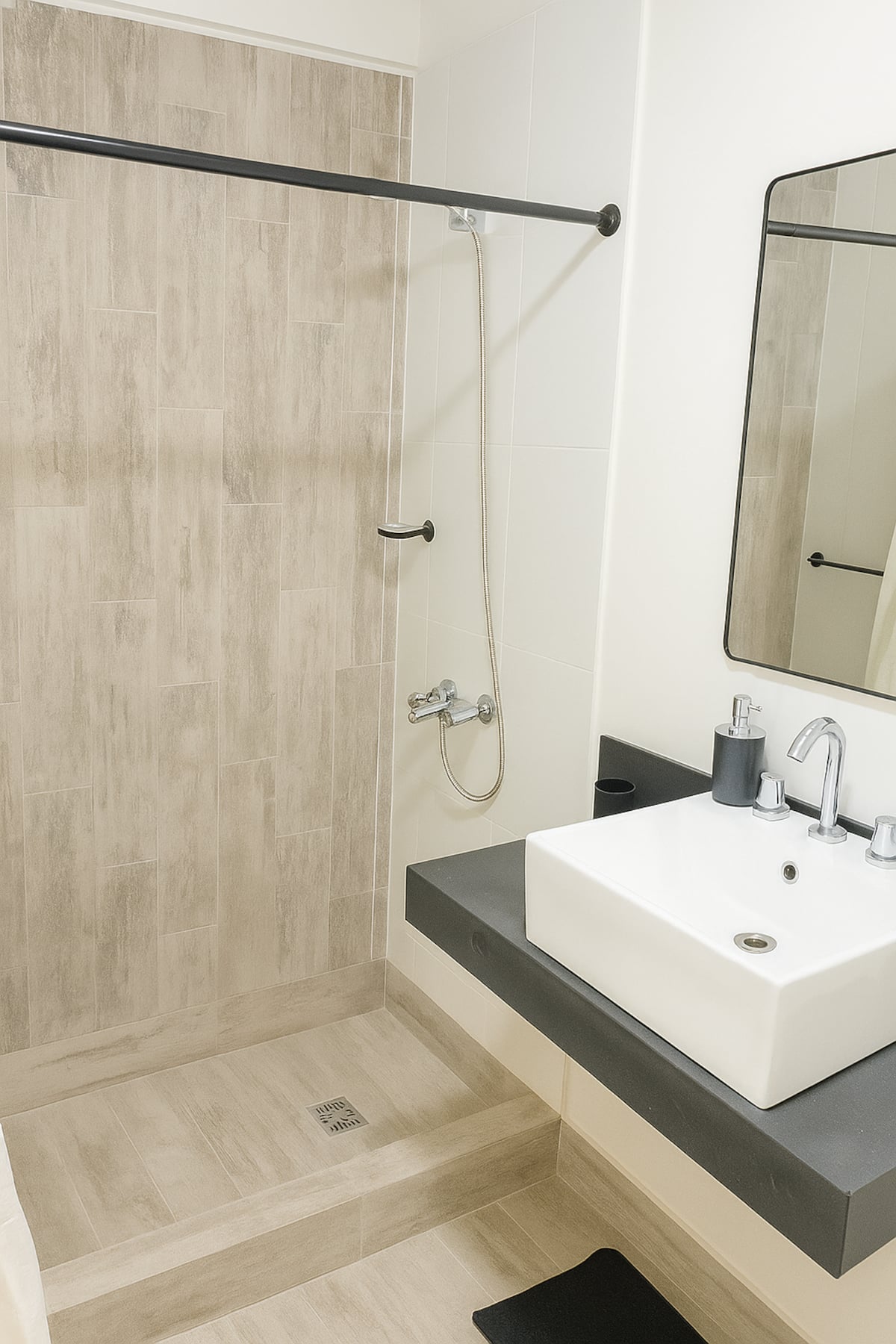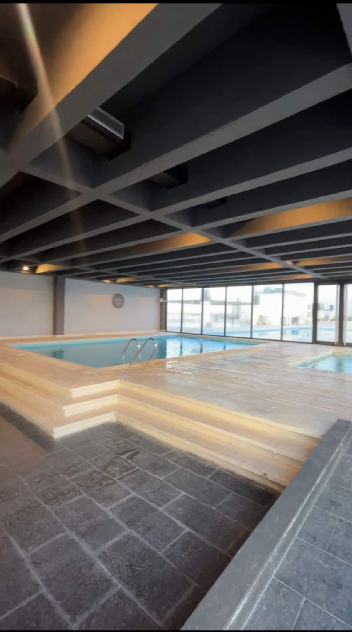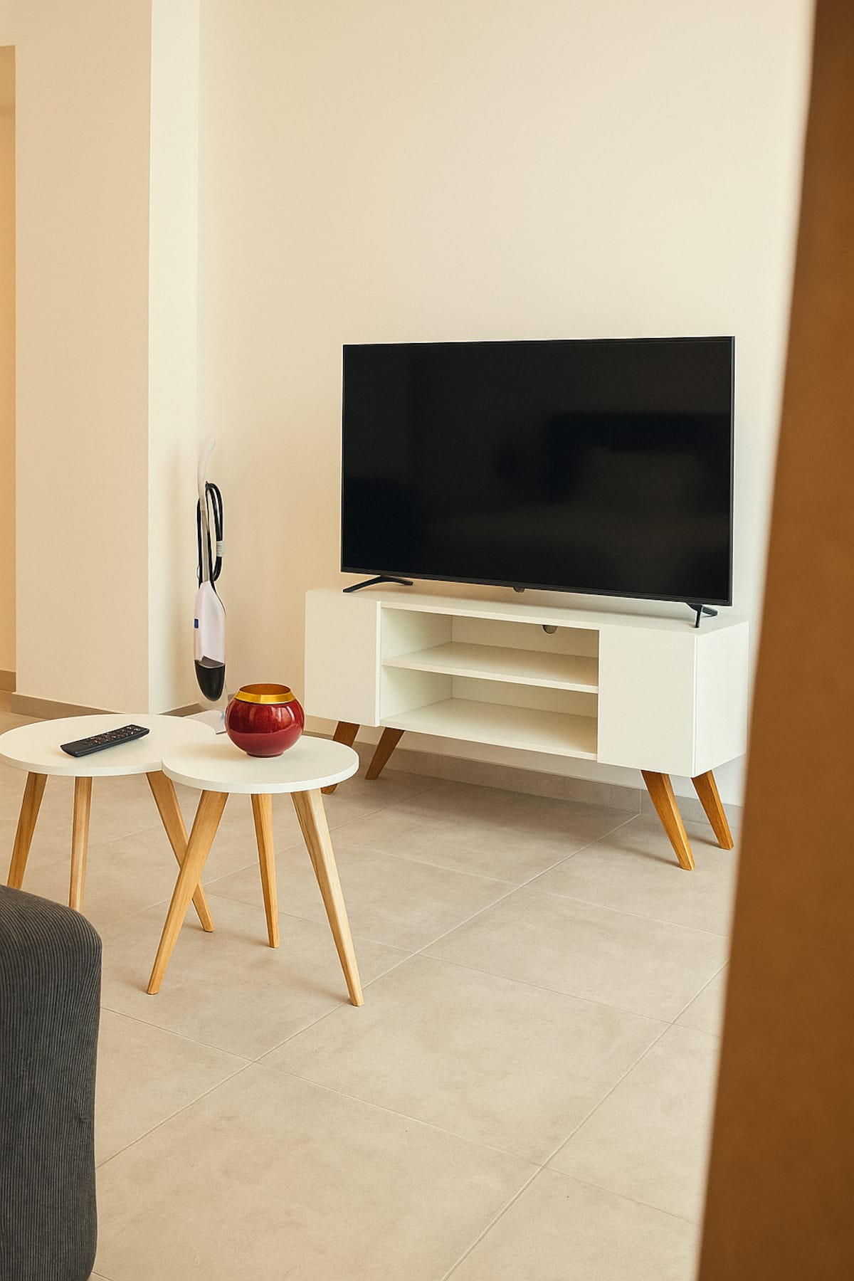 Departamento de 2 ambientes en Parque Chacabuco, con 1 dormitorio y 1 baño completo. Cuenta con cama doble, living con TV de 50" y cocina equipada con heladera con freezer, anafe eléctrico y horno, microondas, pava eléctrica y cafetera. Incluye balcón privado con sillones y mesa. El complejo tiene pileta exterior (temporada de verano) y pileta climatizada interior, jacuzzi, sauna seca, gimnasio, circuito aeróbico con pista para correr y 4 salas de coworking con WiFi, además de solárium, parque i