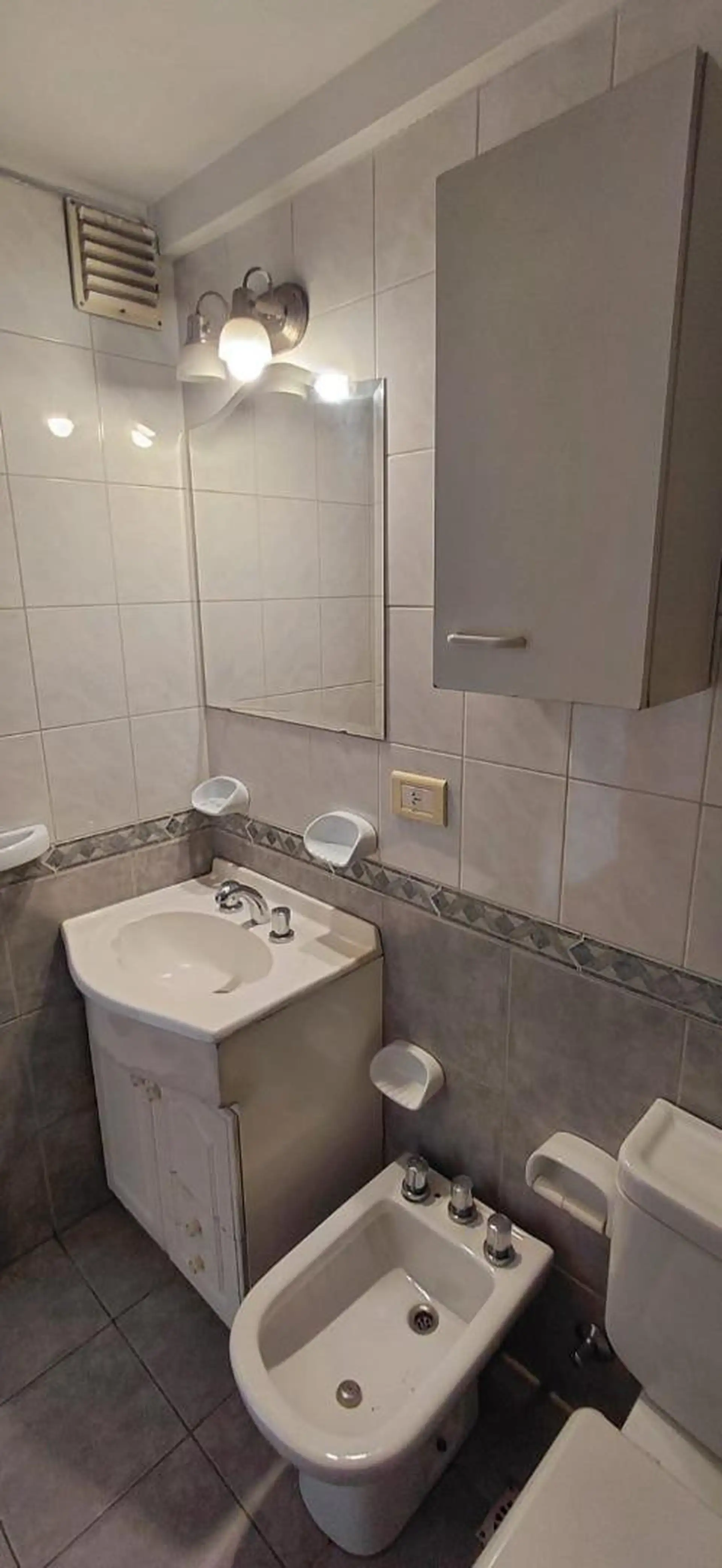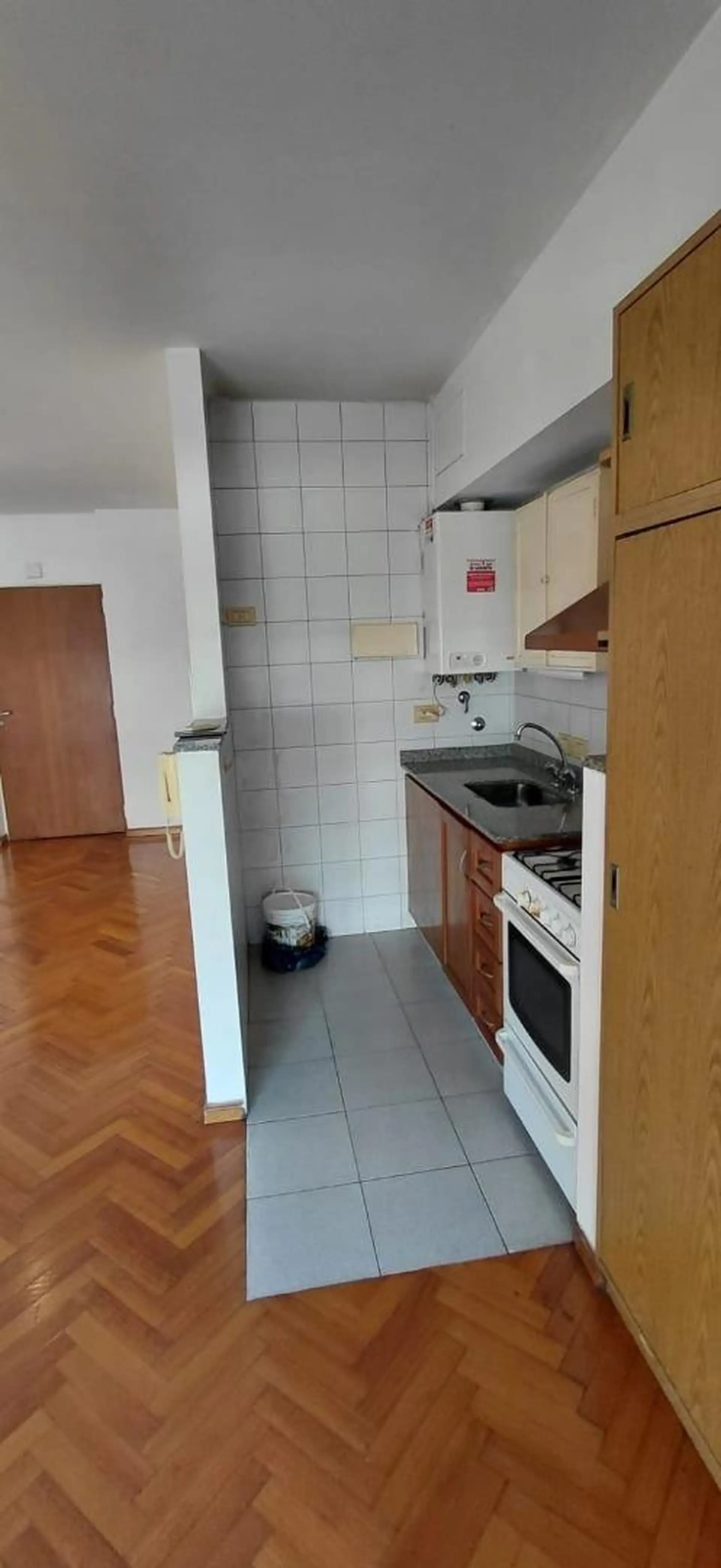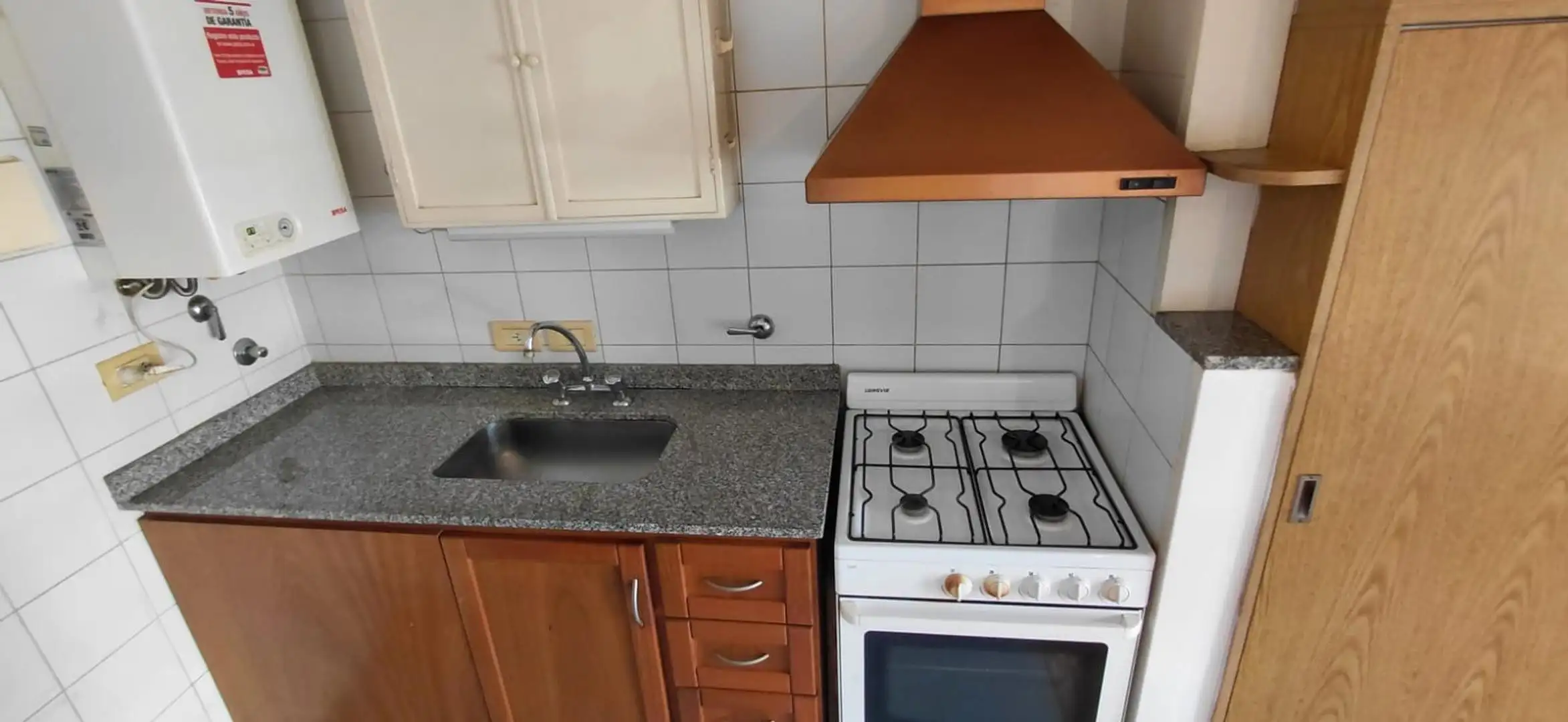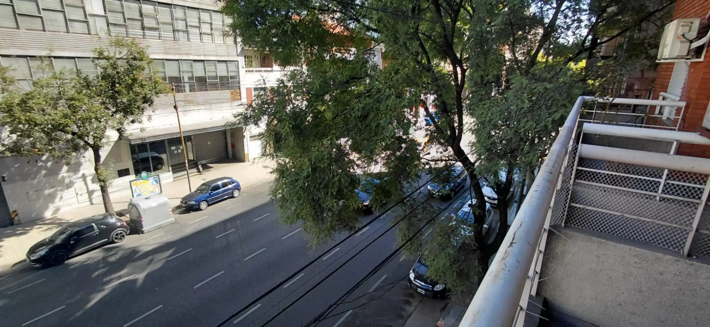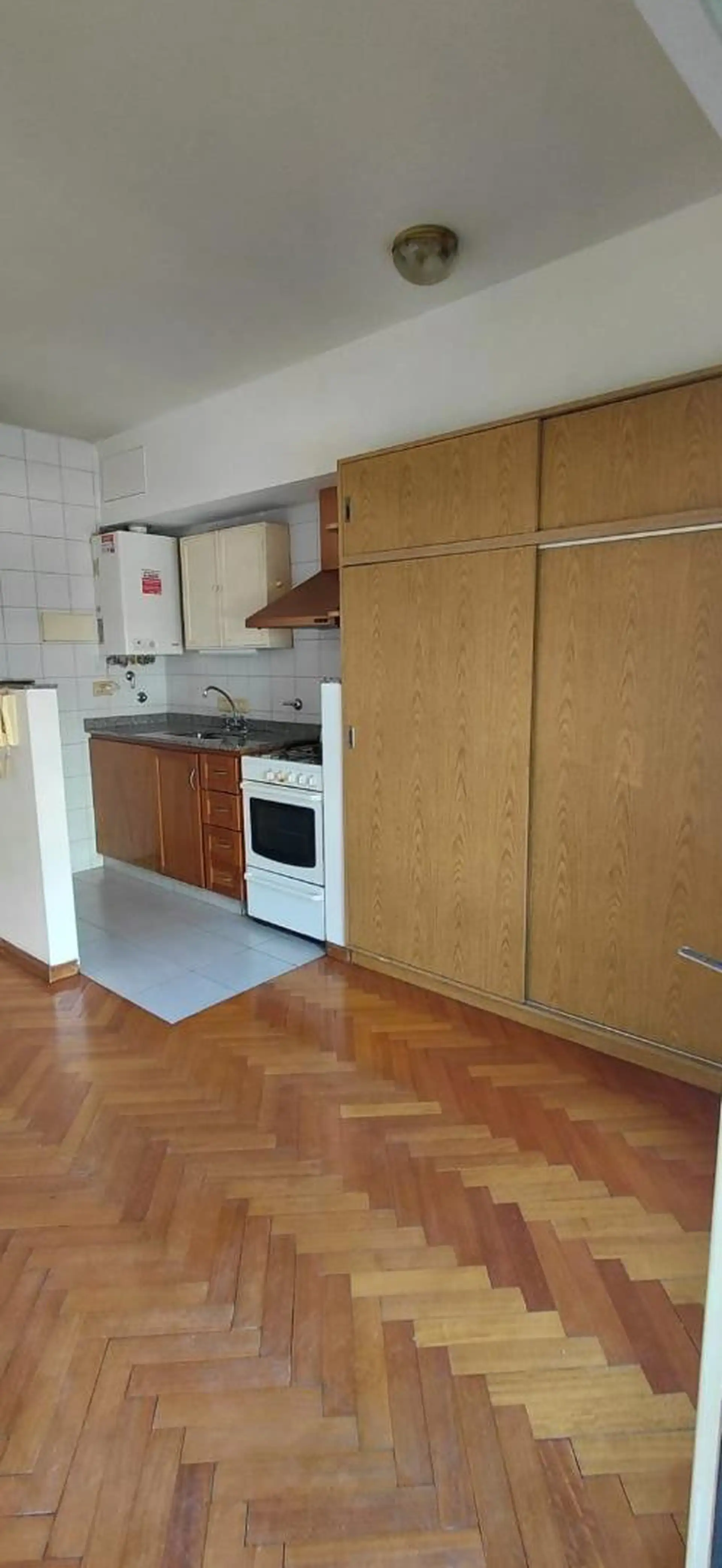 Departamento monoambiente de 38 m² al frente con balcón, orientación suroeste y calefacción individual. Cuenta con ambiente con placar y aire acondicionado frío, cocina semi integrada con caldera individual y baño completo con bañera. El edificio tiene jardín de uso común en planta baja y laundry en terraza. Seguridad diurna por Totem y seguridad nocturna de 22 a 06 hs presencial. Contrato a 2 años: 1 mes de depósito y 1 mes adelantado.