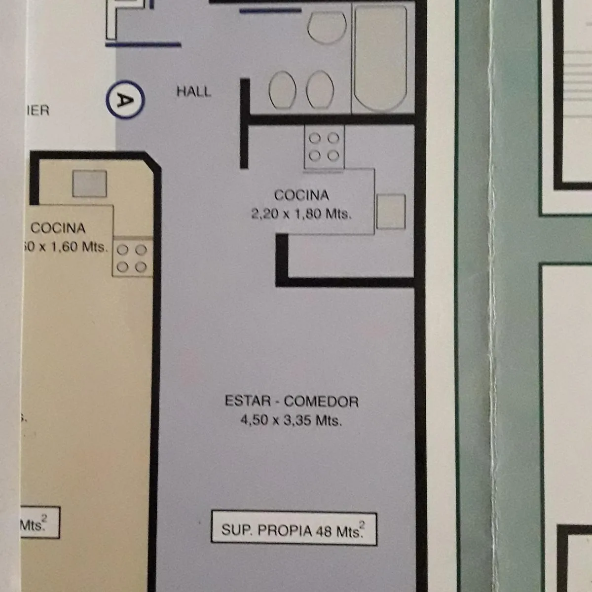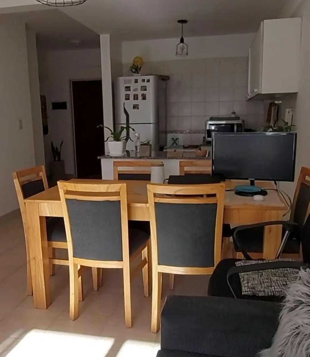 Departamento en semipiso de 2 ambientes de 48 m² al frente, con balcón. Living-comedor con cocina integrada con alacenas de sobre y bajo mesada, cocina Ariston y termotanque eléctrico; mesada de mármol con doble bacha de acero inoxidable y grifería mono comando. Dormitorio de 3,85 x 2,80 m con placard completo y ventana a contrafrente con vista libre. Cuenta con baño completo con vanitory y bañera, espacio para lavarropas bajo la mesada y 2 equipos de AA split frío/calor (uno en el dormitorio y
