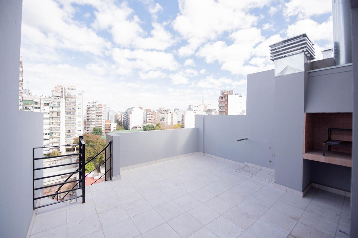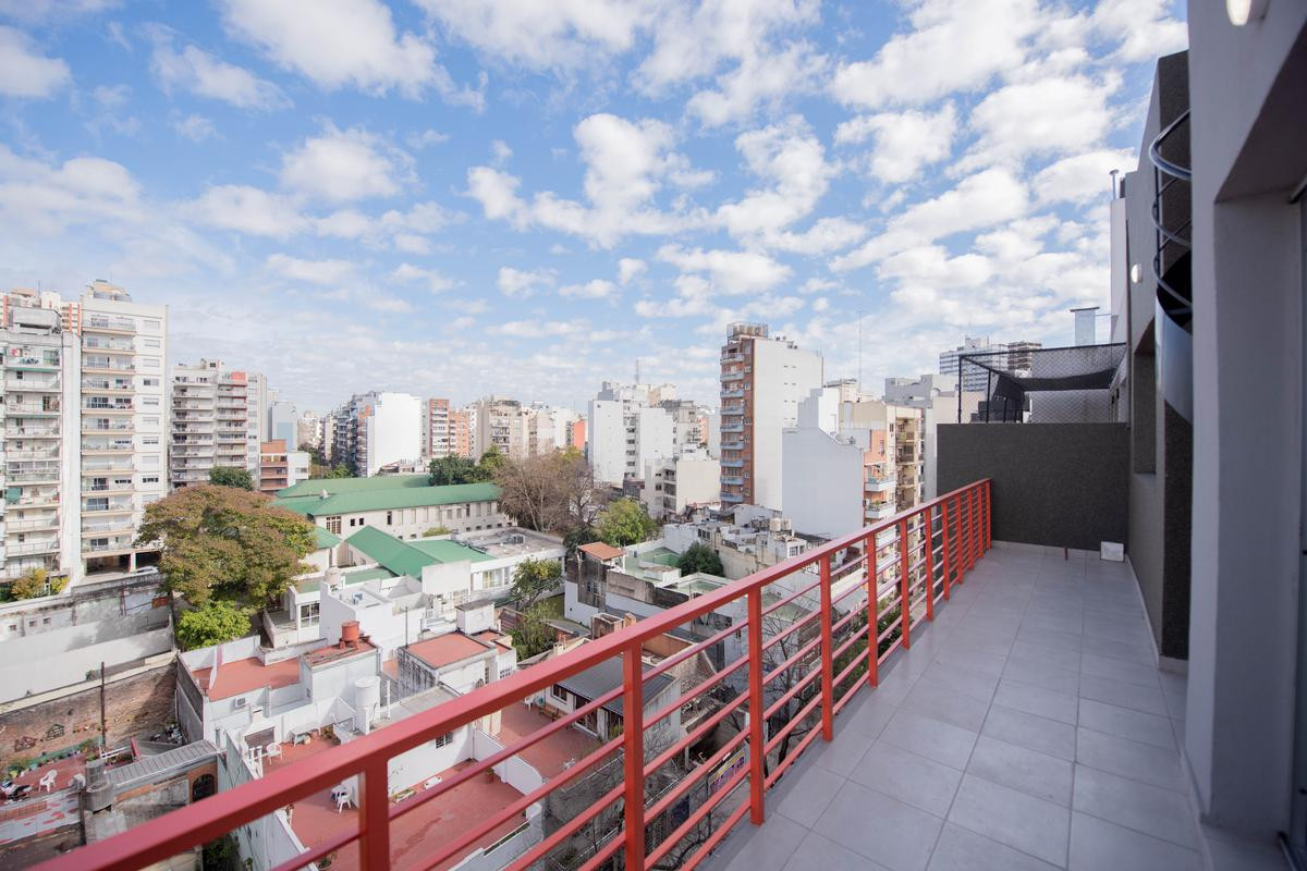 Departamento en Parque Chacabuco apto profesional, de 1 dormitorio con placard. Incluye cochera, terraza propia con parrilla, balcón aterrazado, cocina integrada con lavadero incorporado y baño completo. El edificio tiene 9 plantas con unidades domotizadas; en el piso 9 cuenta con SUM equipado y parrilla en el balcón, y en el piso 10 hay una parrilla exterior con terraza de uso común.