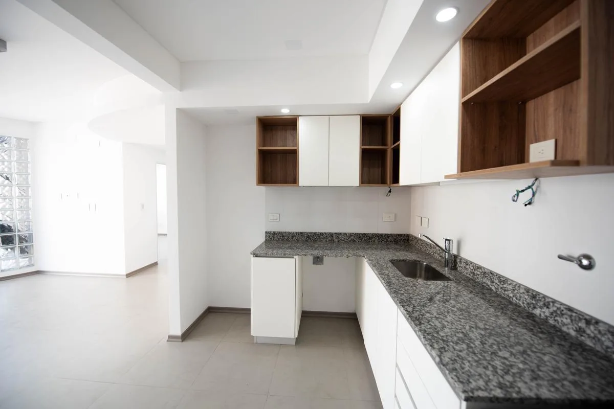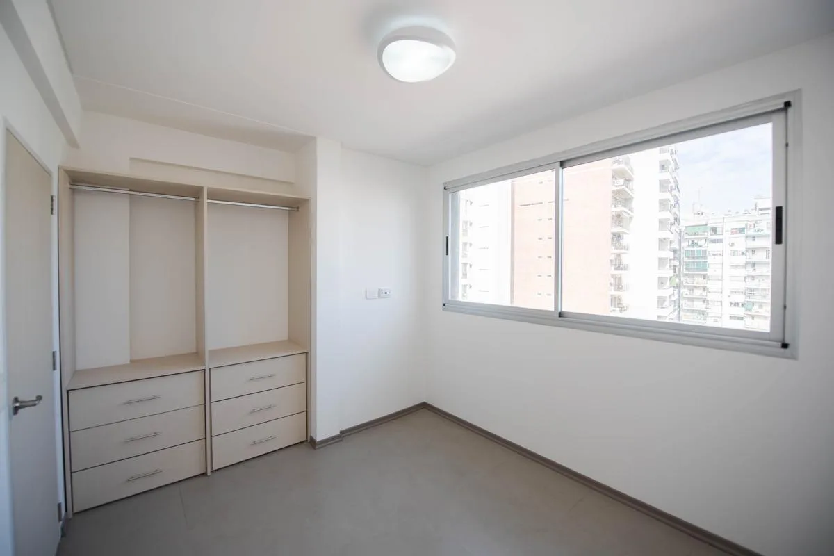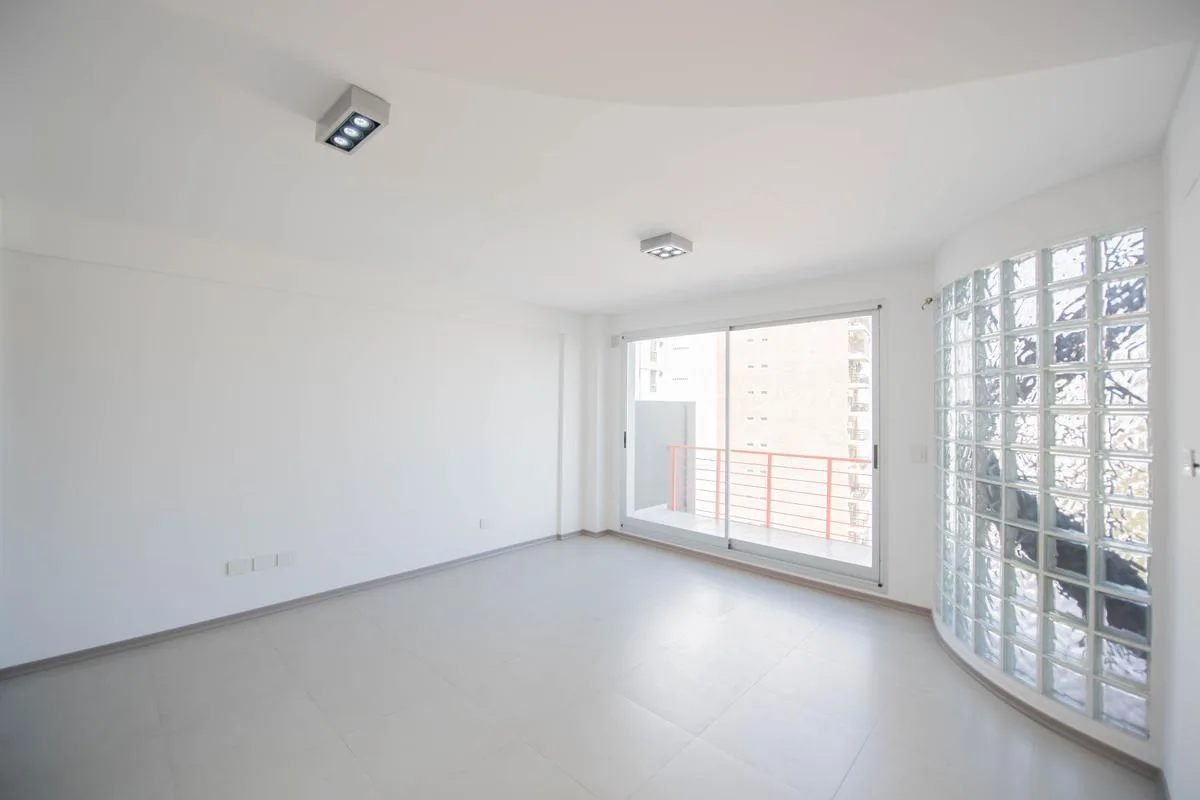 Departamento de 2 ambientes con apto profesional, en Parque Chacabuco, en el piso 8. Cuenta con terraza propia con parrilla, cocina integrada con lavadero incorporado, dormitorio con placard y baño completo, más balcón aterrazado. Incluye cochera.