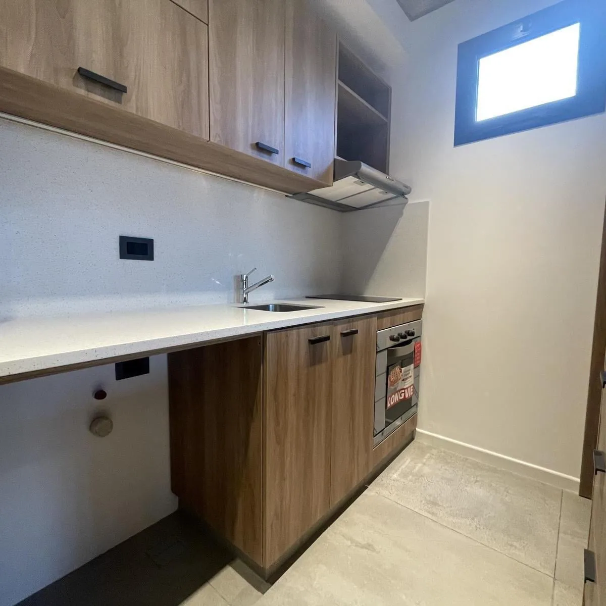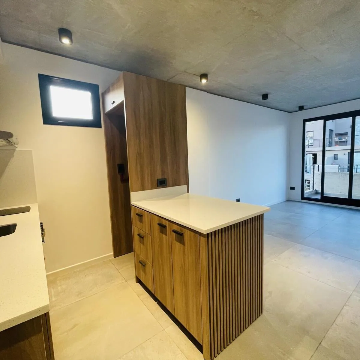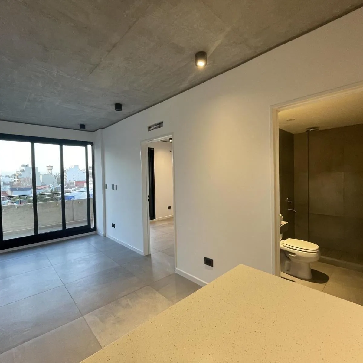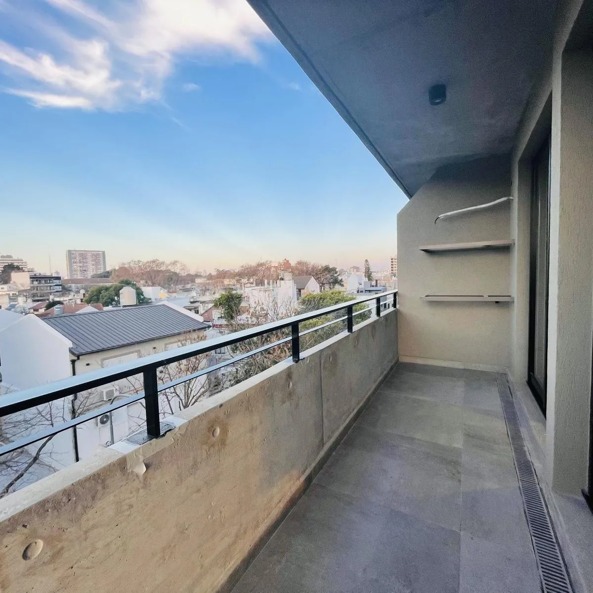 Departamento de 2 ambientes de 1 dormitorio en 4to piso, al frente, con balcón corrido. Orientación noreste. Cuenta con cocina semi integrada con anafe y horno eléctricos, espacio y conexión para lavarropas, y split frío-calor en el ambiente principal. El baño es completo con ducha, extractor y espejo; el dormitorio tiene placard piso-techo y preinstalación para un segundo split. Aberturas con doble vidrio hermético (DVH). Agua caliente central con termotanques solares y eléctricos. El edificio