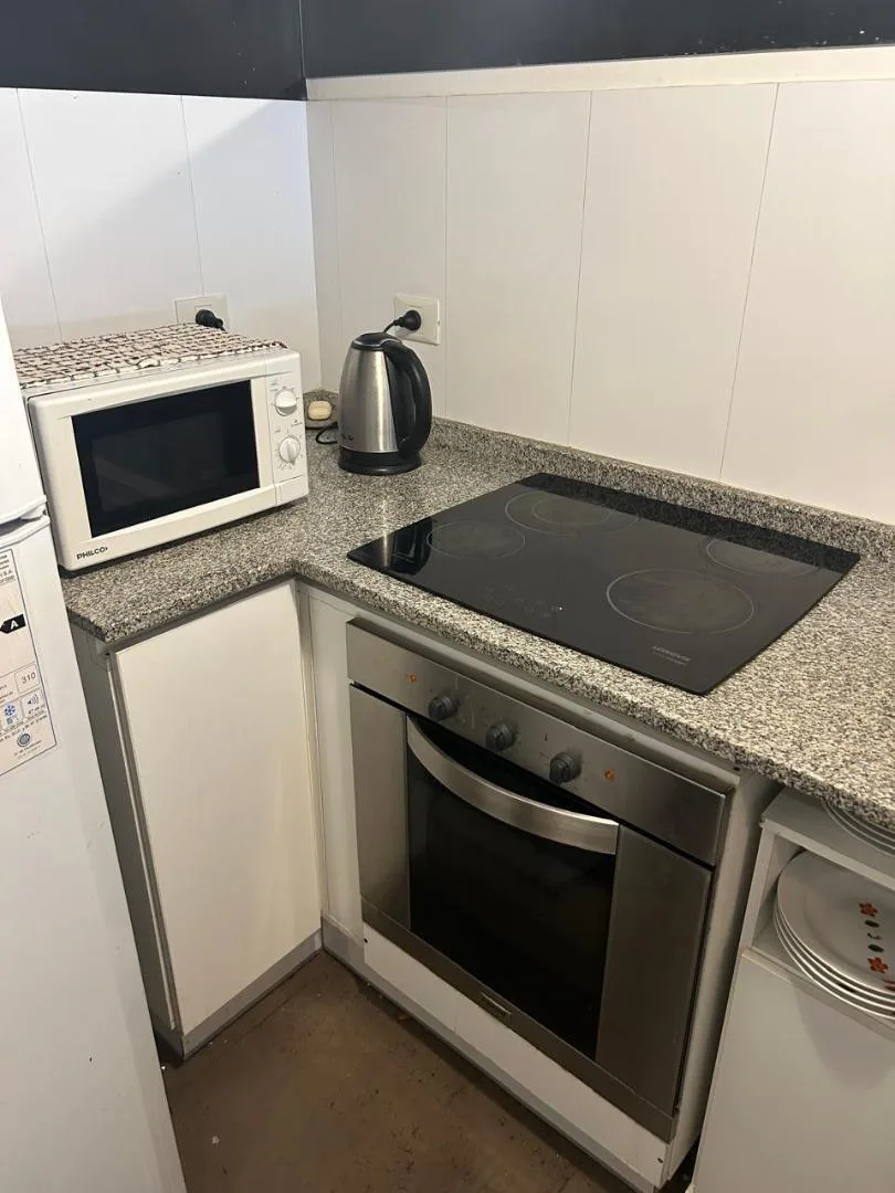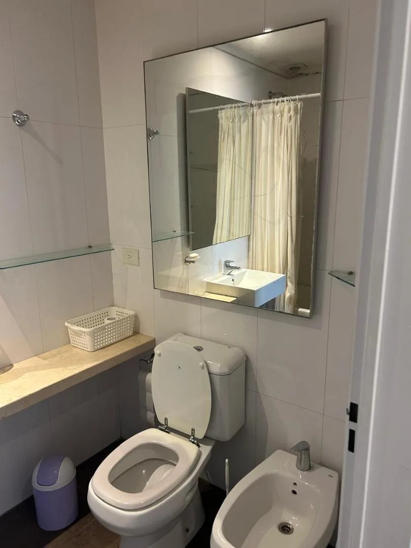 Departamento de 2 ambientes con balcón corrido, orientación al pulmón de manzana del edificio. Cocina equipada con horno y anafe, heladera y microondas; aire frío-calor en ambos ambientes, TV y WiFi. Baño en suite y toilette de recepción. El edificio cuenta con pileta, quincho con parrillas, SUM y laundry.