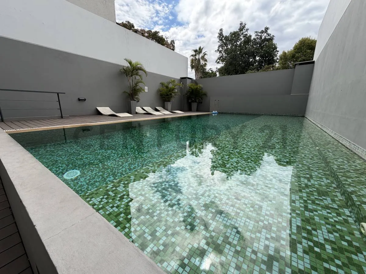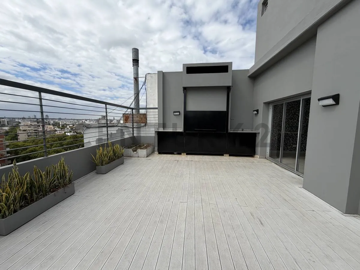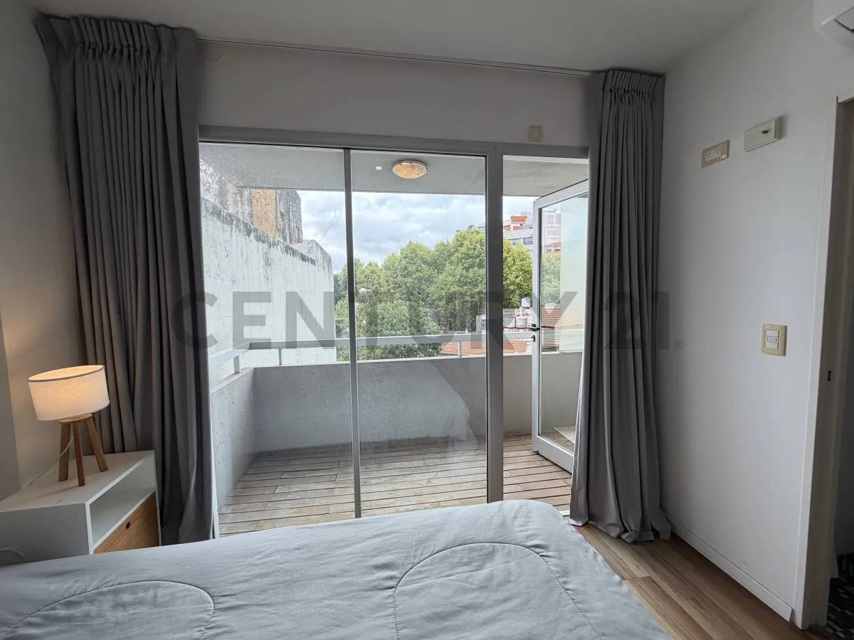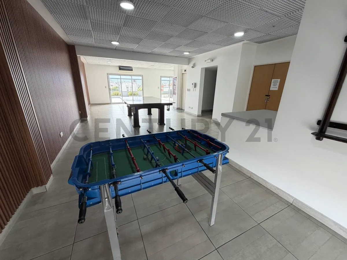 Monoambiente de 34 m² totales y 30 m² cubiertos, cocina integrada, balcón y baño completo. Se ubica en el 3er piso al contrafrente, con vista abierta y aire frío-calor. El edificio tiene 10 años de antigüedad y ofrece solarium con pileta, SUM con parrilla y sala de juegos, gimnasio y laundry. Expensas más servicios a cargo del inquilino, con ajuste trimestral por IPC; no se aceptan mascotas.
