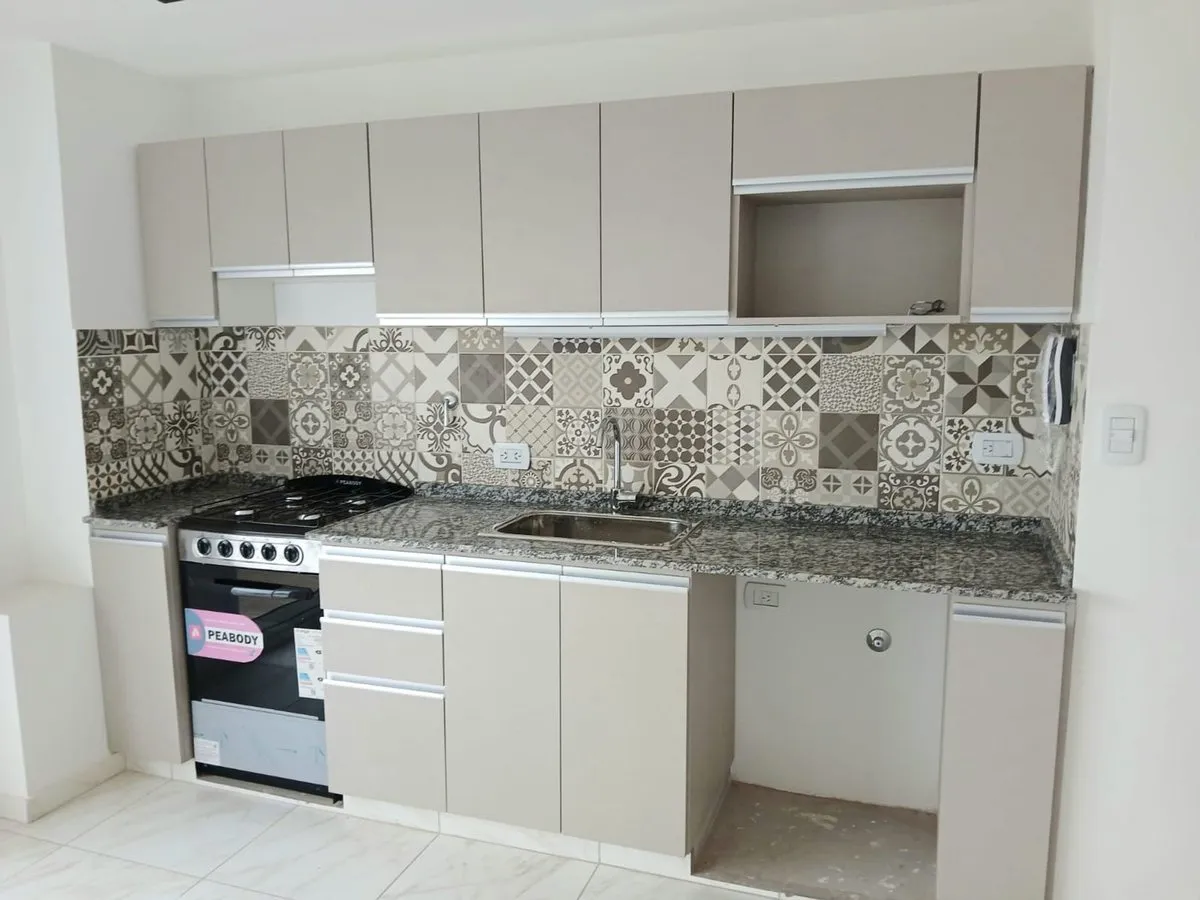 Departamento a estrenar de 2 ambientes en Parque Patricios. Cocina integrada con muebles bajo y sobre mesada, espacio para lavarropas y balcón. Habitación con placard de dos puertas de piso a techo y baño con ducha y ventana. Cortinas autorizadas: black out o sunscreen blancas.